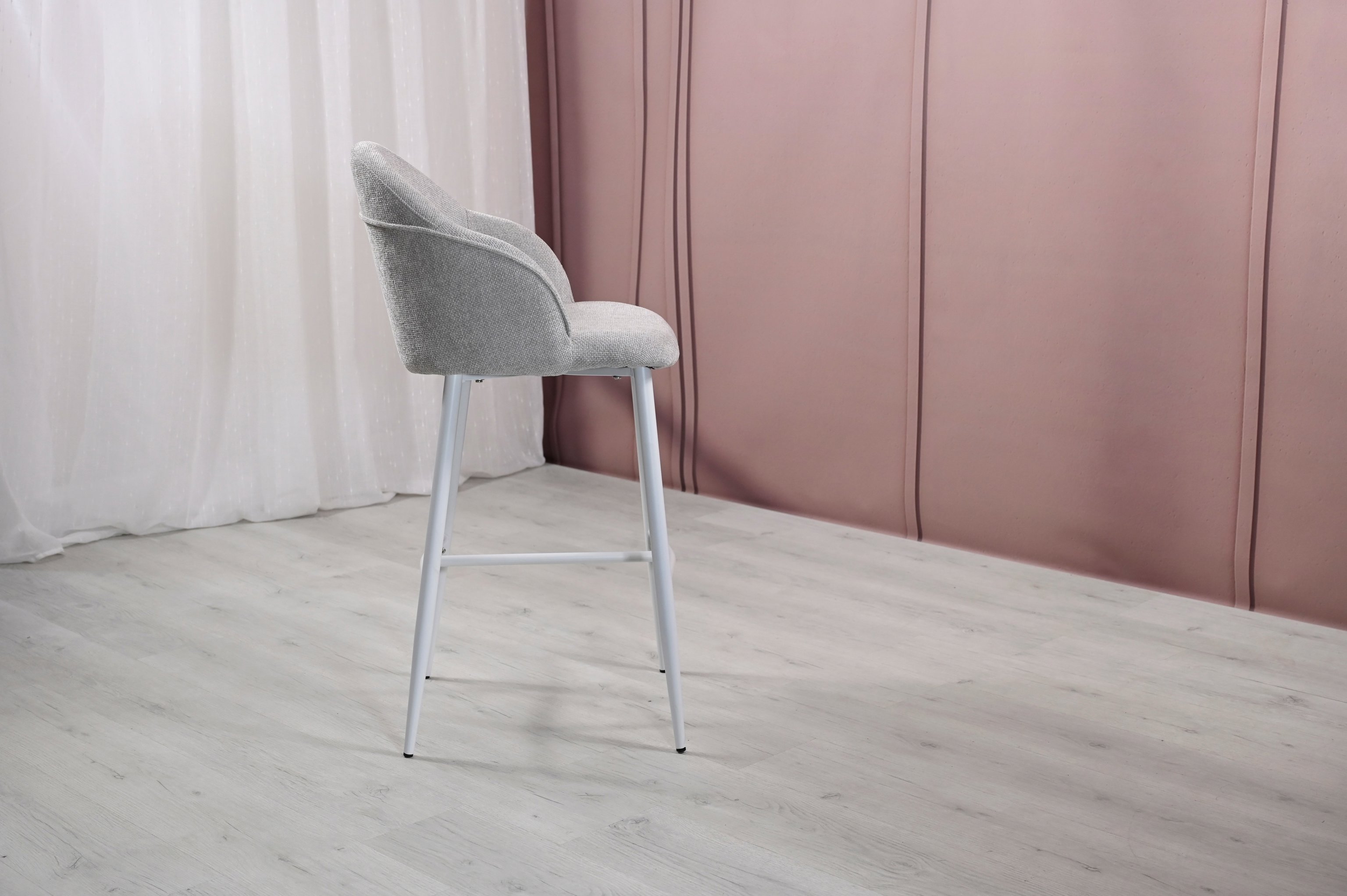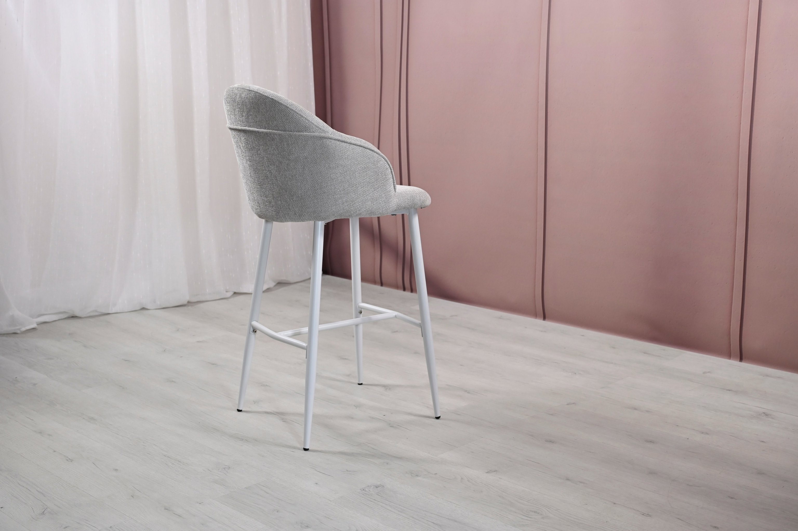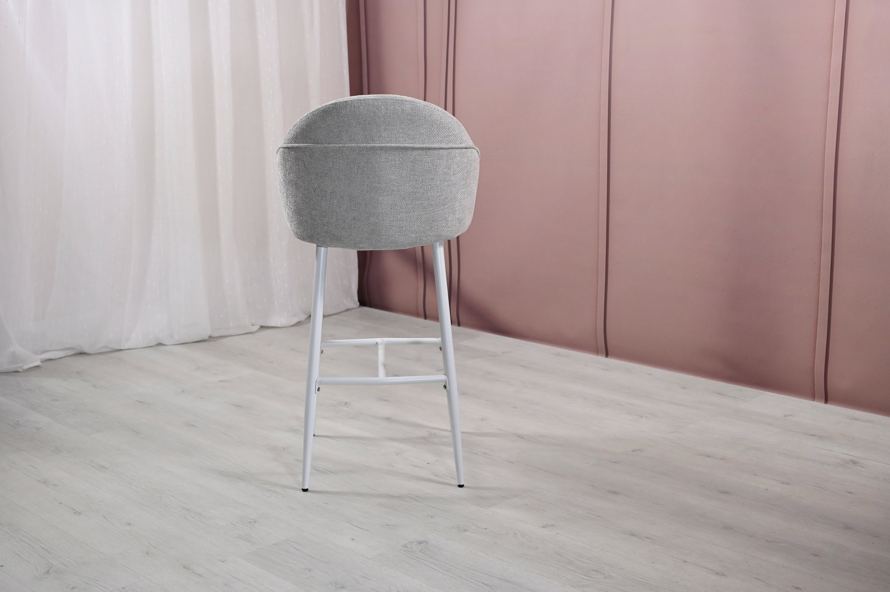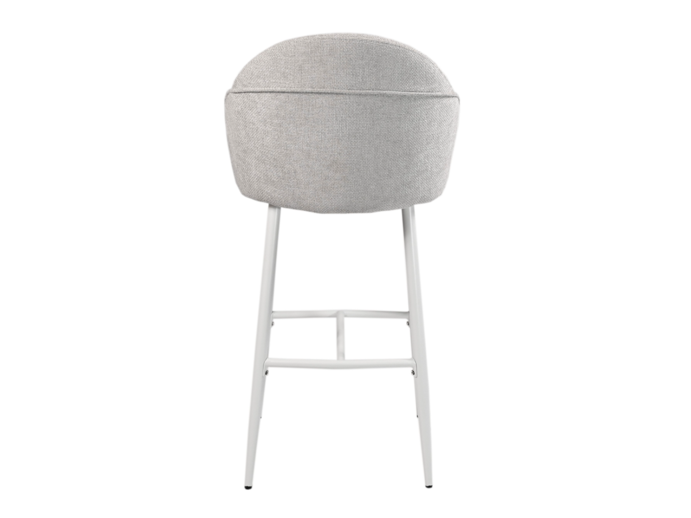 Міцна металева основа, пофарбована у витончений білий колір, додає стільцю легкості та візуальної гармонії. Завдяки висоті сидіння 68,5 см, модель ідеально підходить для кухонних островів і барних зон середньої висоти, а продумана ергономіка дозволяє зручно розташуватися навіть на тривалий час.