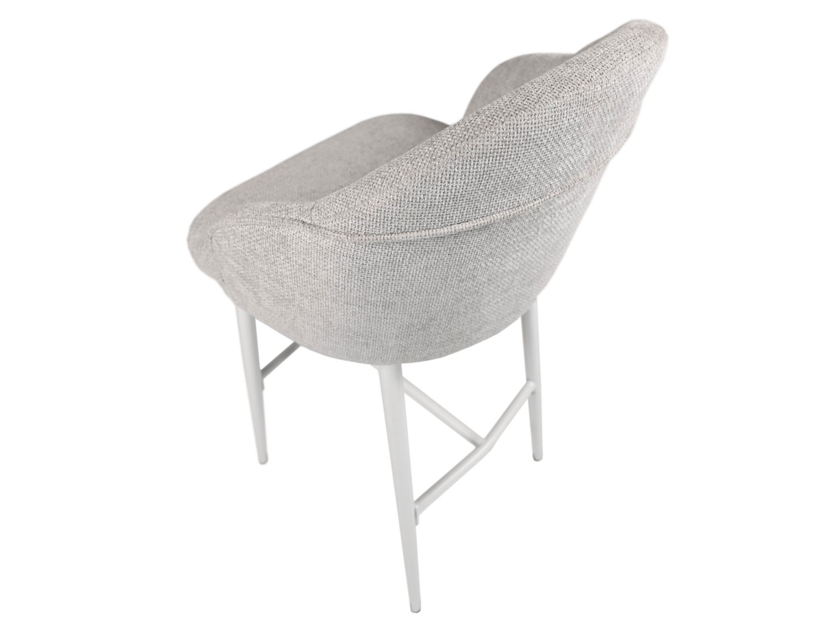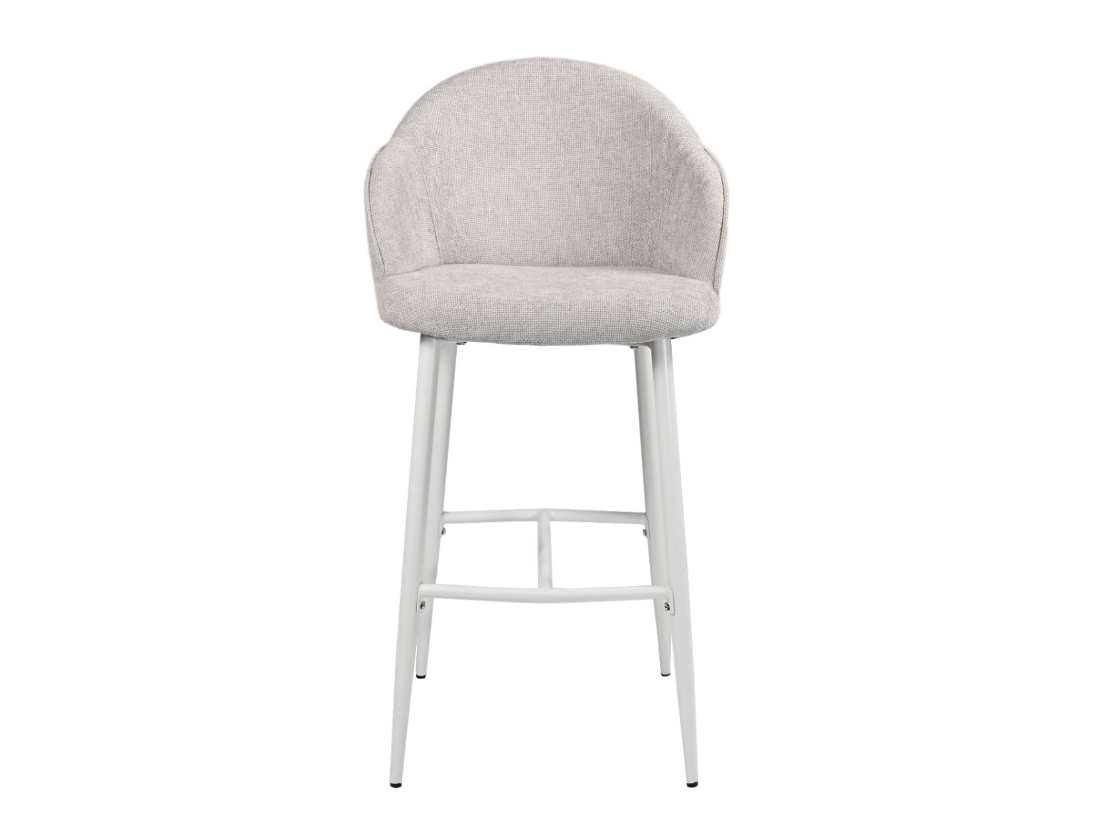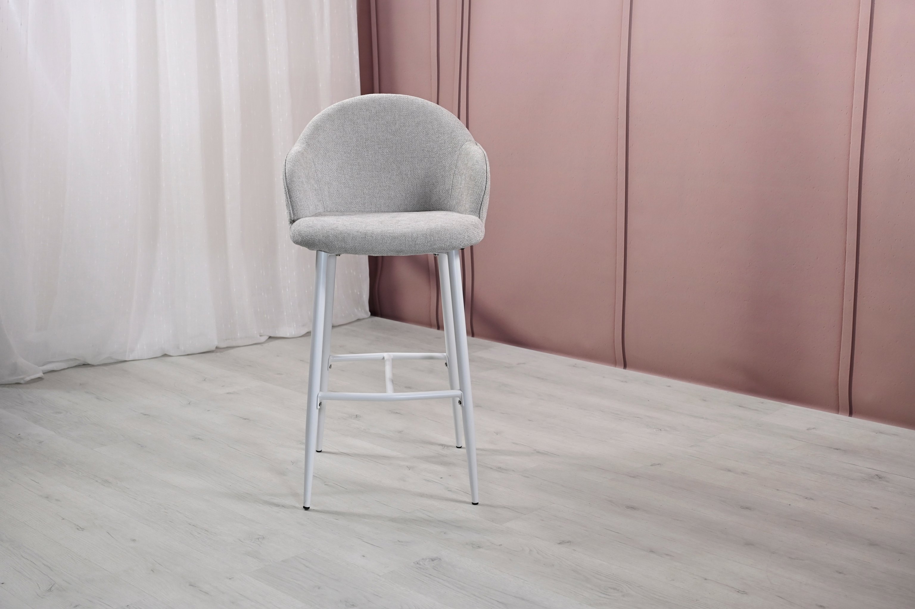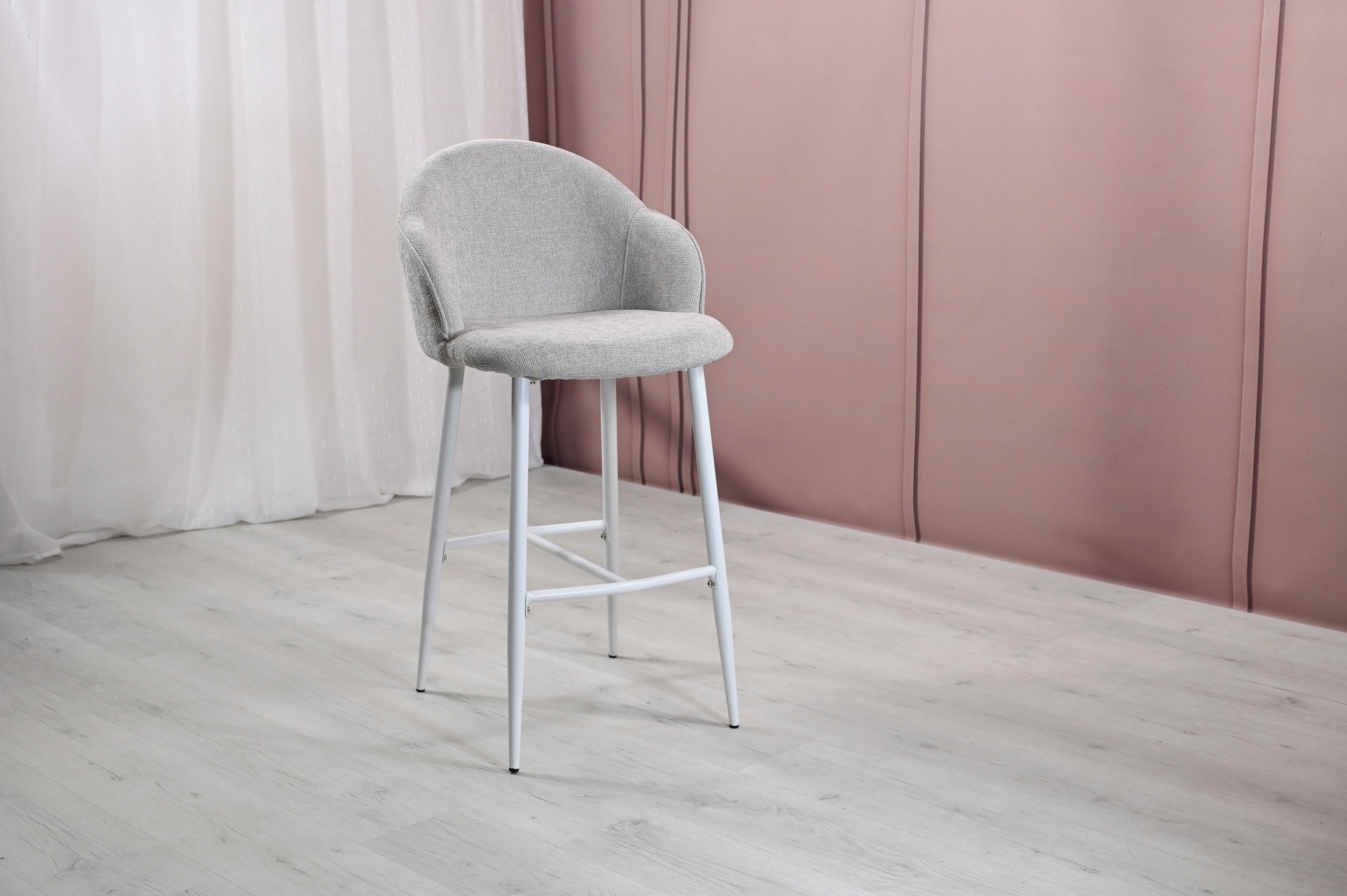 Міцна металева основа, пофарбована у витончений білий колір, додає стільцю легкості та візуальної гармонії. Завдяки висоті сидіння 68,5 см, модель ідеально підходить для кухонних островів і барних зон середньої висоти, а продумана ергономіка дозволяє зручно розташуватися навіть на тривалий час.