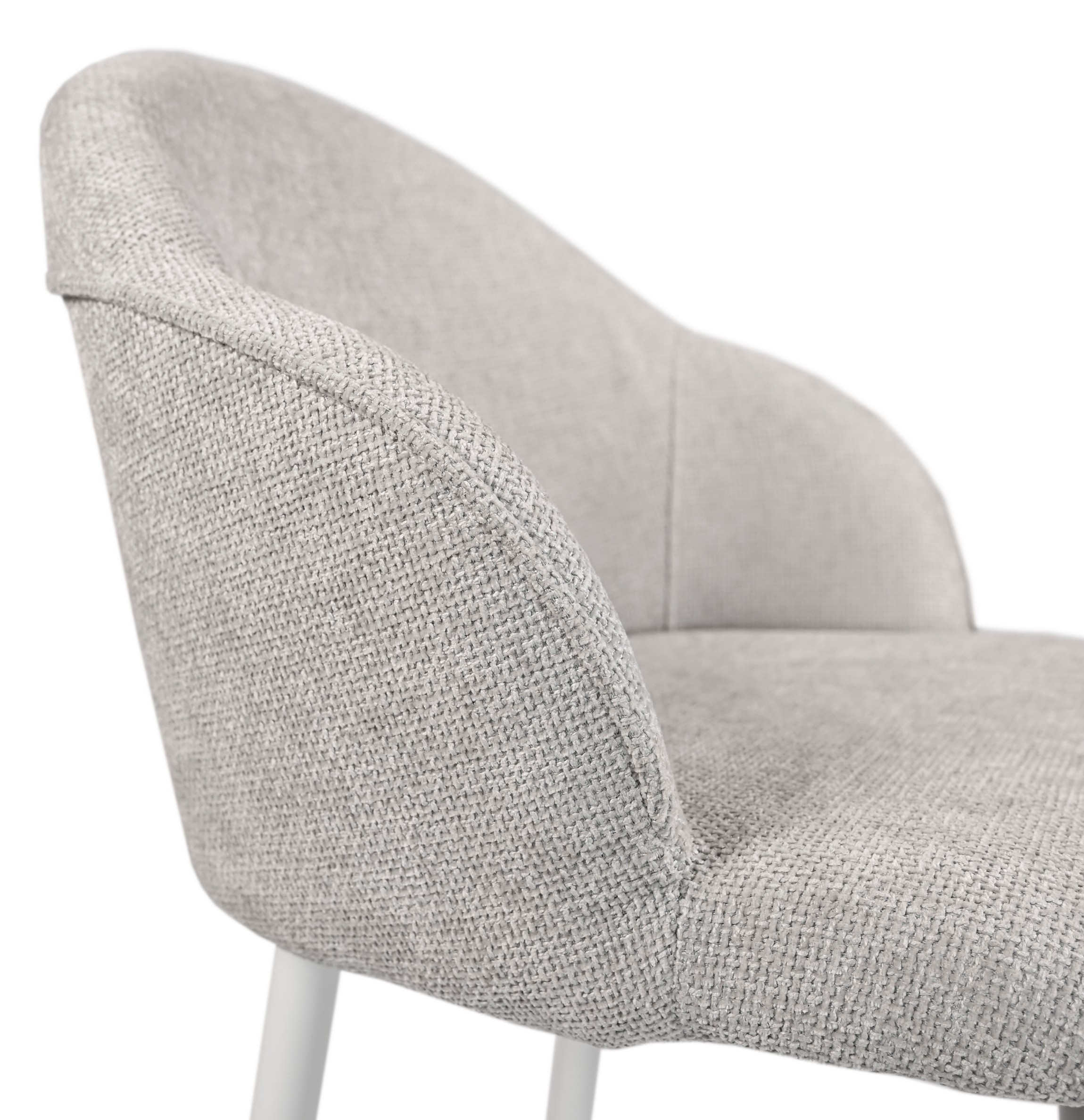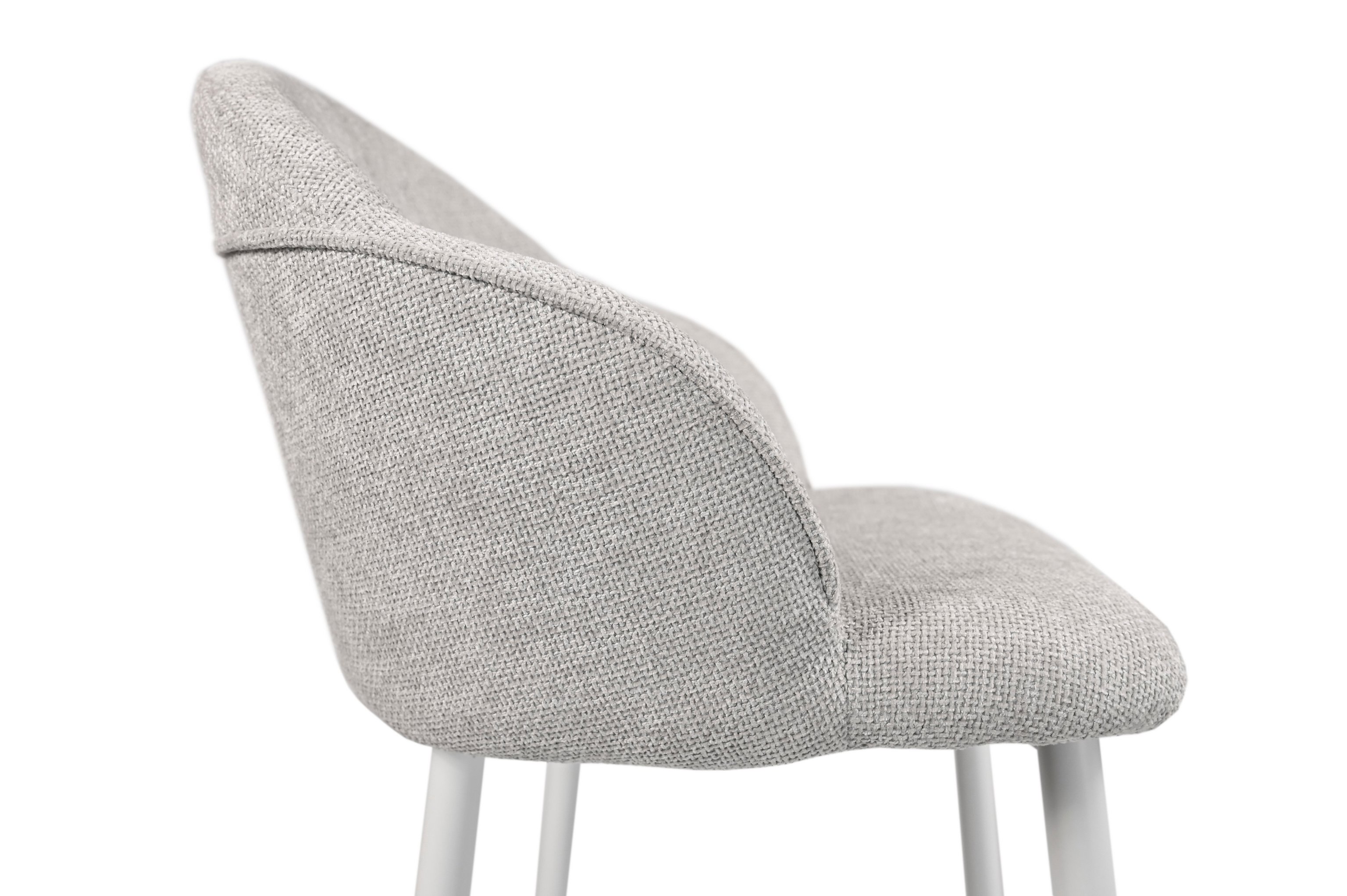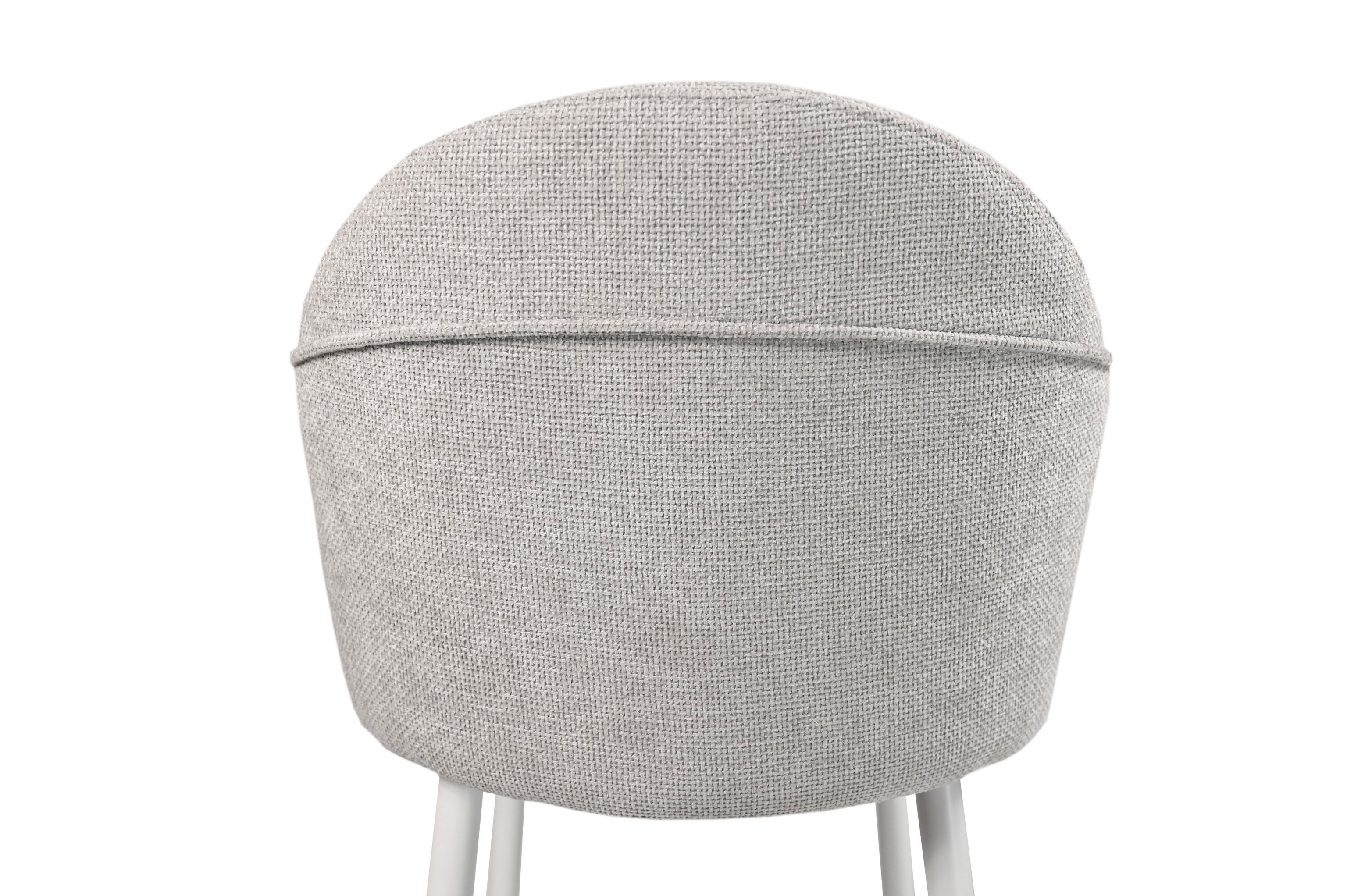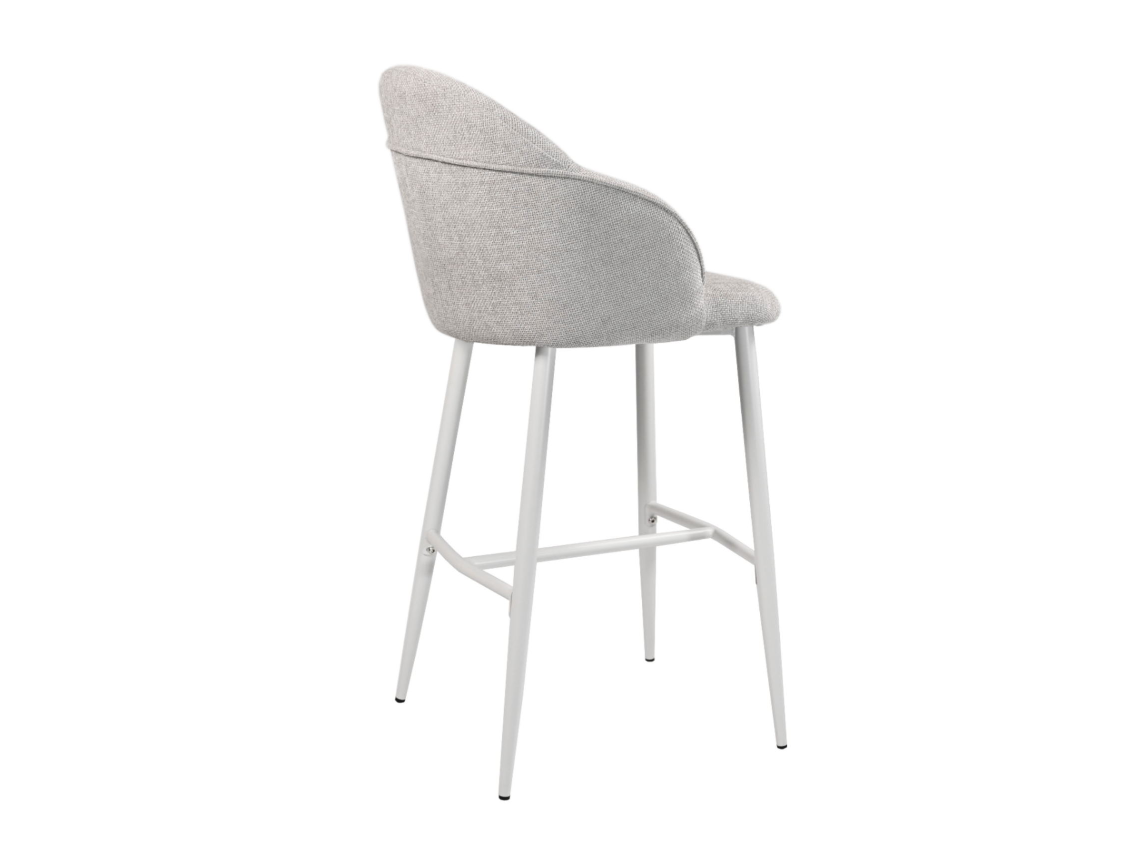 Міцна металева основа, пофарбована у витончений білий колір, додає стільцю легкості та візуальної гармонії. Завдяки висоті сидіння 68,5 см, модель ідеально підходить для кухонних островів і барних зон середньої висоти, а продумана ергономіка дозволяє зручно розташуватися навіть на тривалий час.