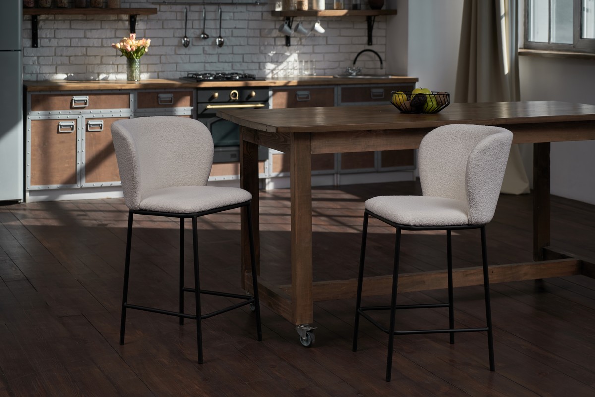Напівбарний стілець B-300 у відтінку айворі з чорними ніжками - це елегантне та зручне рішення для вашого інтер'єру.