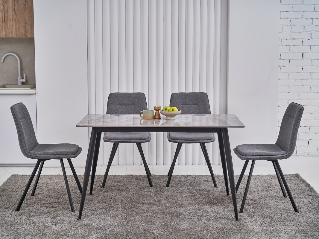 Прямокутна форма стола дозволяє легко вписати його в різні інтер'єри, будь то кухня, їдальня чи вітальня. Чорні ніжки додають сучасності і легко поєднуються з іншими кольорами та матеріалами в приміщенні.