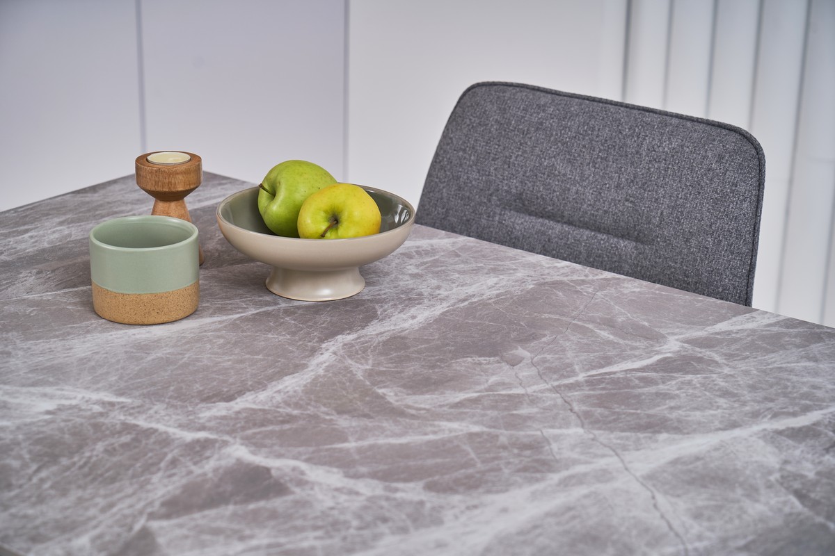 Калакатта Грей імітує натуральний мармур, який має характерні сірі прожилки на білому фоні. Основний колір стола або поверхні білий, а прожилки — сірі, що надає матеріалу глибини та витонченості.