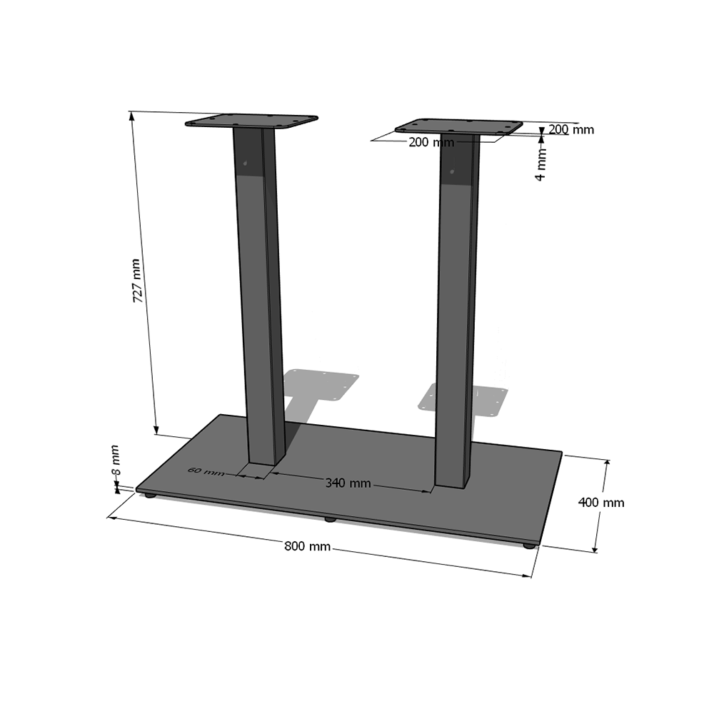 Опора Lovko Quadro Double h-725 400х800 / 8 мм чорна 78779005
