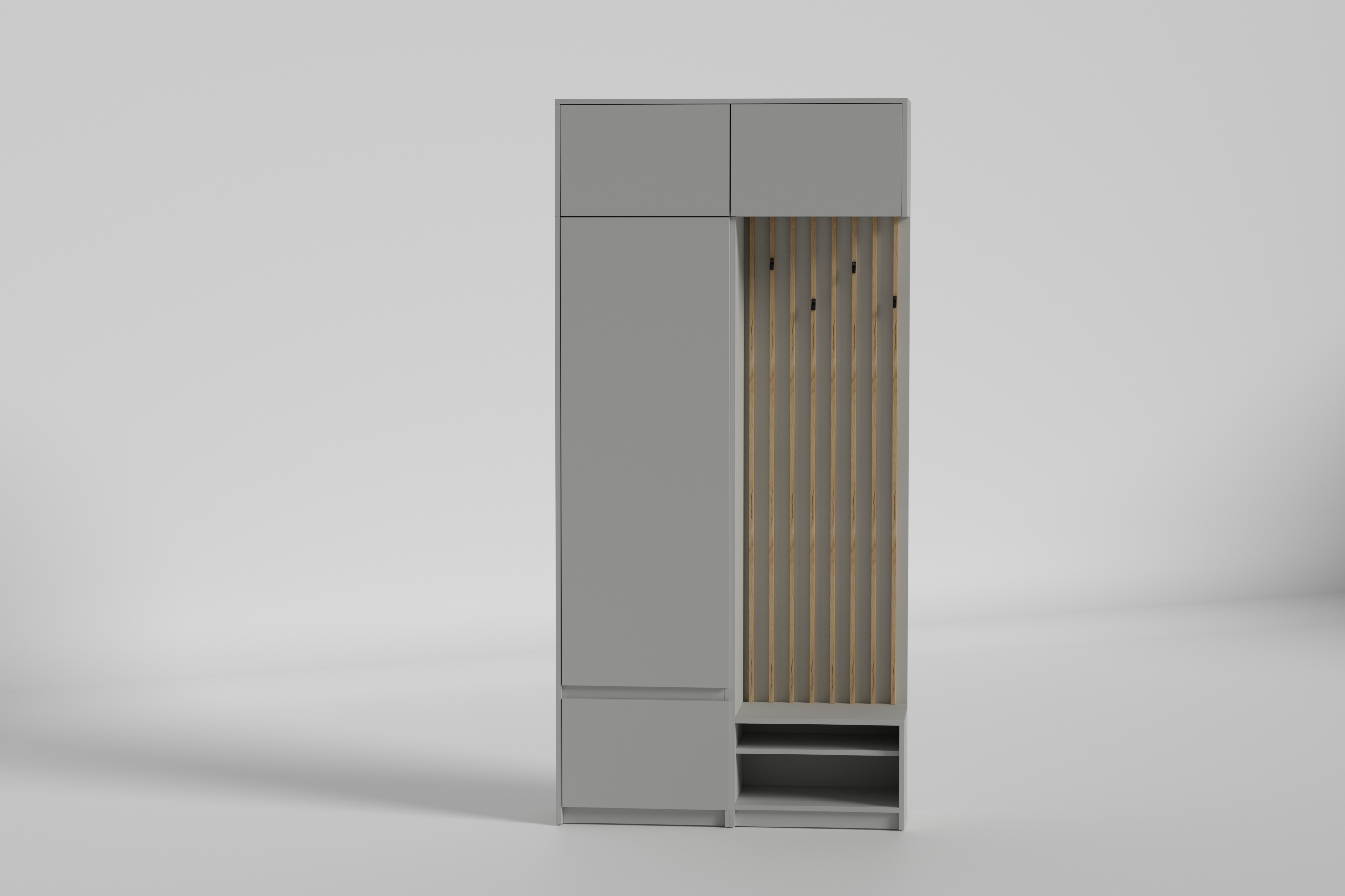 Переваги передпокою Space/Спейс №2Передпокій Space №2 - це сучасне рішення для передпокою. Його розміри 1200х416х2504 мм забезпечать достатньо місця для зберігання Ваших речей. Представлений передпокій виготовлен з ДСП (клас Е1) 18 мм і з рейками "горіх ліон", що надає йому елегантного вигляду. Краї меблів оброблені протиударною кромкою товщиною 2,0 мм, що гарантує довговічність використання та захист від пошкоджень.Передпокій Space №2 оснащений чорними гачками для зручного розміщення одягу. Вішалка може мати розташування праворуч або ліворуч на Ваш вибір. Фасад відкривається завдяки механізму Tip On GTV без використання ручки.Двері передпокою відчиняються/зачиняються плавно і безшумно, завдяки завісі Push On з доводчиками. Цей функціональний та стильний виріб чудово впишеться у будь-який сучасний інтер'єр, забезпечуючи зручність та організованість у Вашому передпокої.Переваги покупки передпокою Space/Спейс №2 на сайті виробника MatroluxeВирішивши купити передпокій Space №2 в інтернет-магазині Матролюкс, Ви гарантовано отримуєте наступні переваги:Найкраще співвідношення ціни та якості.Детальна інструкція зі збирання в комплекті.Гарантія від офіційного виробника.Оперативна доставка по Україні.Позитивні відгуки від покупців.Щоб оформити замовлення, додайте товар до віртуального кошика або зателефонуйте за одним із контактних номерів телефону. Менеджери магазину Matroluxe з радістю допоможуть Вам.