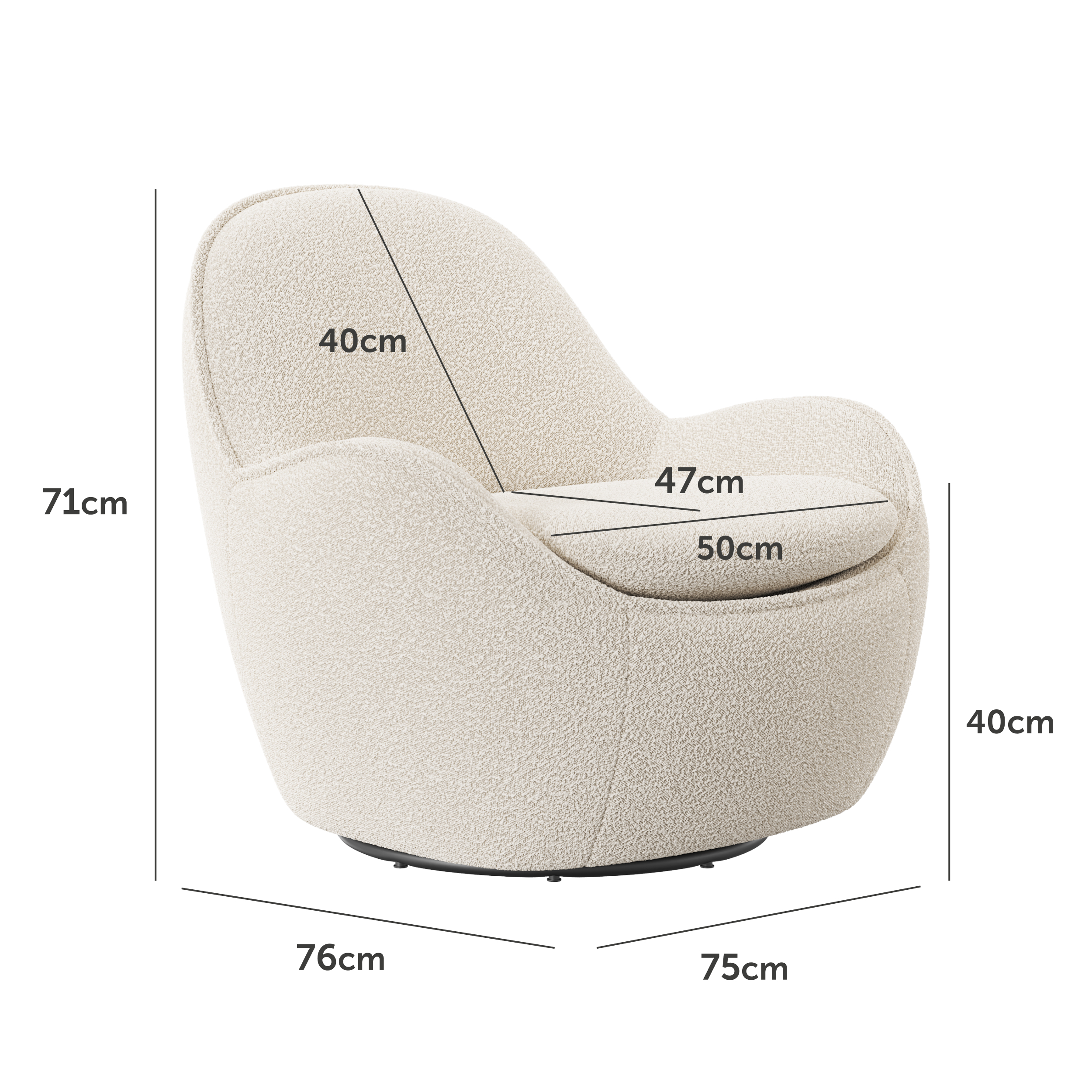 Поворотне крісло "Каллісто" — це втілення сучасного комфорту та елегантного стилю. Оббивка з м’якого букле в кольорі айворі додає інтер’єру затишку та вишуканості. Завдяки надійному механізму повороту крісло дарує свободу руху та зручність у щоденному користуванні.