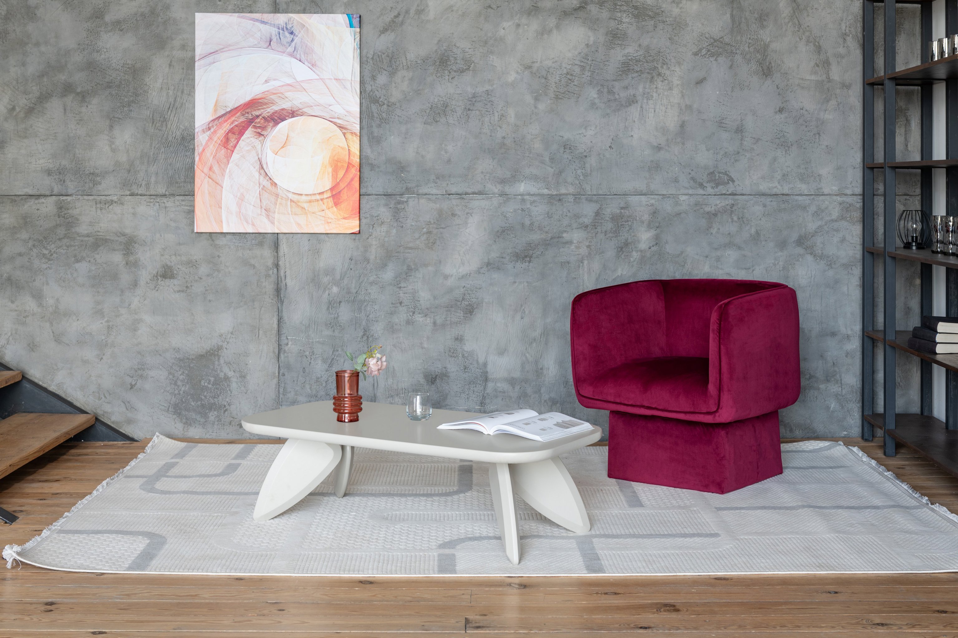Винний колір додає кріслу вишуканості і робить його виразним акцентом у будь-якому приміщенні. Цей відтінок добре поєднується з багатьма іншими кольорами і матеріалами.