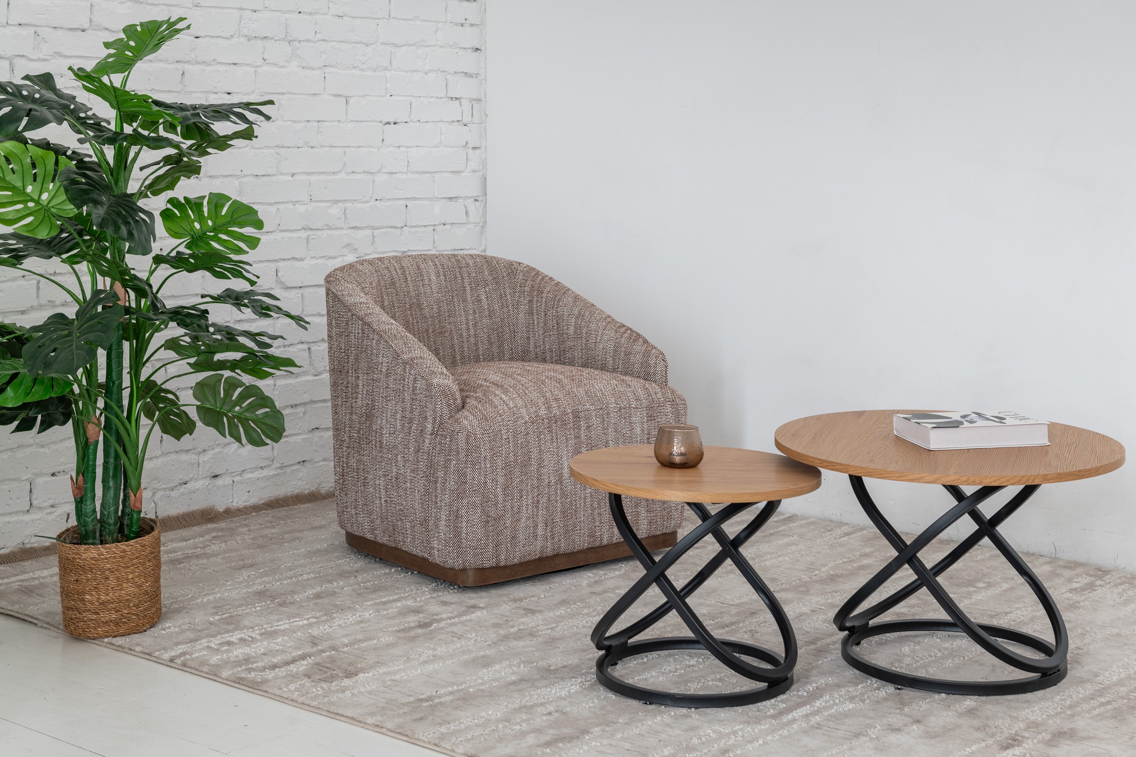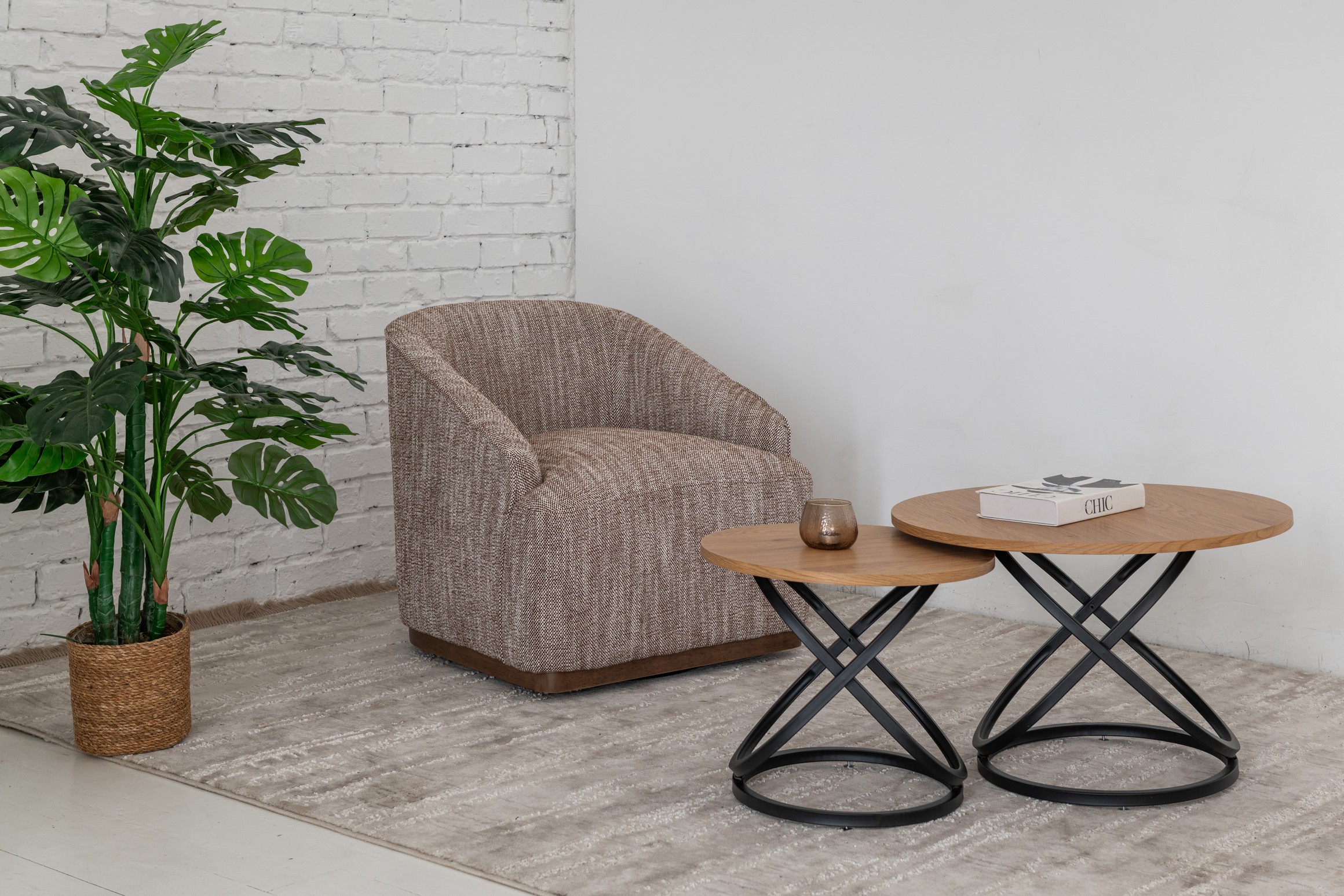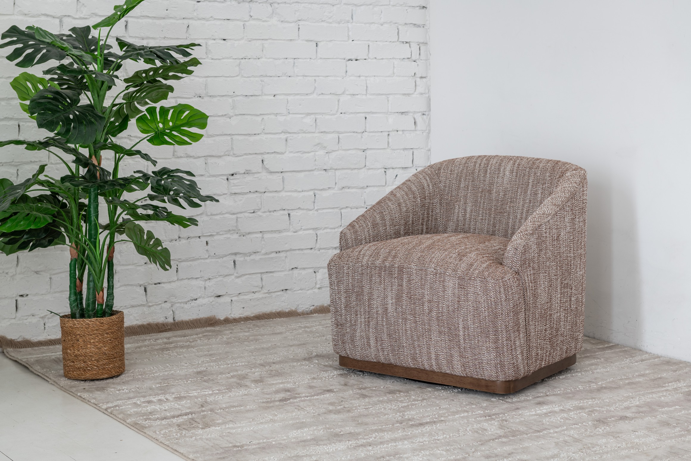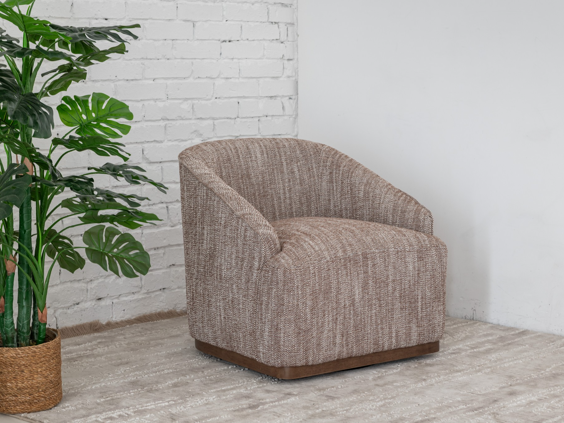 Поворотне крісло "Тіволі" у відтінку теплий каштан — це стильне поєднання сучасного дизайну та затишної естетики. М’яка оббивка з фактурної тканини приємна на дотик та вирізняється зносостійкістю, а теплий каштановий колір додає інтер’єру природної гармонії та вишуканості. Завдяки надійному механізму повороту крісло забезпечує свободу руху та зручність у повсякденному користуванні.