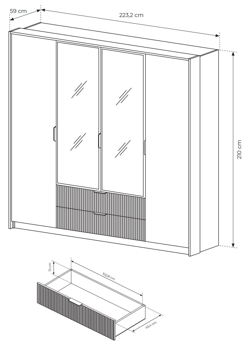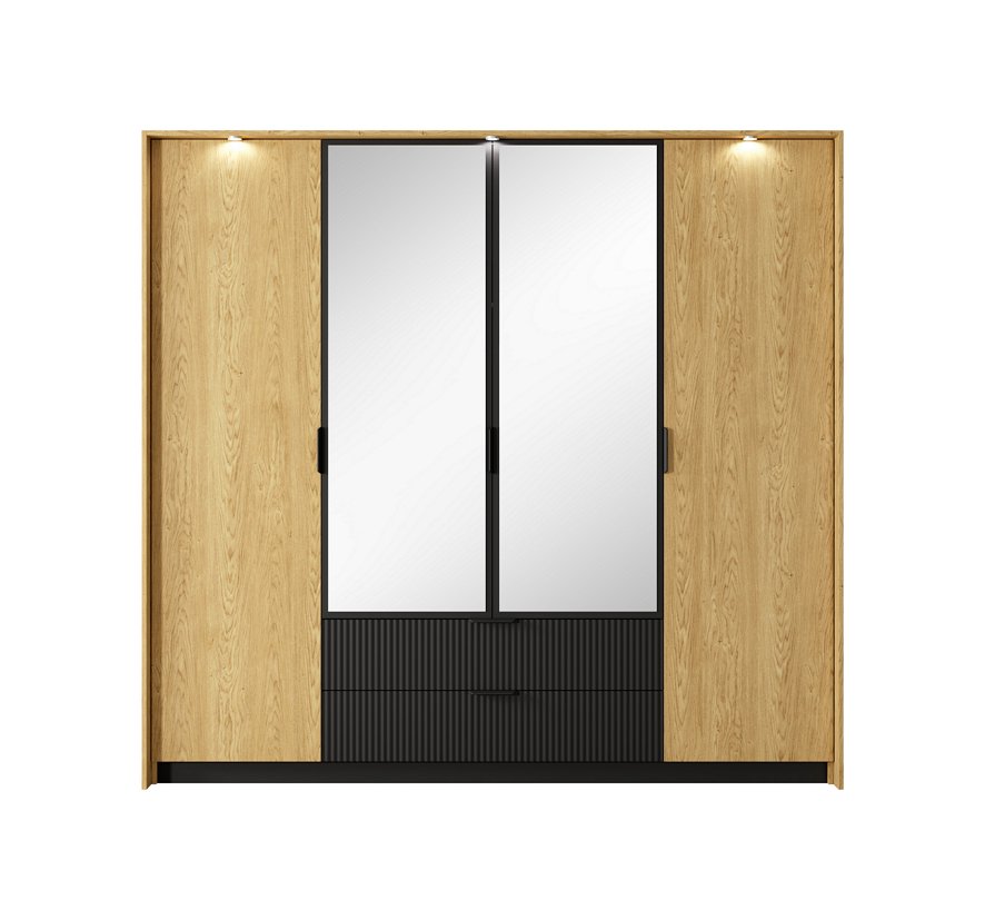 Шафа для одягу Perfect Home Арко / Arco 4-дверна з дзеркалом 4D2S/220 Білий глянець/дуб грандсон