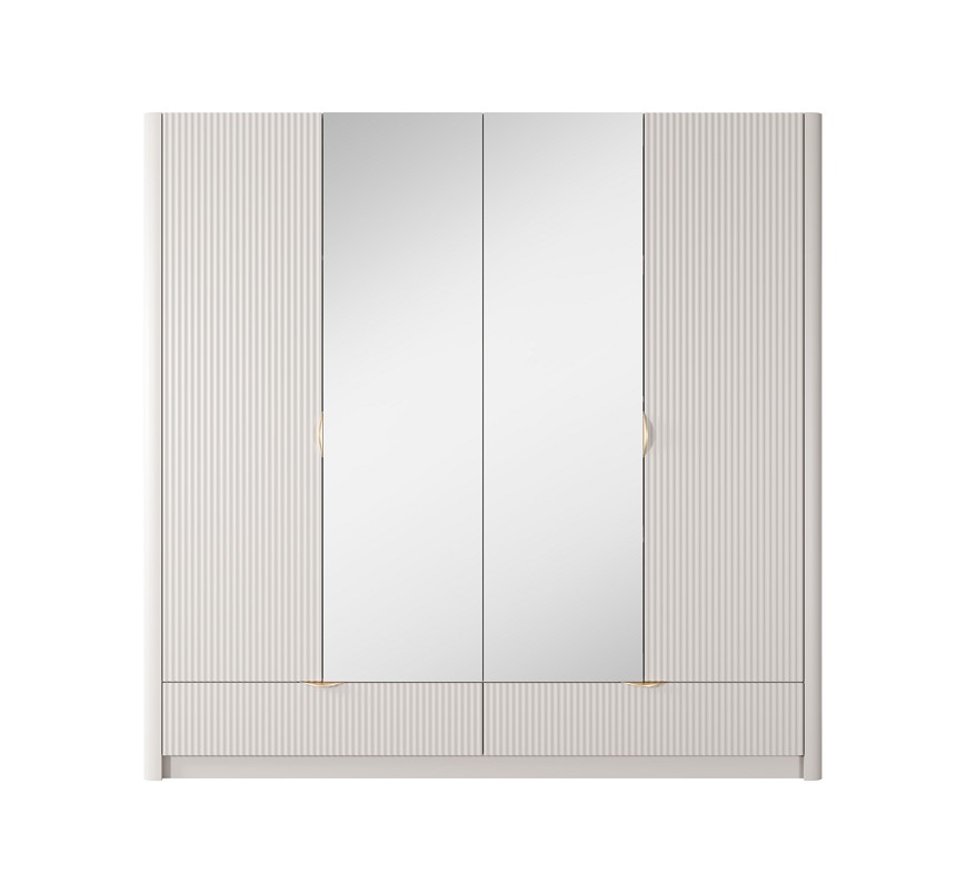 Шафа для одягу Perfect Home Ланте / Lante 4-дверна з дзеркалом і золотими ручками 4D2S/213 Беж