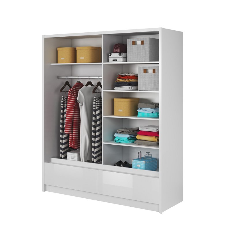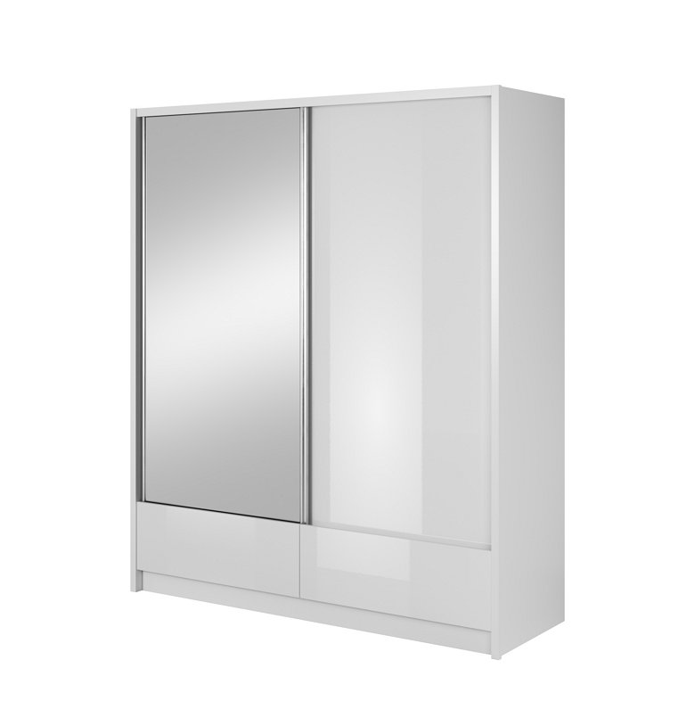 Зображення з  Шафа-купе Perfect Home Арія I / Aria I 180 2-дверна з дзеркалом Білий/білий глянець
