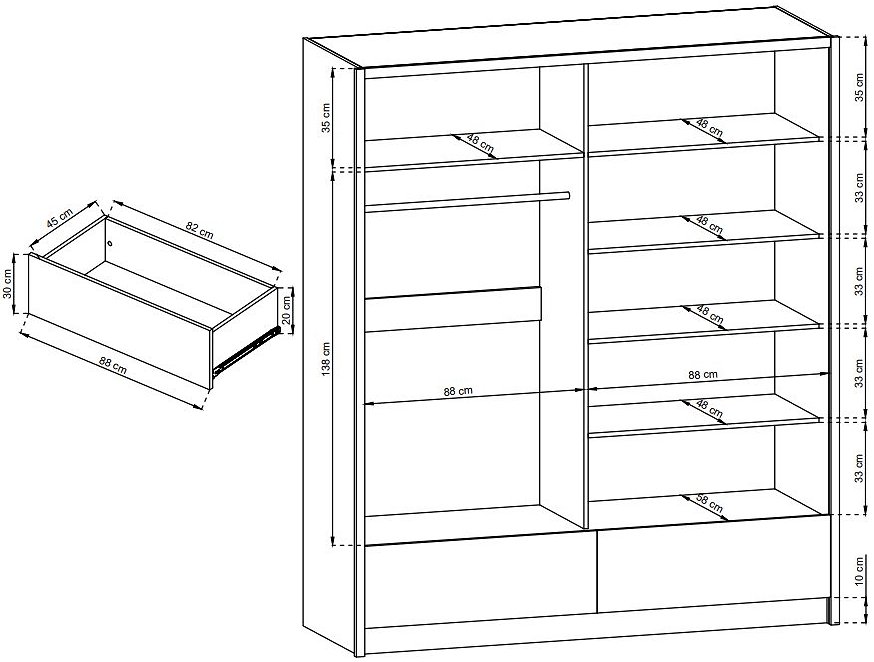 Зображення з  Шафа напівкупе для одягу Perfect Home Сара / Sara 200 3-дверна з дзеркалом Білий/дуб сонома