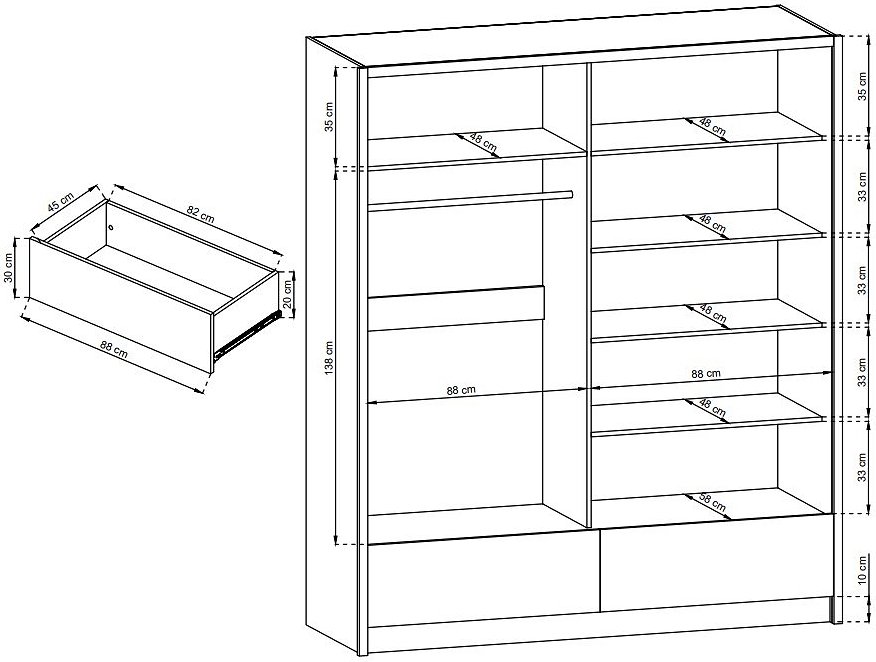 Зображення з  Шафа напівкупе для одягу Perfect Home Сара / Sara 200 3-дверна з дзеркалом Білий/дуб сонома
