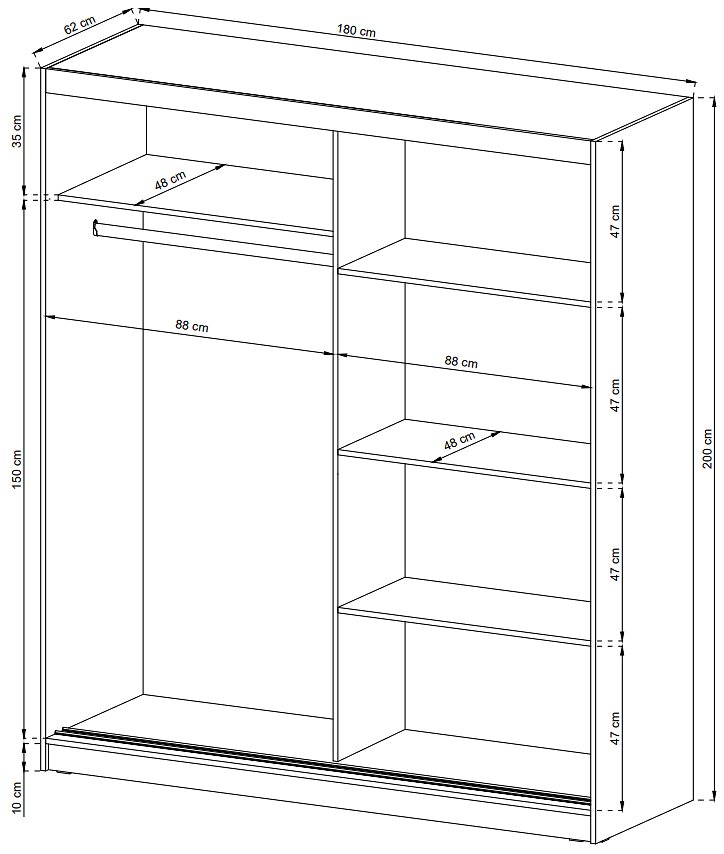 Зображення з  Шафа напівкупе для одягу Perfect Home ТВ / TV 200 2-дверна з дзеркалом Графіт