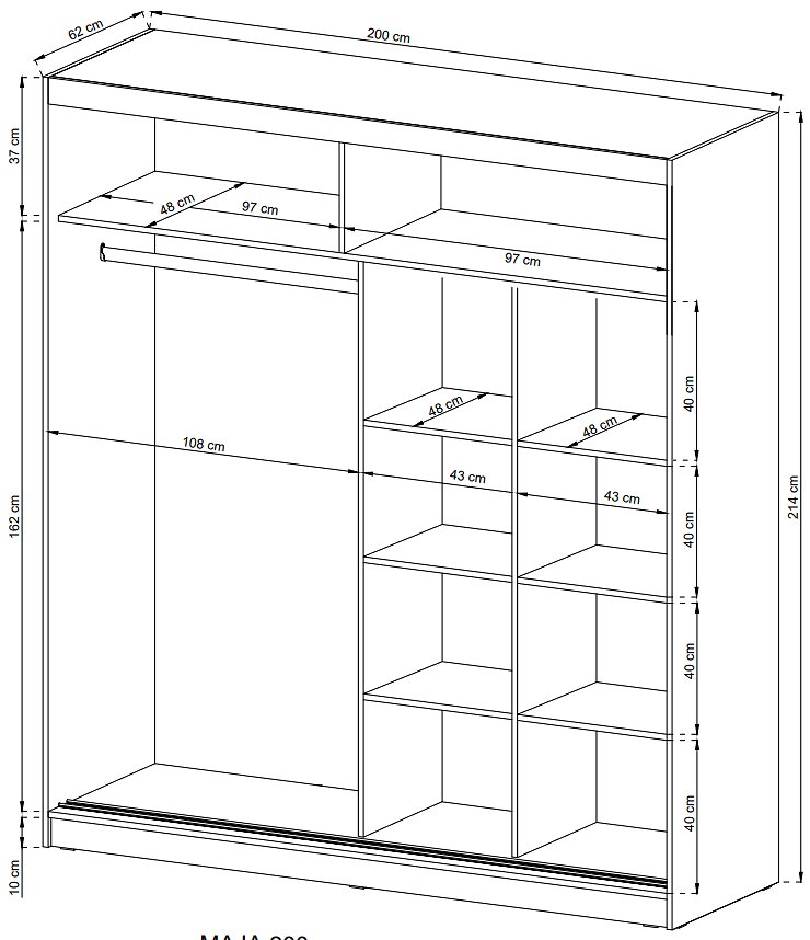 Шкаф распашной 2000 4-дв. Noir/Нуар, Готові кольорові рішення Біла Аляска
