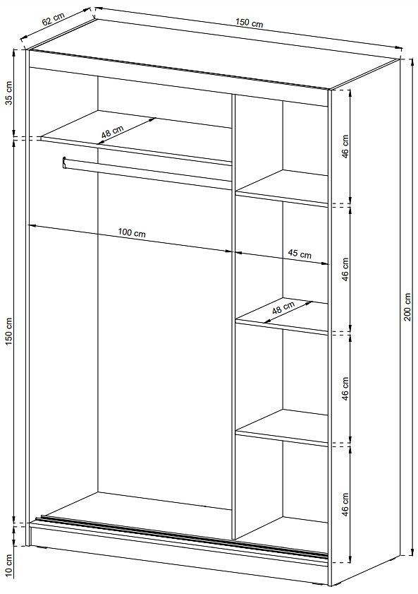 Зображення з  Шафа-купе Perfect Home Мая / Maja 150 2-дверна з подвійним дзеркалом Білий