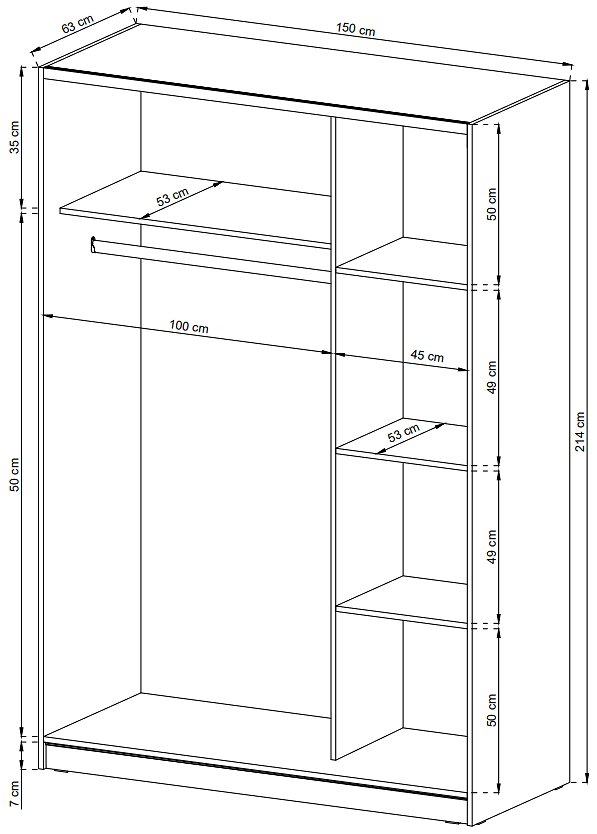 Шафа-купе Perfect Home Вікі II / Wiki II 200 2-дверна з дзеркалом Графіт