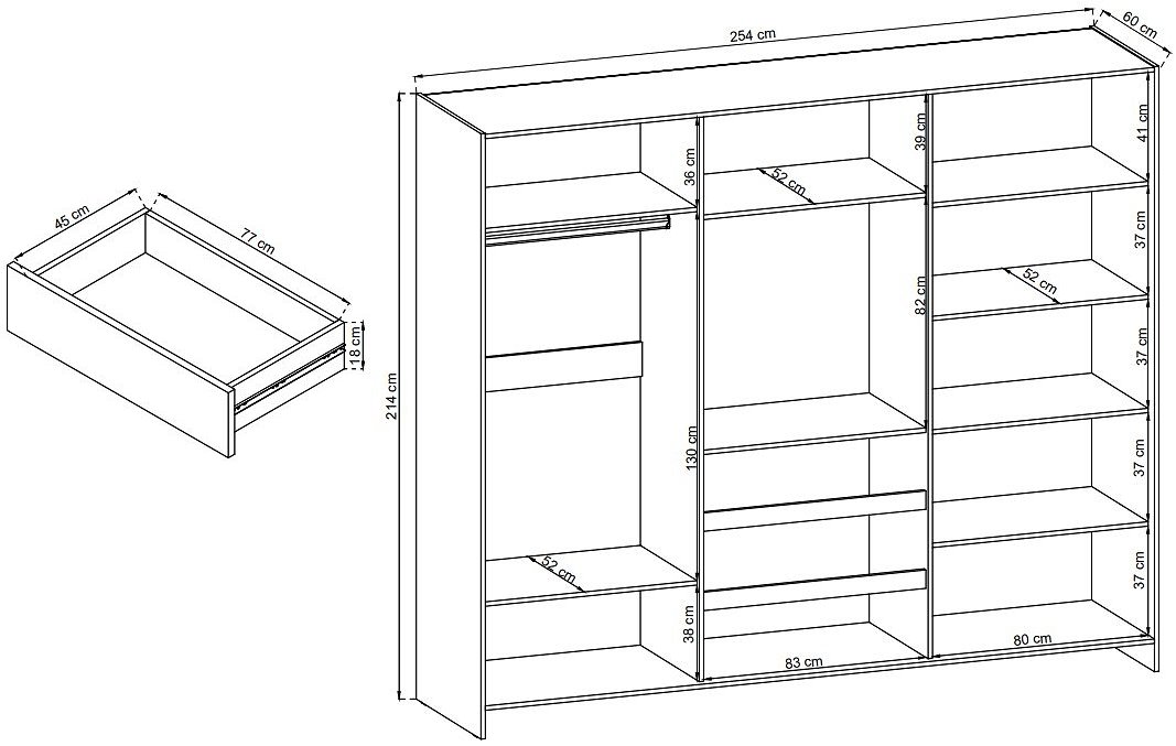 Шафа-купе Perfect Home ТВ / TV 250 3-дверна з дзеркалом Білий