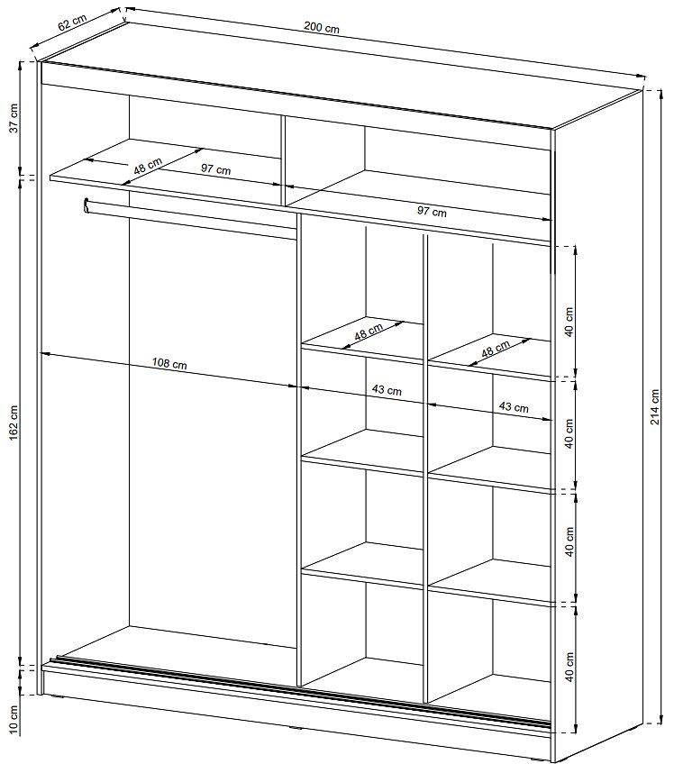 Шафа-купе Perfect Home Вікі IX / Wiki IX 200 2-дверна з дзеркалом Графіт