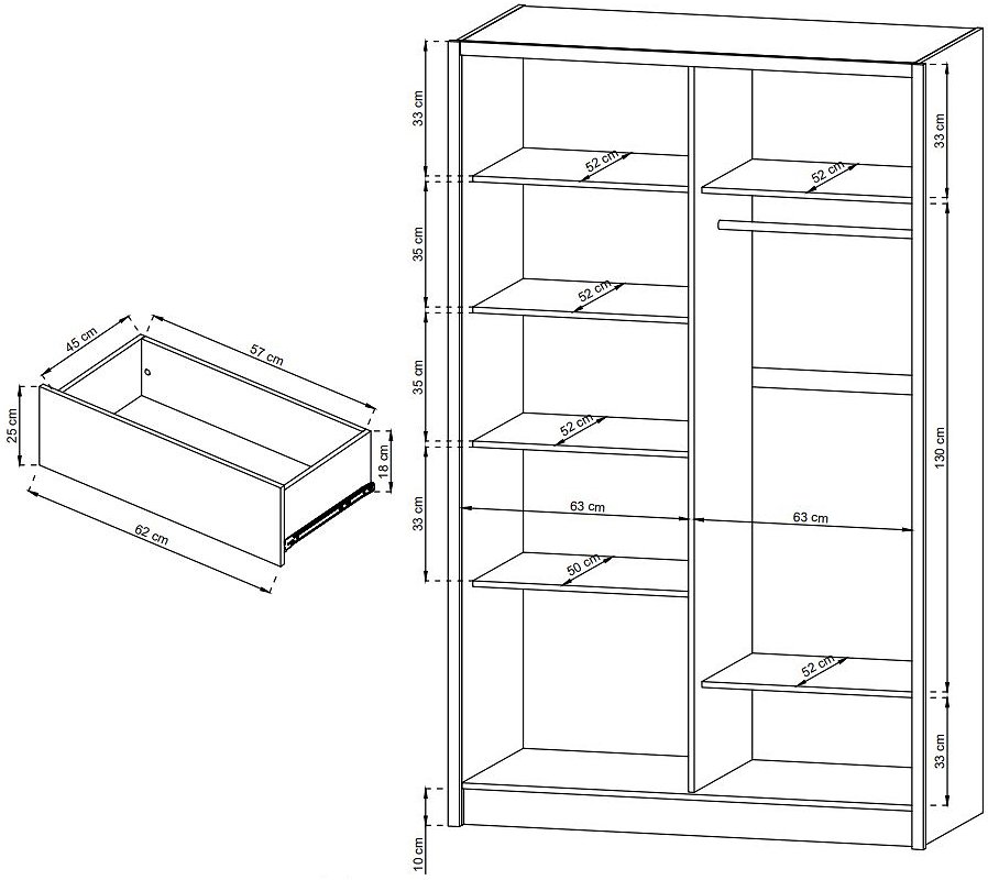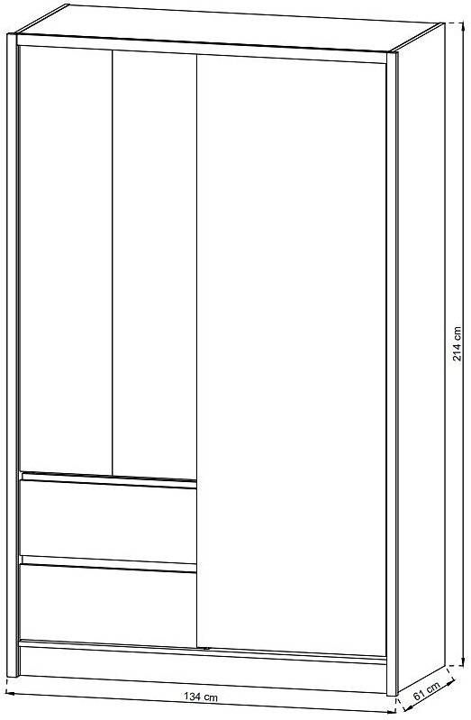 Шафа напівкупе для одягу Perfect Home Сара / Sara 180 3-дверна з дзеркалом Білий