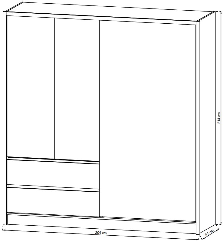 Шафа напівкупе для одягу Perfect Home Сара / Sara 150 3-дверна з дзеркалом Білий