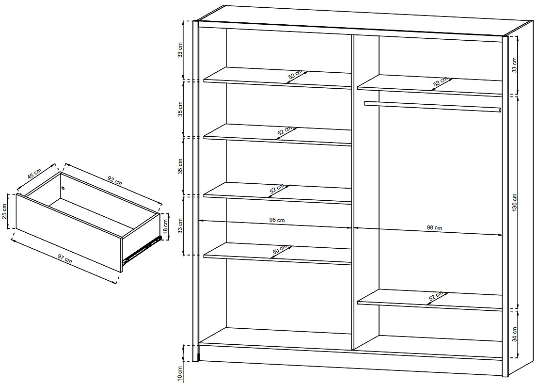 Шафа напівкупе для одягу Perfect Home Сара / Sara 130 3-дверна з дзеркалом Білий