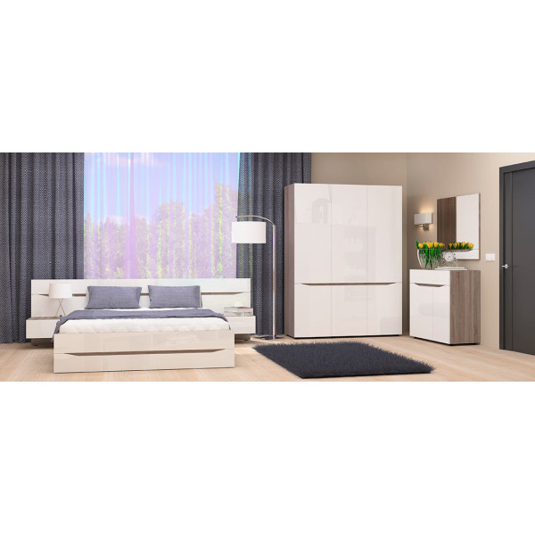 LUXE STUDIO - це найбільший виробник надійної корпусних меблів високої якості. Використовуючи новітні технології і сучасні матеріали нами розроблені десятки гармонійних дизайнів корпусних меблів, шаф і шаф-купе, серед яких ви, без сумніву, зможете підібрати варіант, який стане справжньою окрасою саме вашого інтер'єру. Комплект для спальні Beverly (Беверлі) 1 відрізняється легкістю і лаконічністю дизайну, і включає в себе все необхідне для створення комфортної і функціональної спальні.Комплект Beverly виробляється в одному кольоровому рішенні:Корпус: ДСП дуб сонома трюфельФасад: МДФ Білий глянець У комплект для спальні Beverly (Беверлі) - 1 входить: Ліжко Beverly (Беверлі) Тумба приліжкова Beverly (Беверлі) - 2 шт Шафа Beverly (Беверлі) Дзеркало Beverly (Беверлі) Комод Beverly (Беверлі) Увага! Матрац в комплект не входить. Підібрати ортопедичний матрац для ліжка Beige (Беж) можна ТУТ * Виробник залишає за собою право без повідомлення споживача вносити зміни в конструкцію виробів для поліпшення їх технологічних і експлуатаційних параметрів. Вид виробів може незначно відрізнятися від представлених на фотографіях.