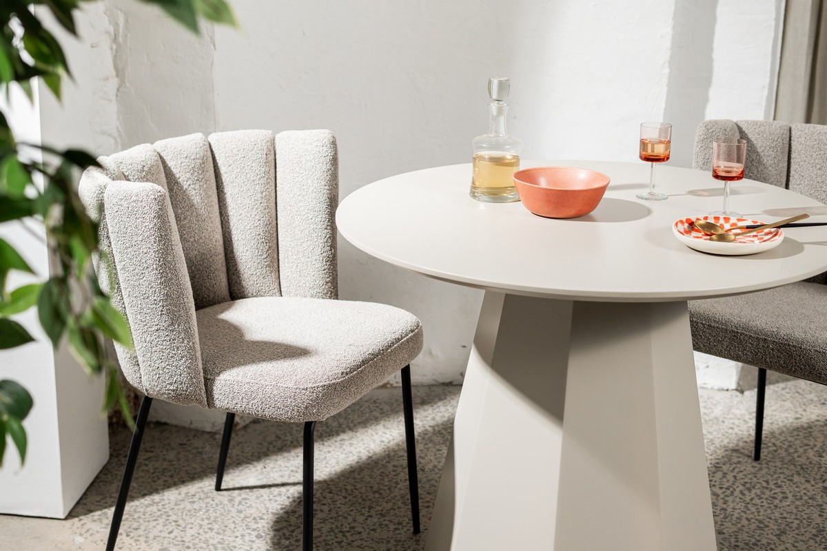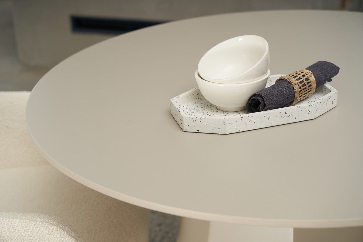 Кругла форма столу забезпечує рівномірний розподіл місць для сидіння навколо нього. Це сприяє більш затишному та природньому розташуванню гостей під час розмови або прийому їжі. Ніхто не опиняється "за кутом", що створює атмосферу комфорту та рівності.