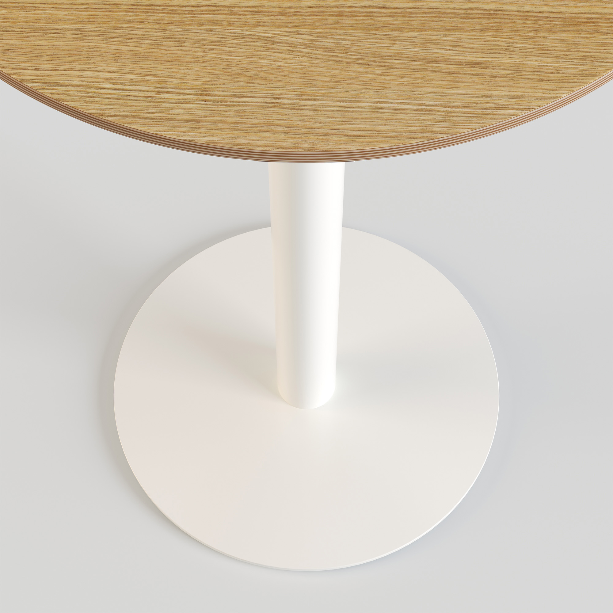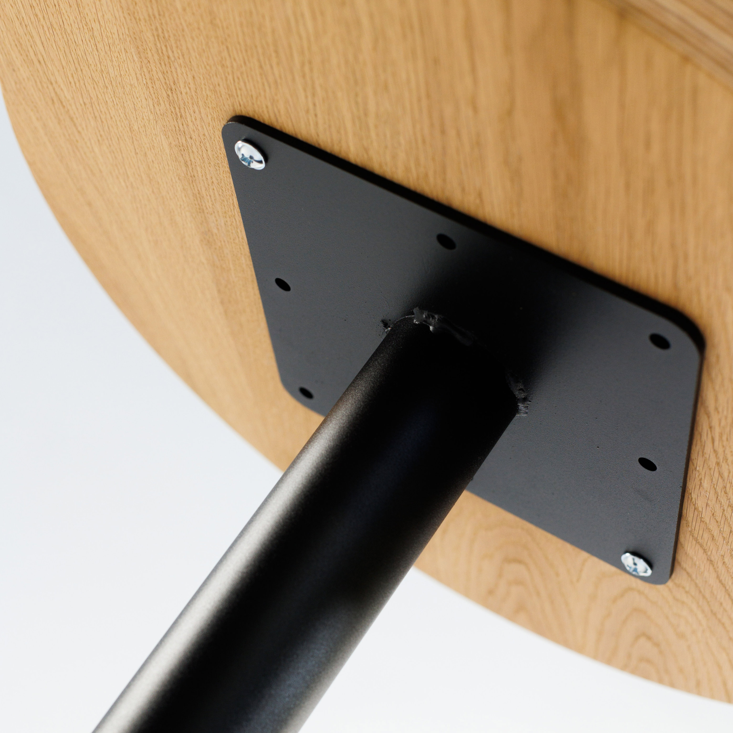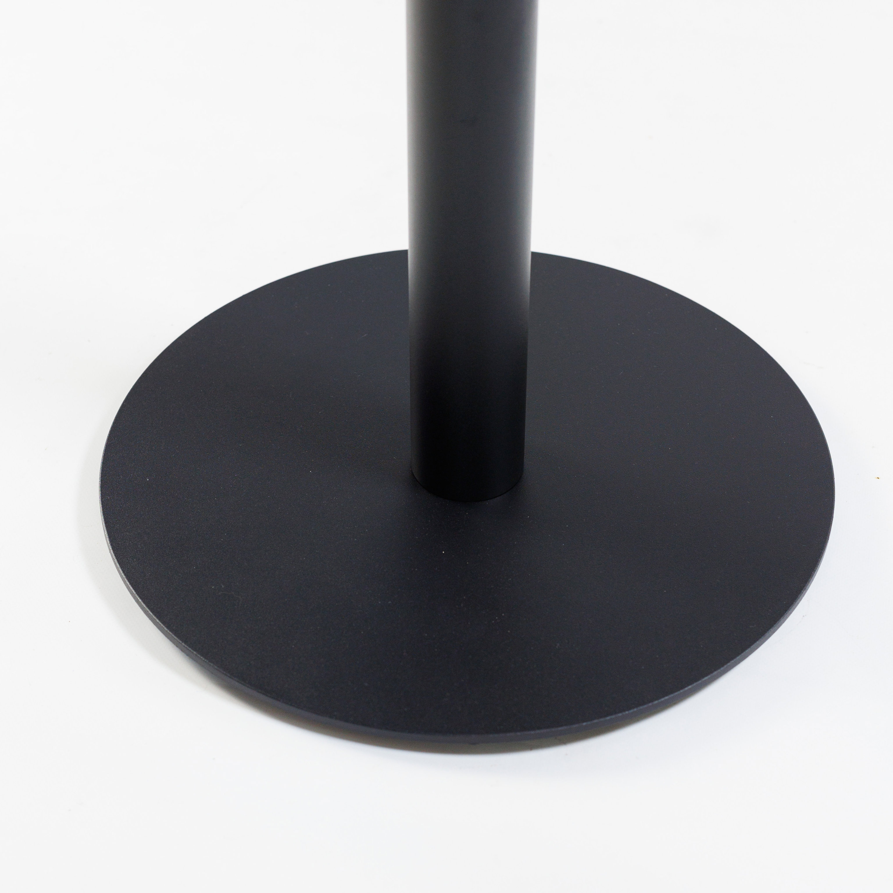 Опора столу складається з нижньої основи діаметром 400 мм товщиною 6 мм з регульованими ніжками, труби діаметром 60 мм з товщиною стінки 1,5 мм, і кріпильної пластини 200х200х4 мм. Покривається порошковою фарбою. Це робить конструкцію стійкою до негативного впливу вологи та механічних пошкоджень.