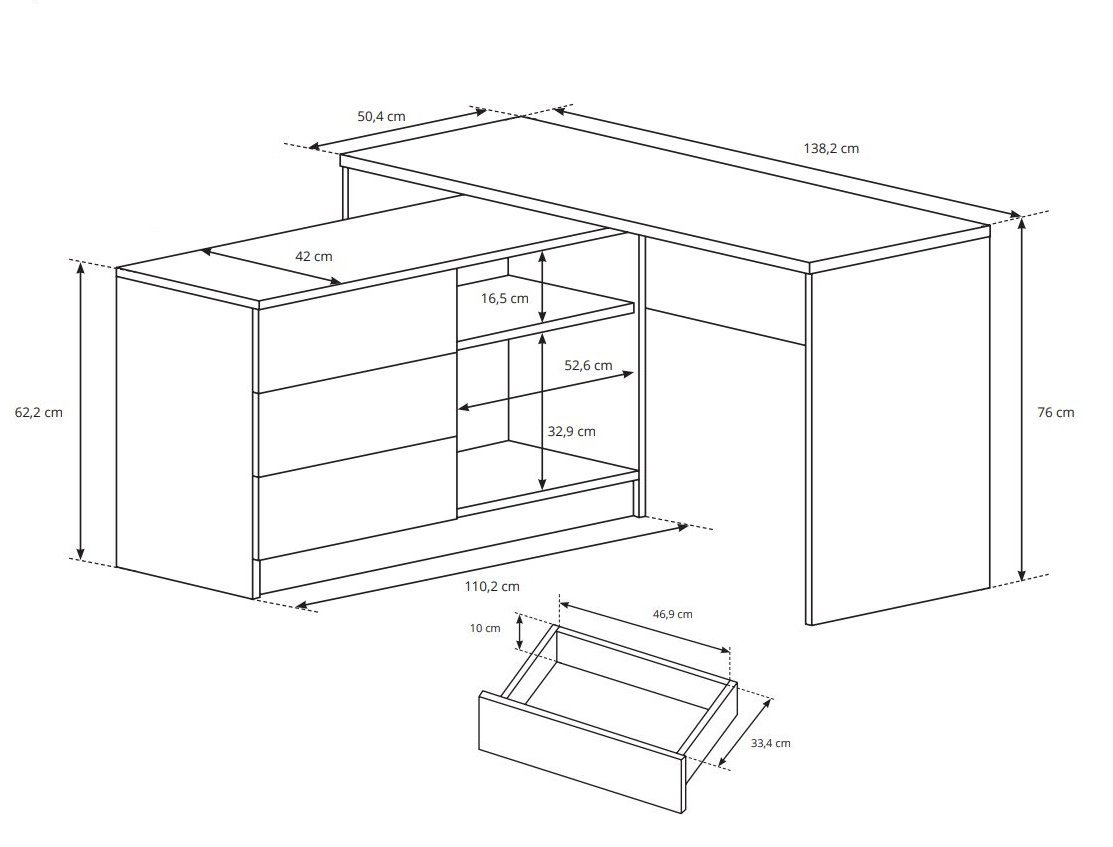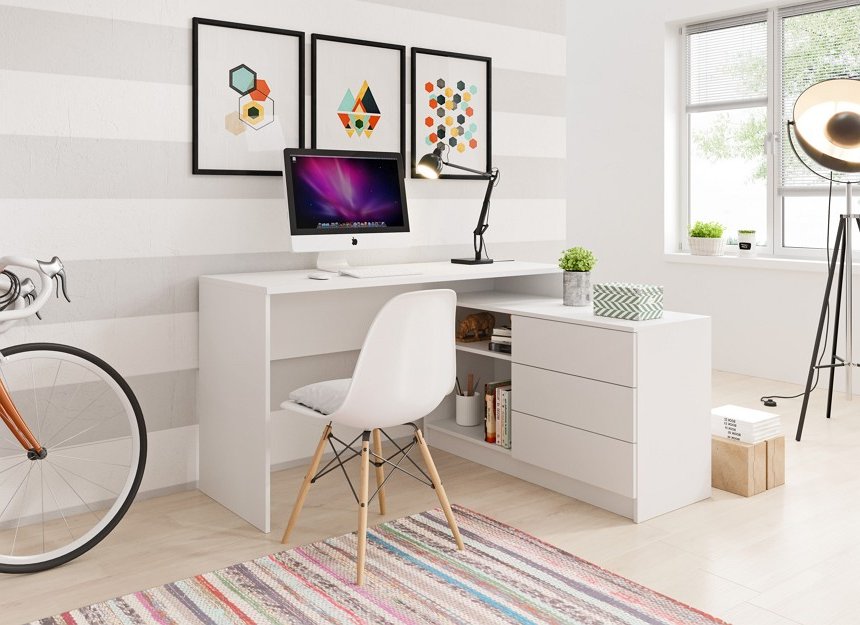 Стіл офісний письмовий Perfect Home Тео / Teo 3S/138 з 3 шухлядами Білий