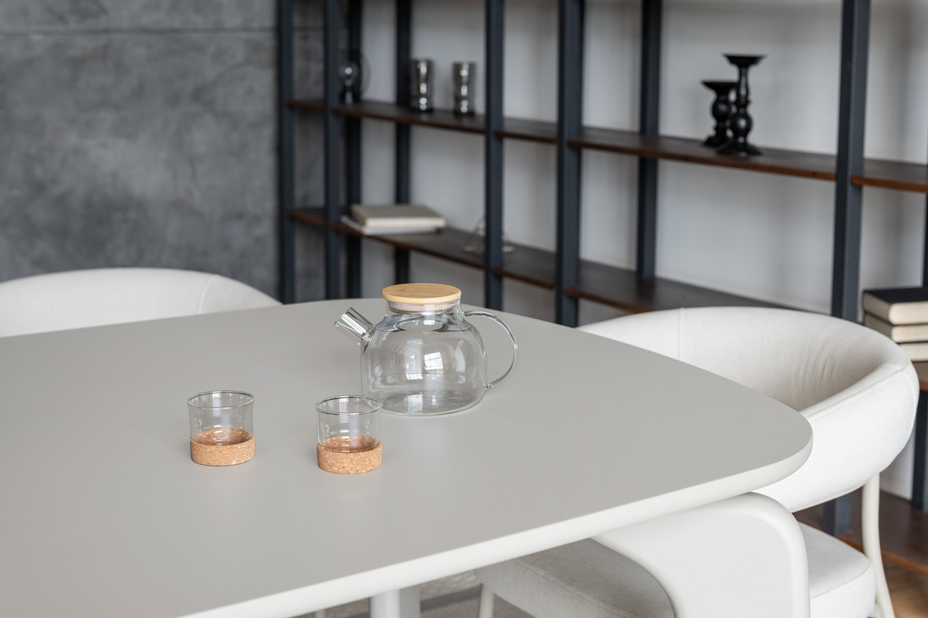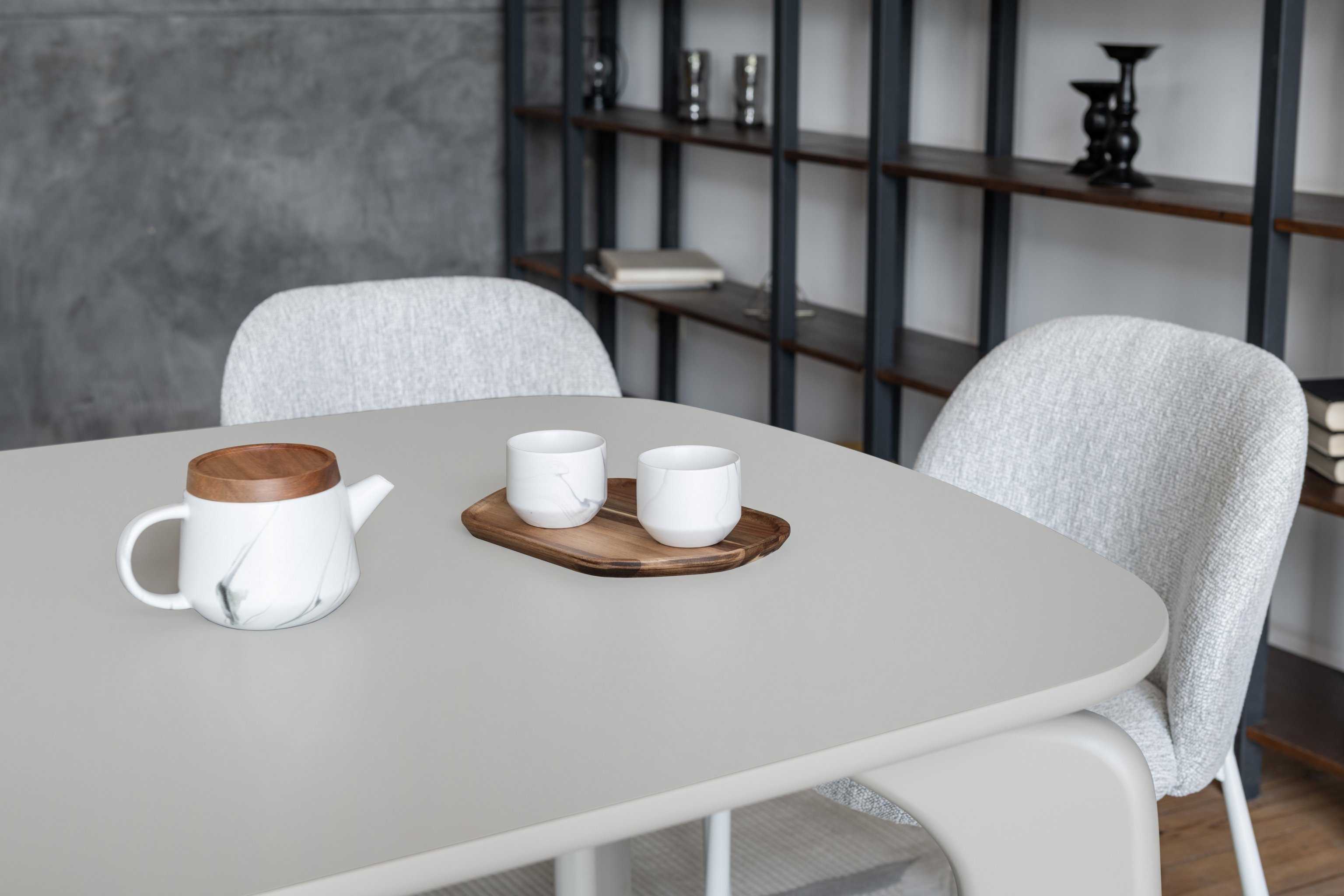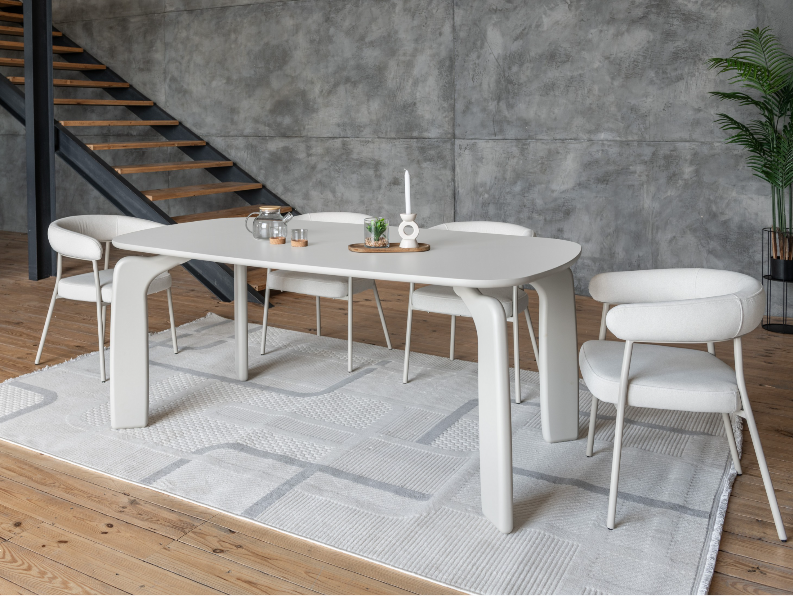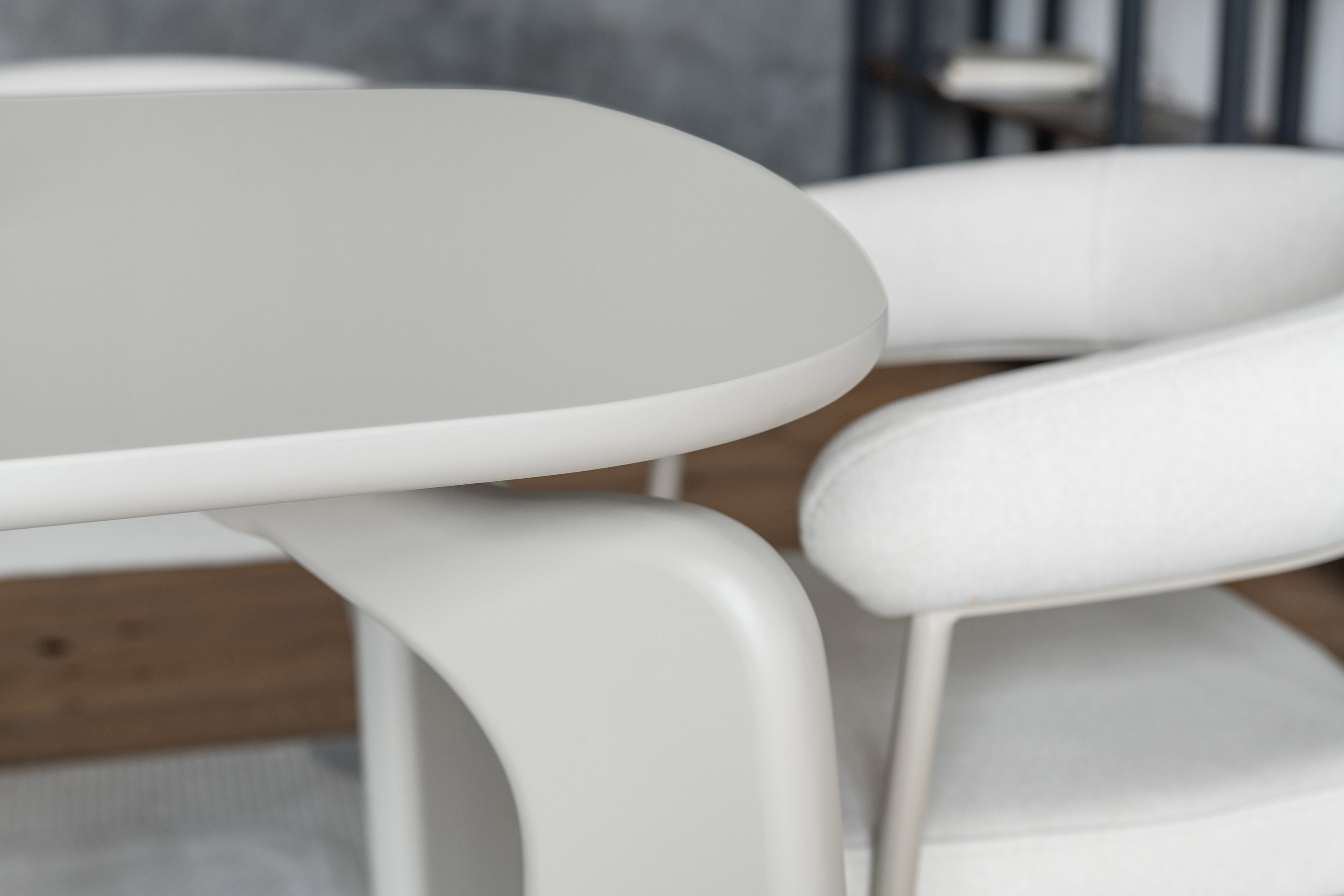 Стільниця та основа виготовлені з матового поліуретаново фарбованого МДФ, що робить стіл не лише красивим, а й стійким до зносу. Матова поверхня додає елегантності, а сам матеріал забезпечує високу міцність і довговічність.