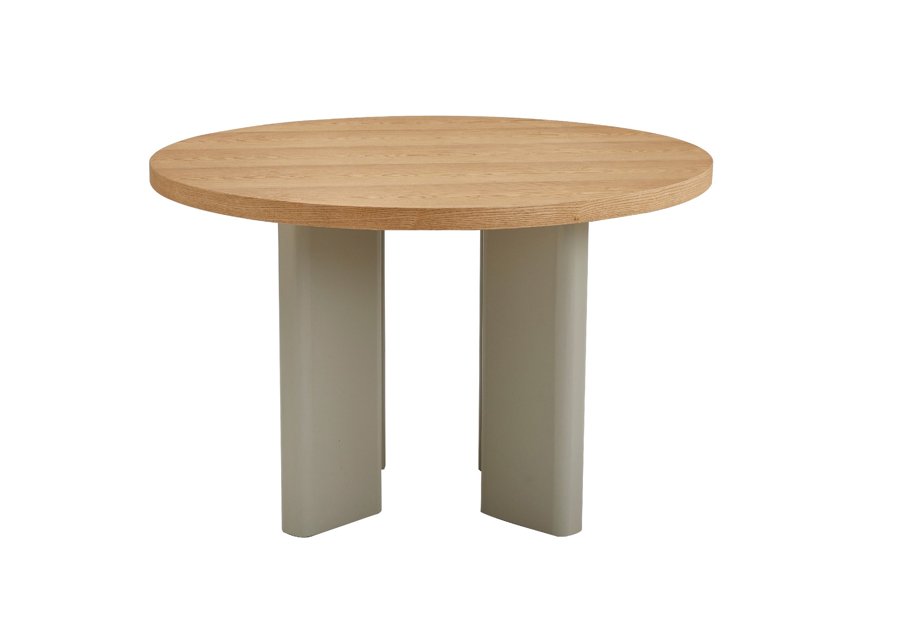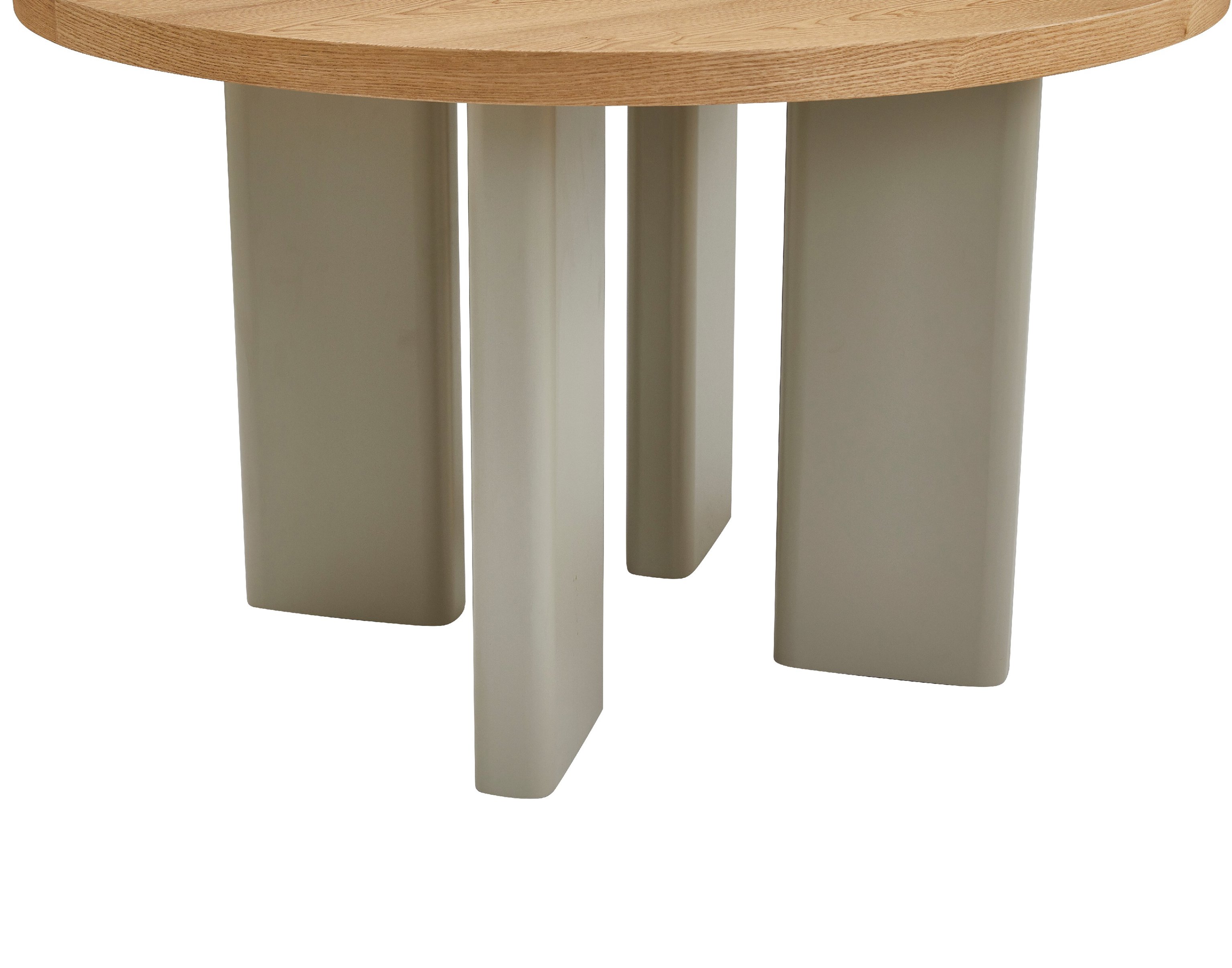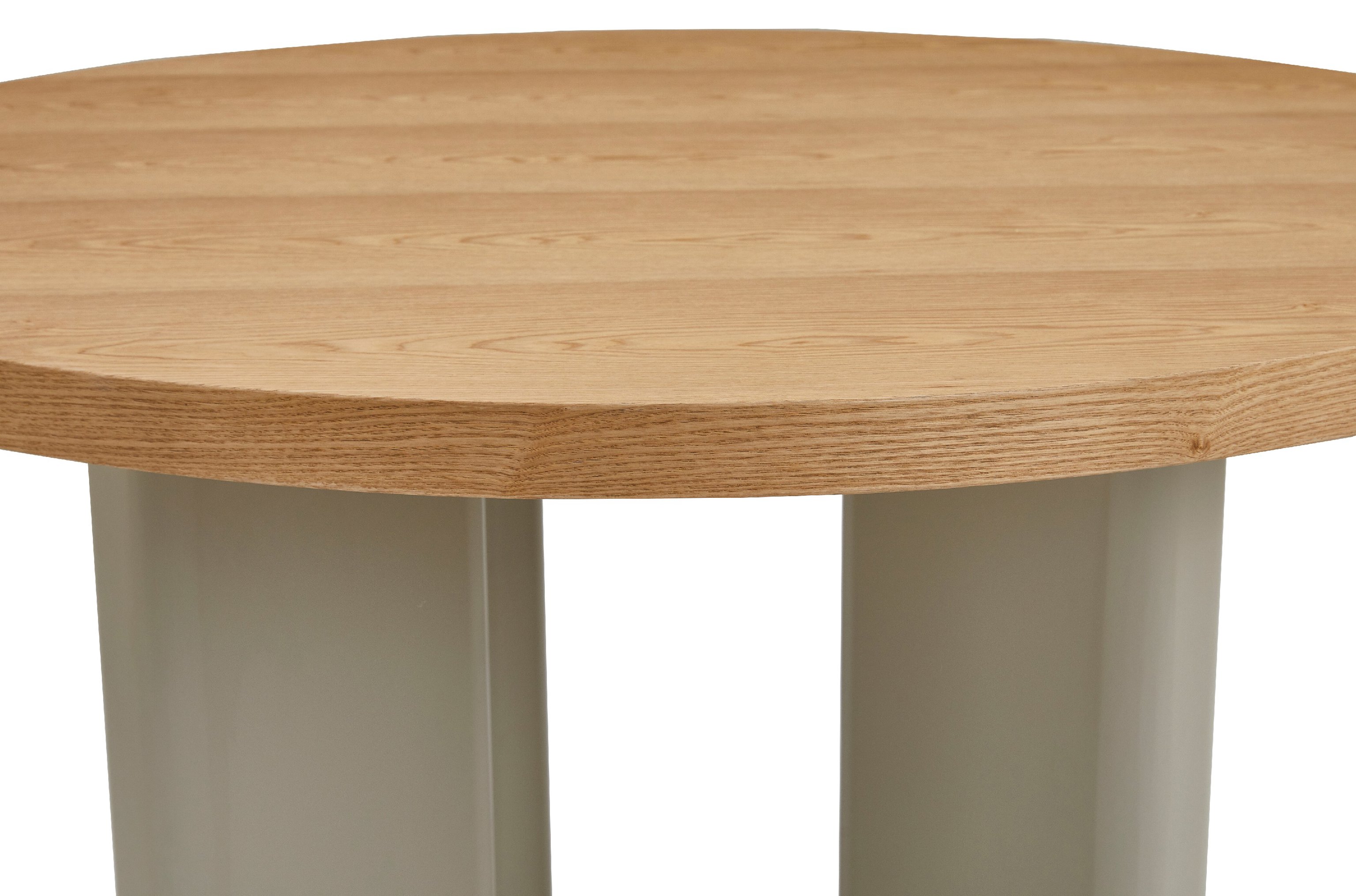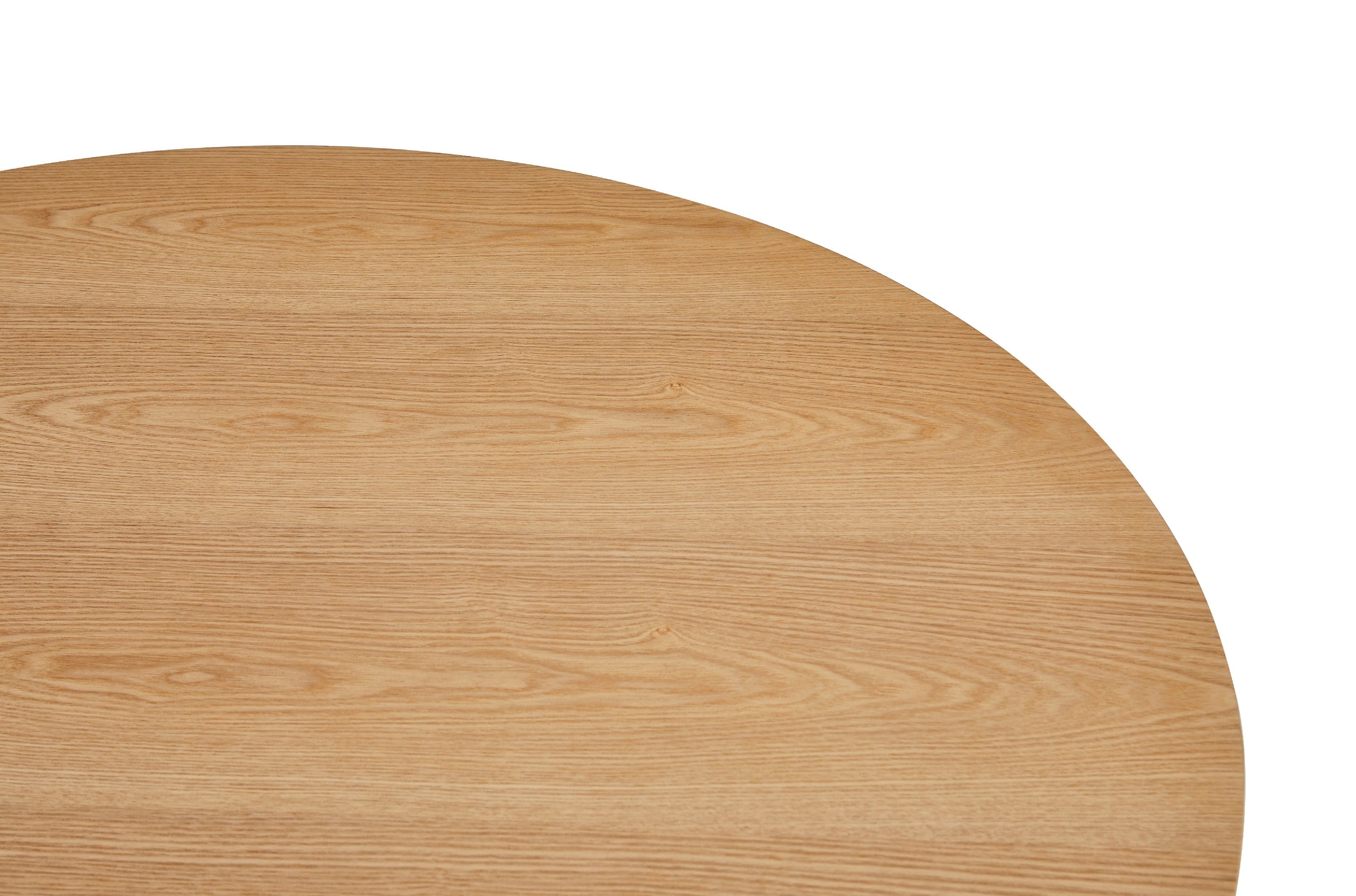 Кругла стільниця діаметром 120 см виготовлена зі шпонованого МДФ у відтінку “ясень”, що додає виробу природного шарму та тепла.