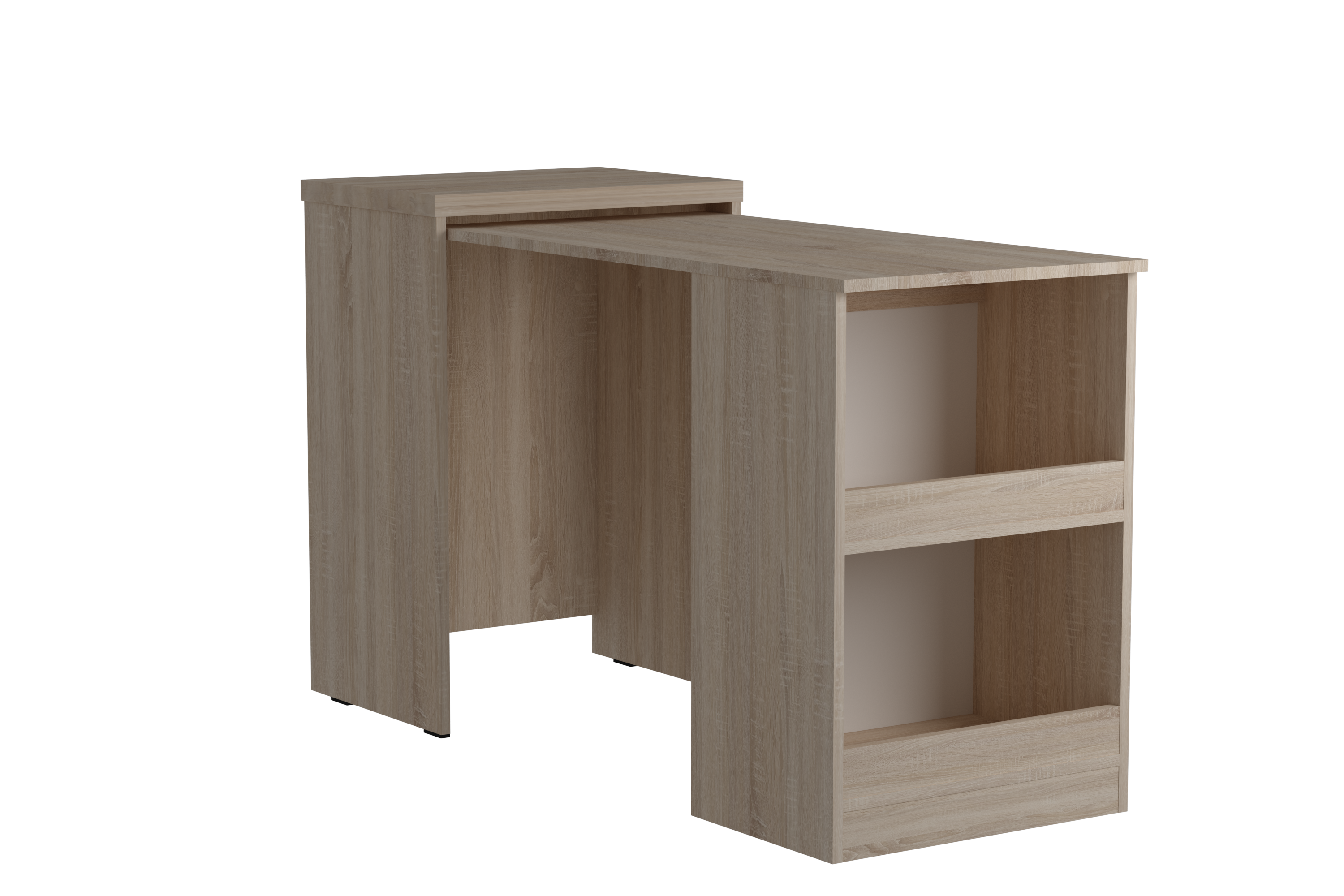 Стіл-трансформер Smart/Смарт 1Цей стіл-трансформер - ідеальне рішення для тих, хто цінує практичність та функціональність у меблях. Завдяки інноваційному дизайну, він легко трансформується, забезпечуючи зручність у використанні та ефективне використання простору.Його розміри складають 546х400х800 мм, а розкладений вигляд досягає 1345х546х800 мм, що робить його ідеальним як для невеликих, так і для більших приміщень. Виготовлений з високоякісного ЛДСП товщиною 16 мм, класу Е1, цей стіл гарантує довговічність та безпеку використання.Кришка тумби товщиною 32 мм забезпечена протиударним краєм, що збільшує його стійкість та довговічність. Механізм з шумопоглинаючими роликами та резиновими елементами забезпечує плавне та безшумне відкривання та закривання.З двома відкритими полицями, цей стіл дозволяє зручно організувати простір, зберігаючи речі поряд і легко доступними. Завдяки своїй універсальності та функціональності, цей стіл-трансформер стане невід'ємною частиною вашого домашнього або офісного інтер'єру, забезпечуючи комфорт та зручність у щоденному використанні.