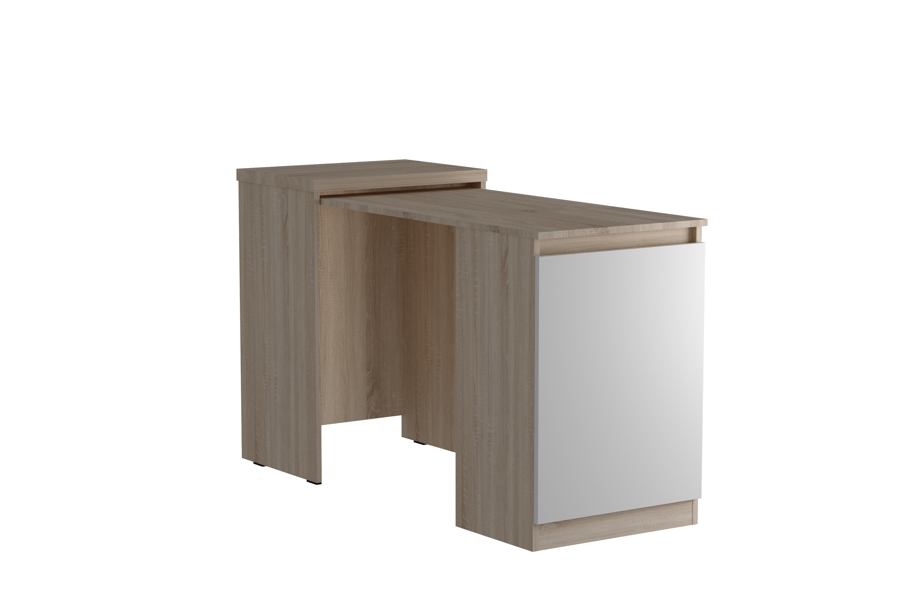 Стіл-трансформер Smart/Смарт 4Стіл-трансформер Смарт 4 - це чудове поєднання стилю, функціональності та інноваційного дизайну. Цей стіл ідеально підходить для сучасного інтер'єру, забезпечуючи зручність і практичність в умовах обмеженого простору. Завдяки легкому трансформаційному механізму, стіл-тумба швидко перетворюється на просторий робочий стіл, забезпечуючи комфортну робочу зону.Характеристики:Розміри:У складеному стані: 546х400х800 ммУ розкладеному стані: 1345х546х800 ммМатеріал:Корпус і фасади виготовлені з ламінованої деревостружкової плити (ЛДСП) товщиною 16 мм, що відповідає класу екологічності Е1.Кришка тумби виконана з ЛДСП товщиною 32 мм з протиударною кромкою, що забезпечує довговічність і стійкість до механічних пошкоджень.Механізм:Оснащений шумопоглинаючими гумовими роликами, які забезпечують плавний і безшумний рух при трансформації.Наповнення:Один розпашний фасад із фурнітурою, оснащеною доводчиком, що забезпечує плавне і безшумне закривання.Кольори:Біле деревоАляскаДуб саномаАнтрацитДуб крафт золотийДуб крафт білийДуб сонома трюфельДуб експресо бронзовийГоріх ліонДуб урбан ойстерСтіл-трансформер Смарт 4 ідеально впишеться в будь-який інтер'єр завдяки широкому вибору колірних рішень. Це чудовий вибір для тих, хто хоче ефективно використовувати простір свого дому чи офісу, не жертвуючи стилем і комфортом.