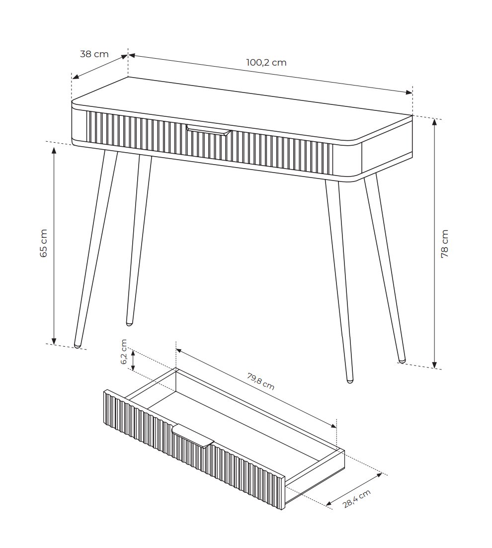 Стіл туалетний Perfect Home Ланте / Lante 1S/100 з 1 шухлядою і золотими ніжками Беж