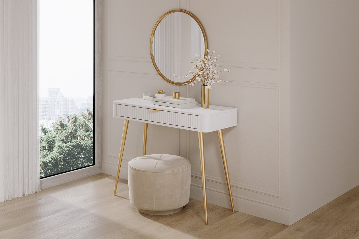 Стіл туалетний Perfect Home Ланте / Lante 1S/100 з 1 шухлядою і золотими ніжками Білий