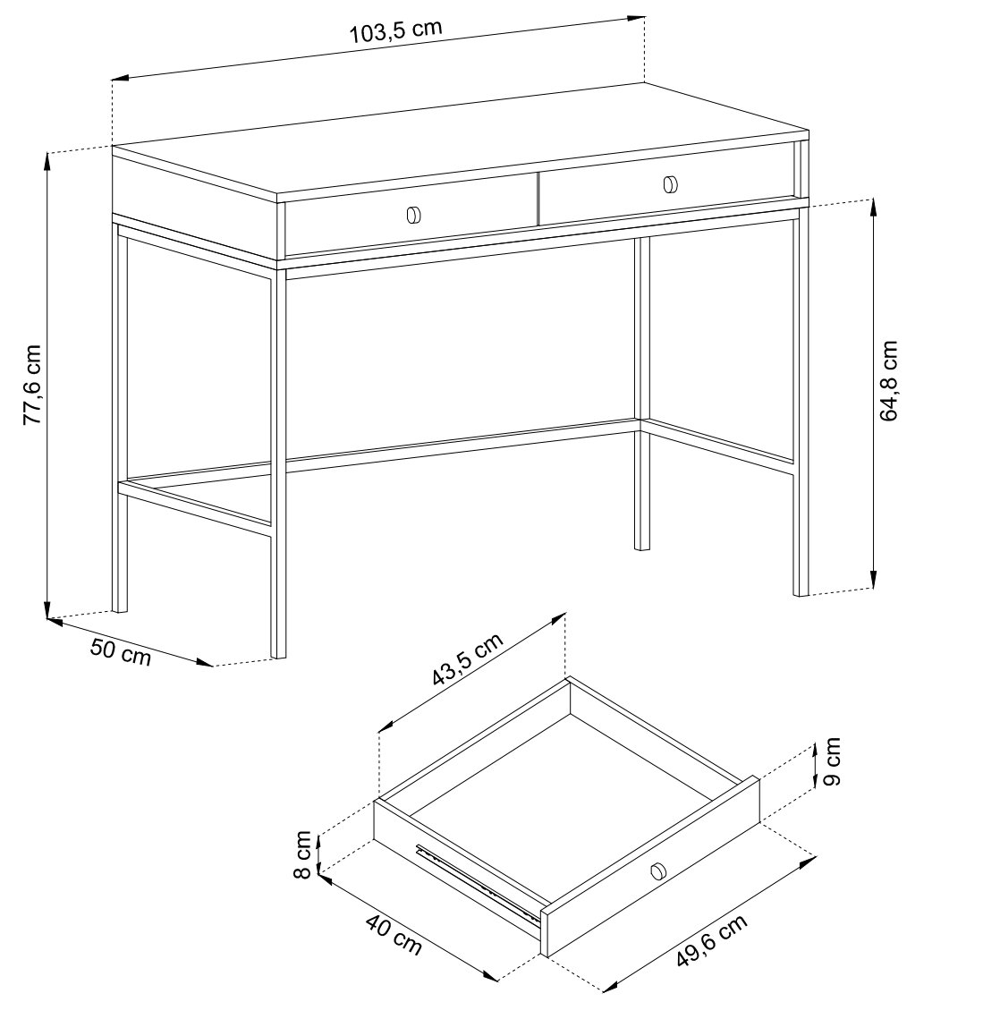 Стіл туалетний Perfect Home Моно / Mono з 2 шухлядами та чорними ніжками MT104 Кашемір