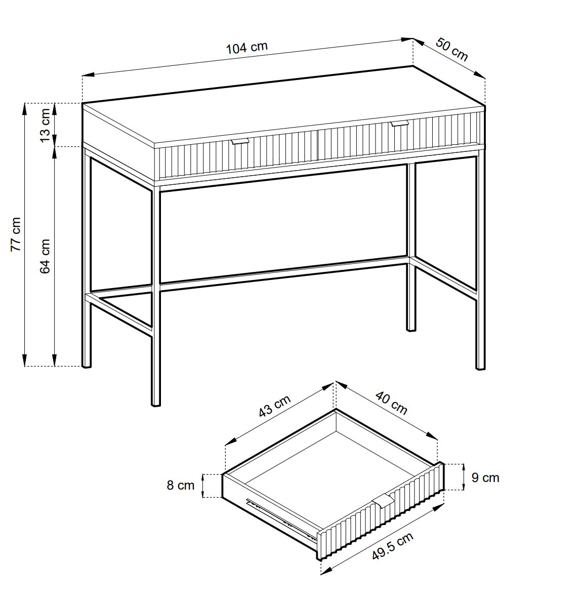 Стіл туалетний Perfect Home Нова / Nova з 2 шухлядами та золотими ніжками T104 Лабрадор