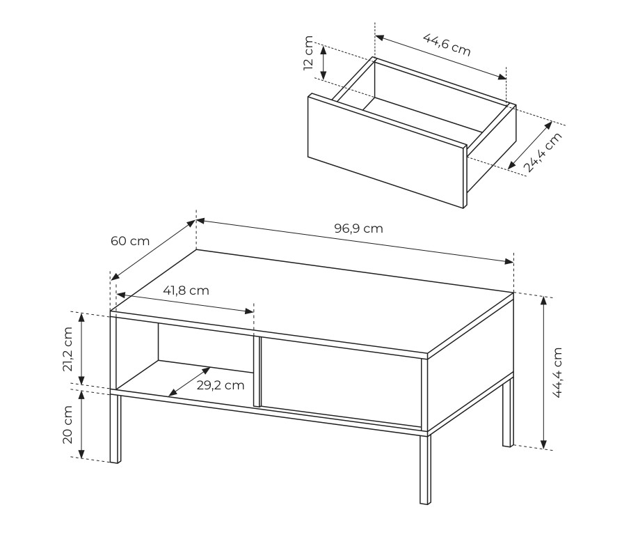 Стіл Tetra light Double чорний метал/чорний ДСП (текстура)