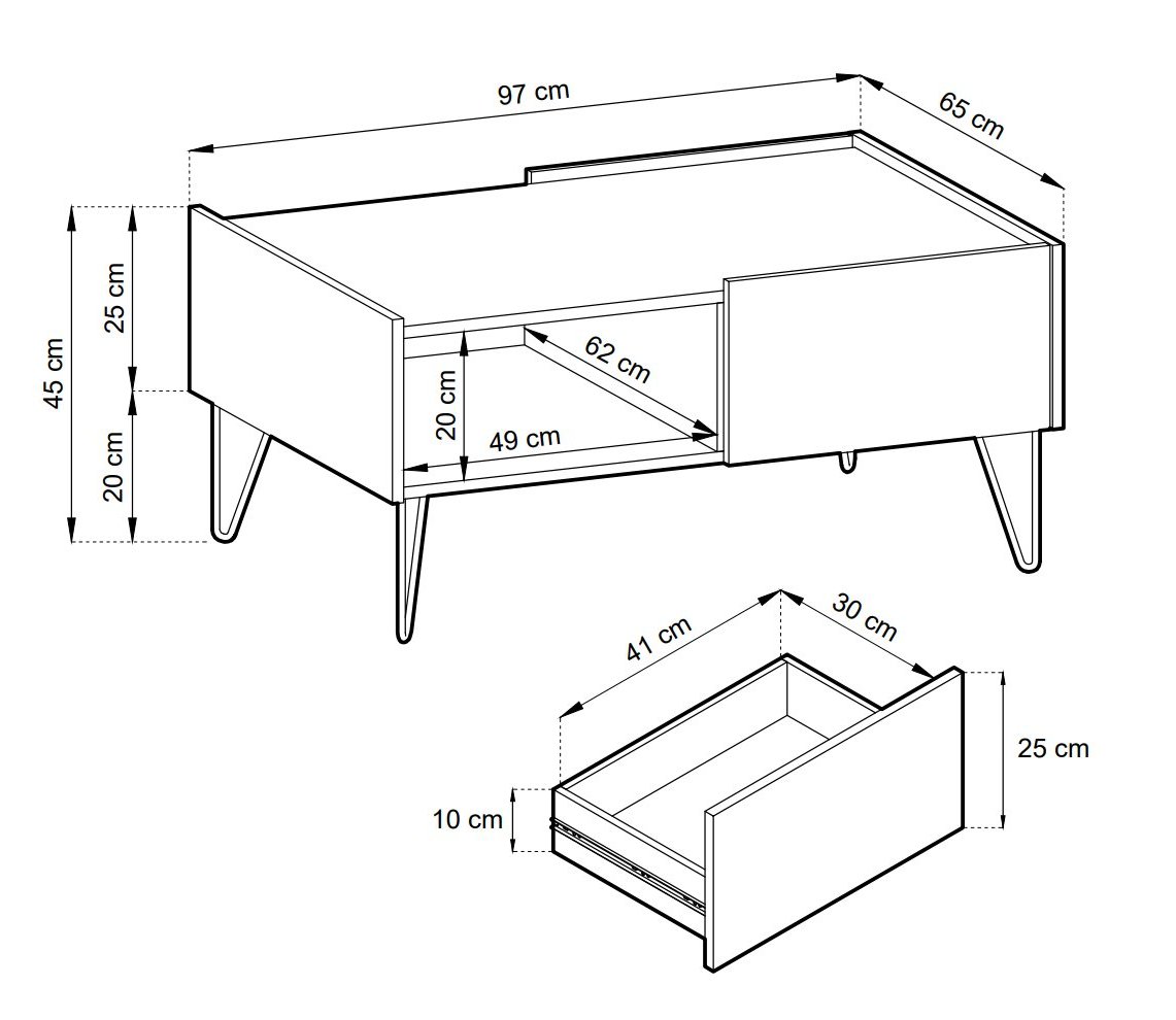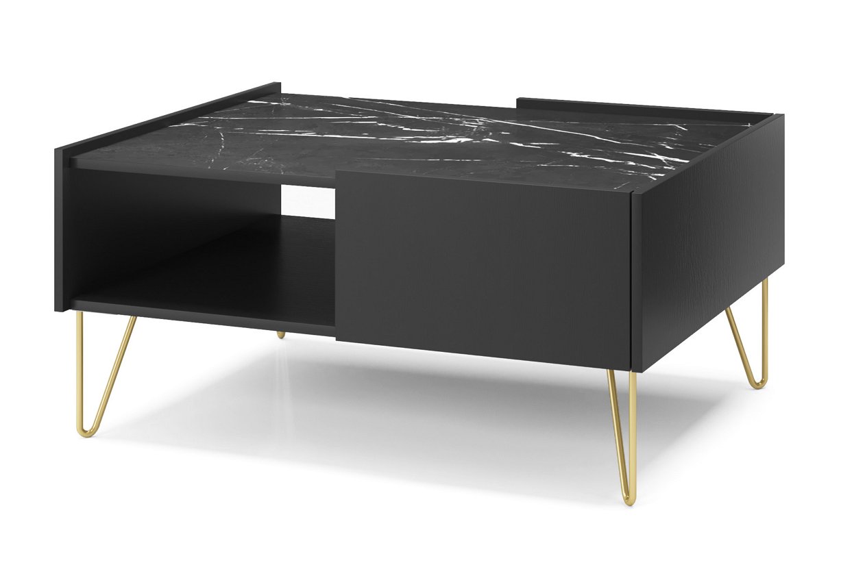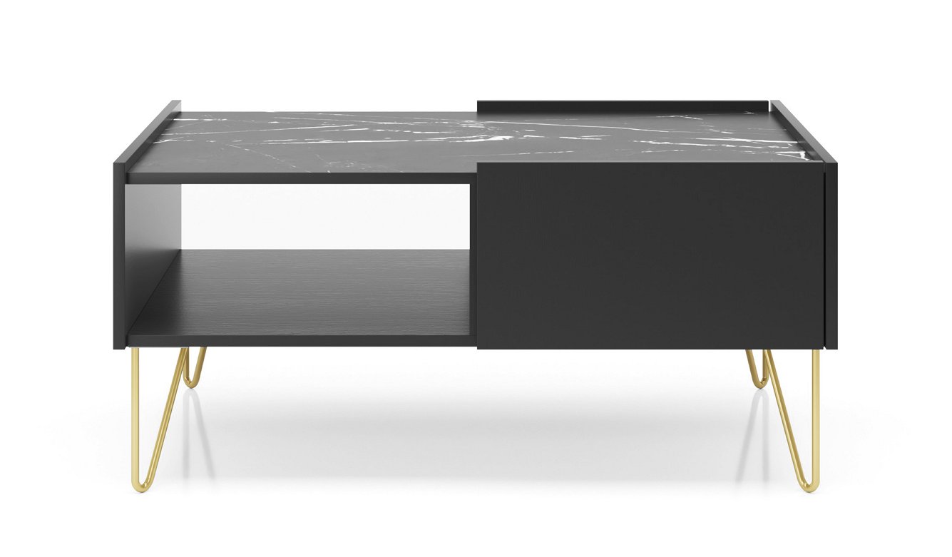 Стіл журнальний Perfect Home Гармоні / Harmony з 2 ящиками та золотими ніжками L97 Чорний/чорний мармур роял