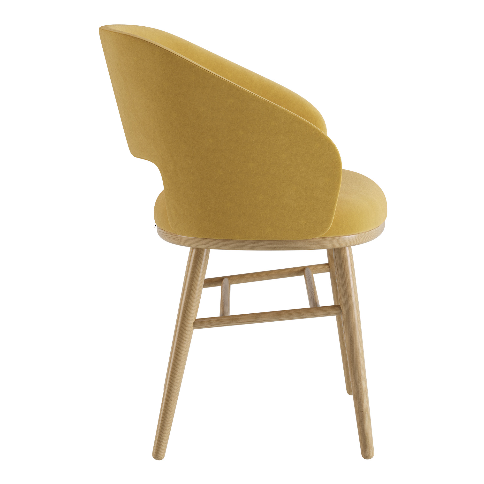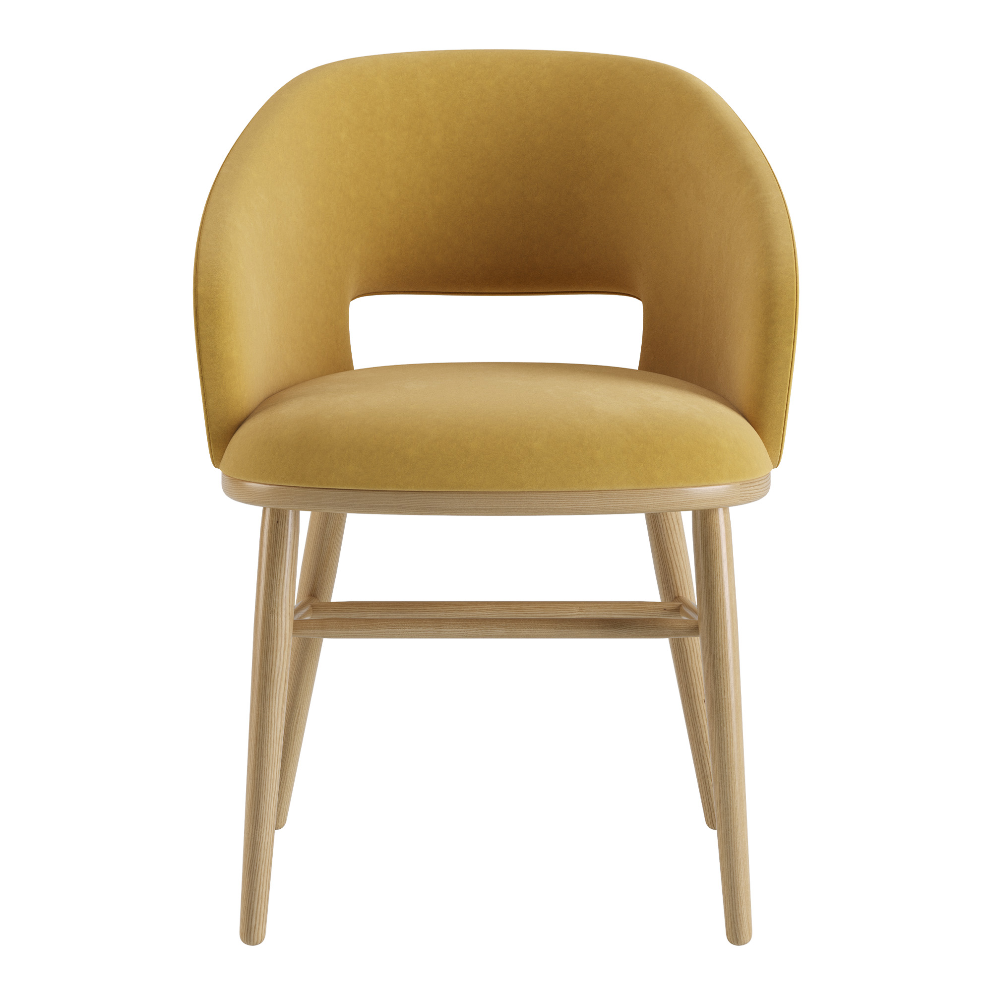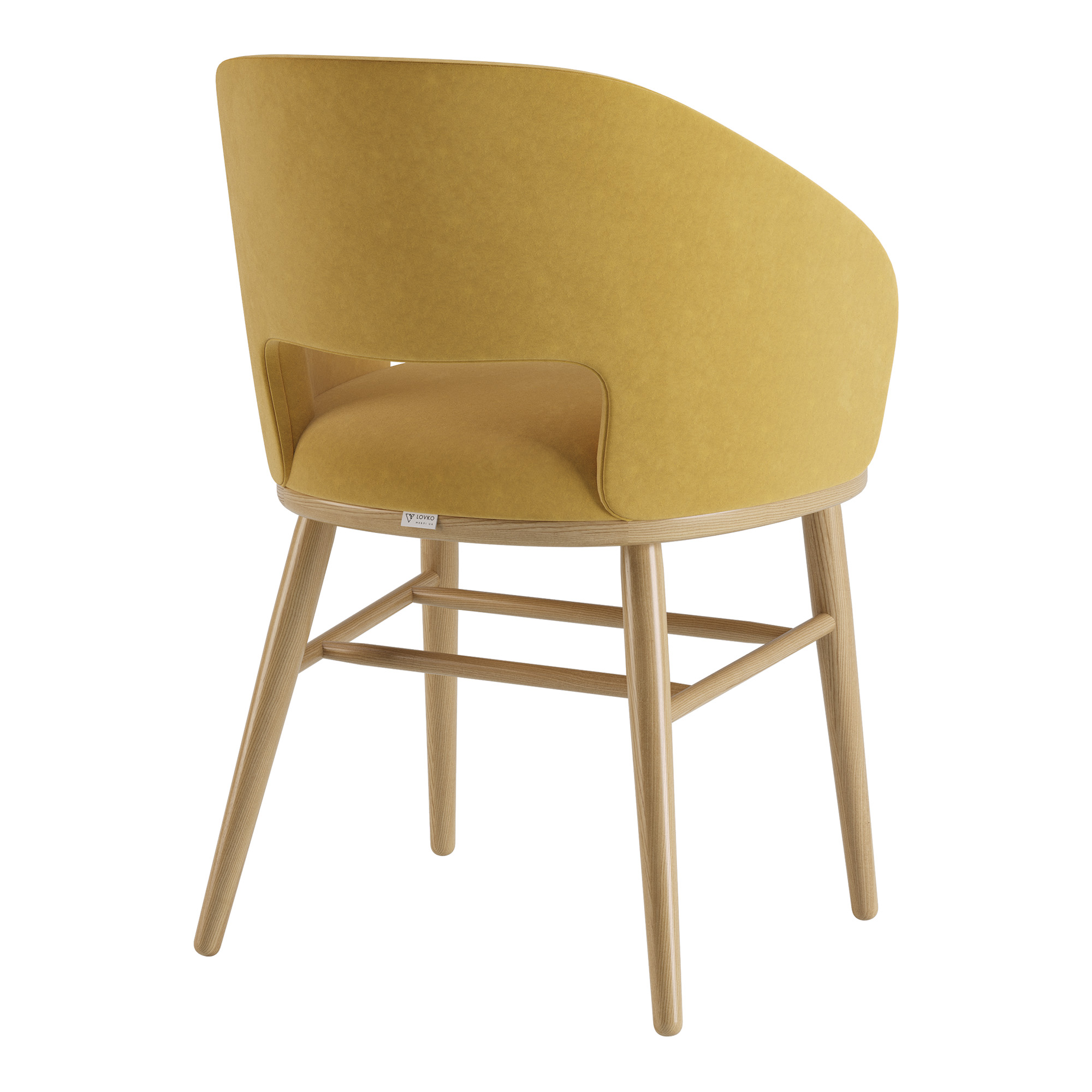 Стілець Dolphin — це поєднання м’якості форм і природної міцності деревини. Ергономічна спинка з характерним вирізом створює ефект легкості, водночас забезпечуючи комфортну підтримку під час сидіння. Каркас виготовлений із масиву ясеня, що гарантує довговічність та стабільність конструкції. М’яке сидіння та спинка обтягнуті якісною тканиною, приємною на дотик і стійкою до зносу.