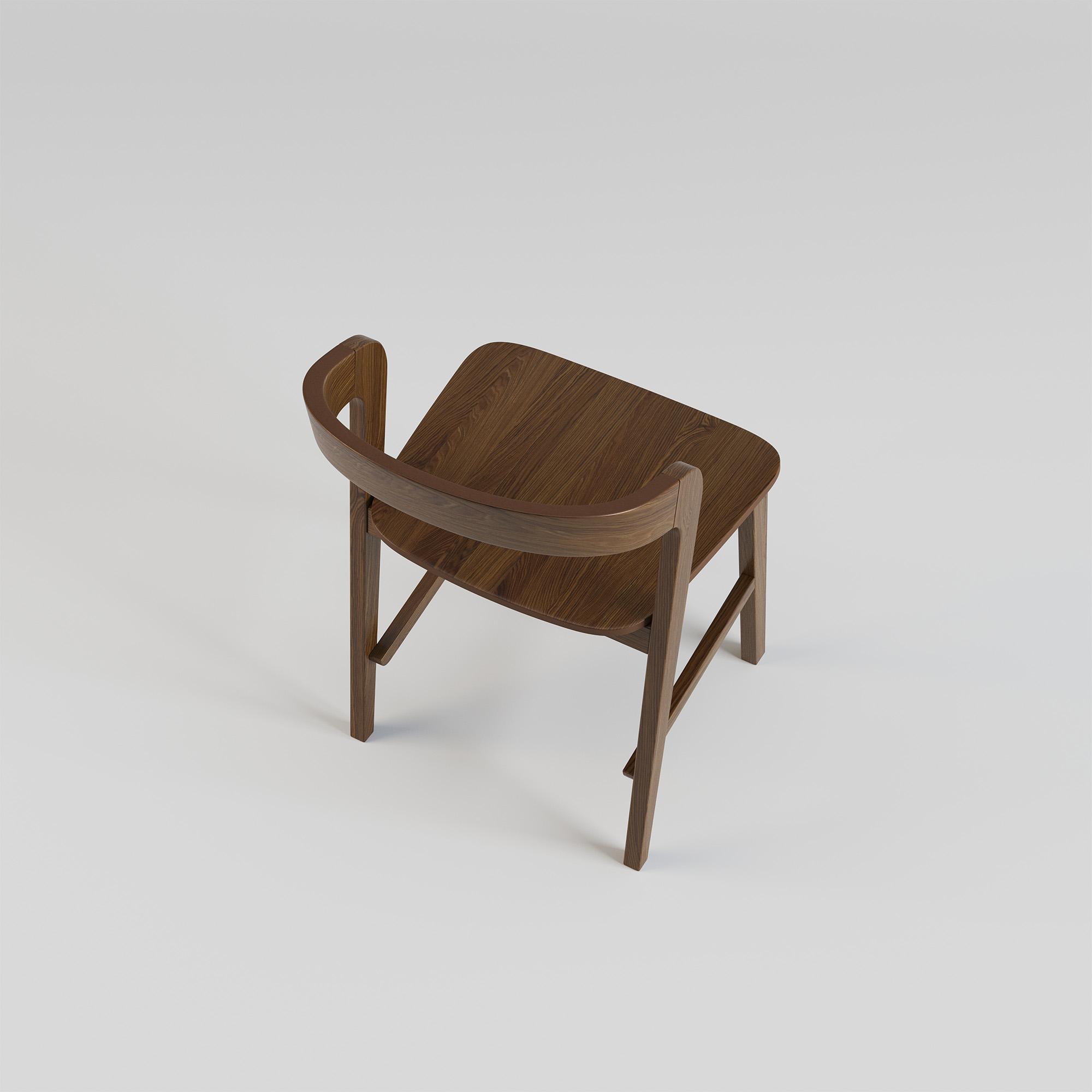 Спинка стільця виготовлена із гнутої фанери, шпонованої дубом. Це не лише надає структурної міцності, але і додає елегантності та гармонії дизайну. Гнута форма спинки стільця підтримує правильне положення спини, забезпечуючи оптимальний комфорт для довгих періодів сидіння.
