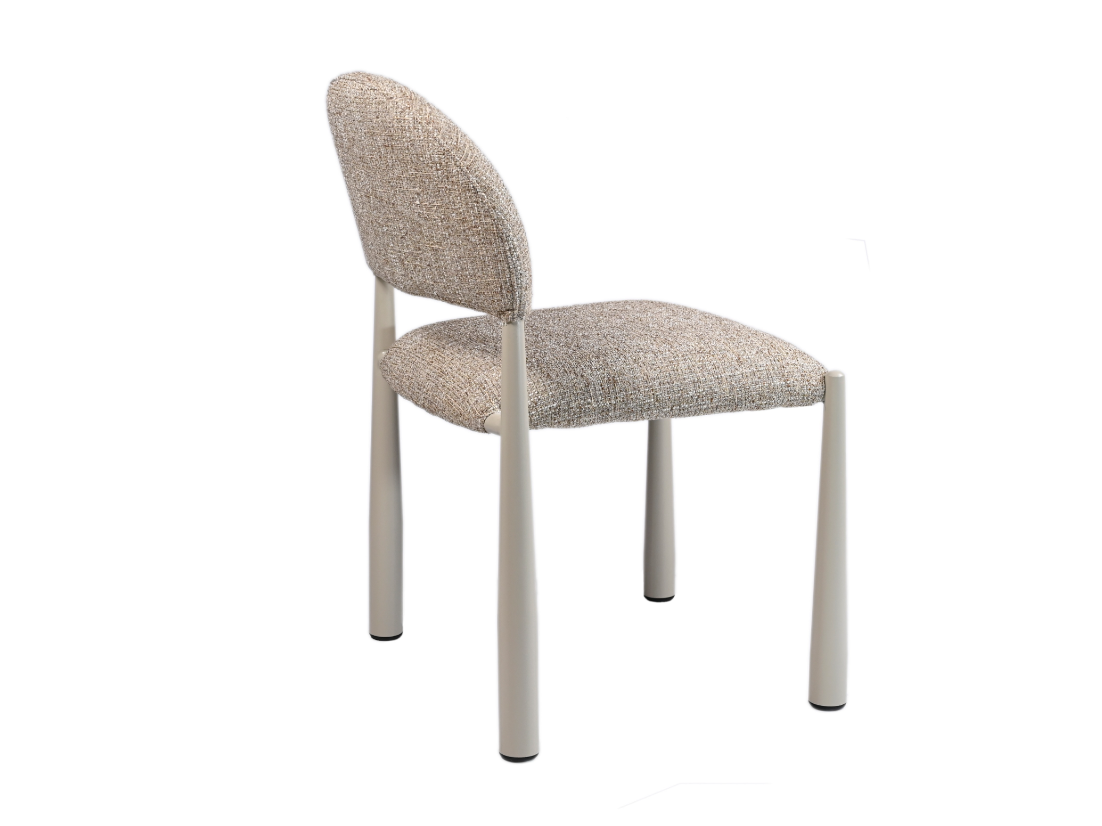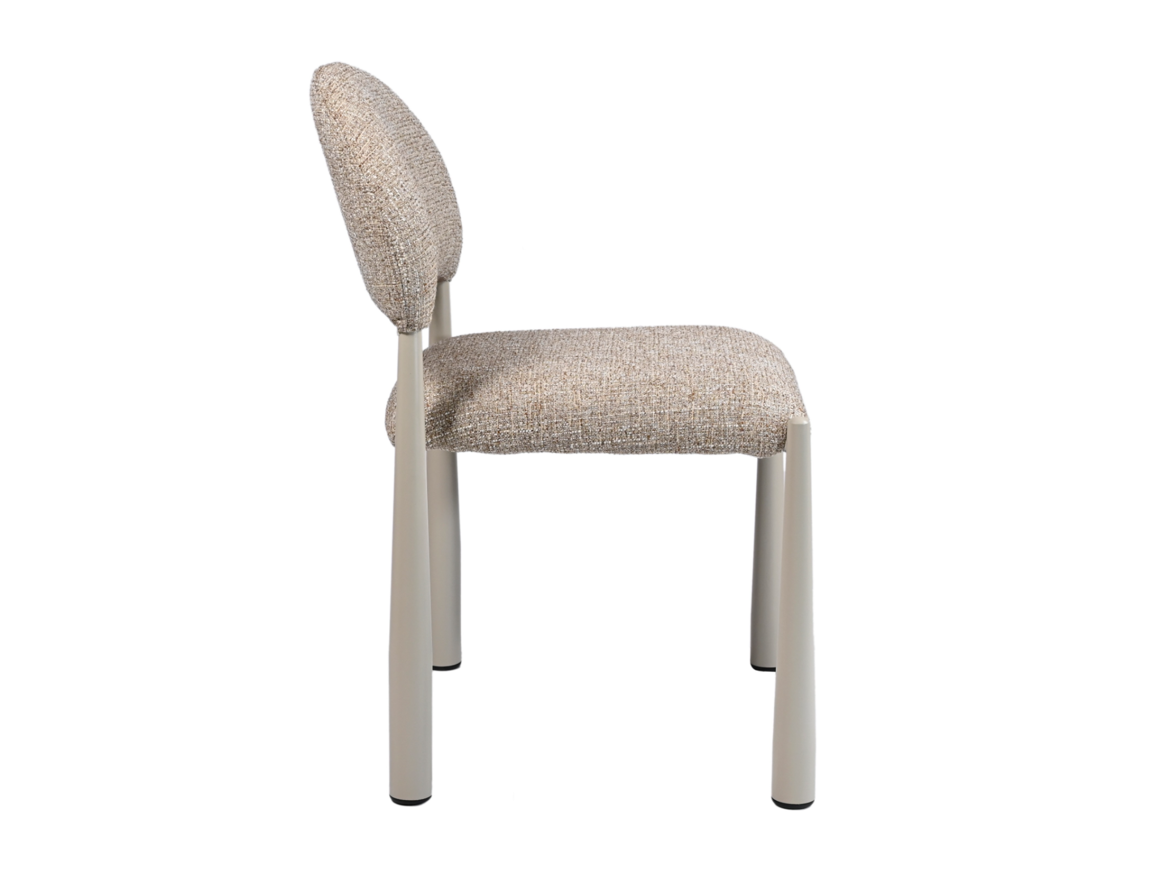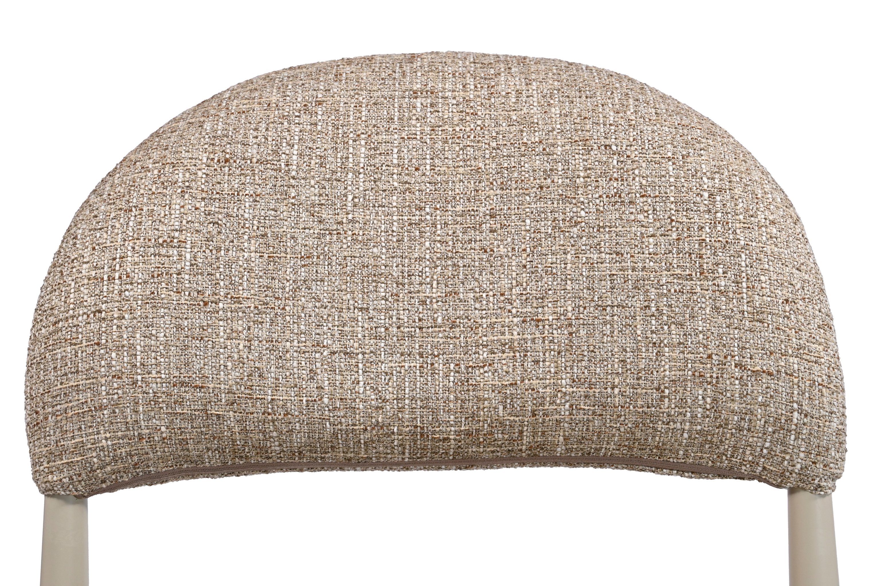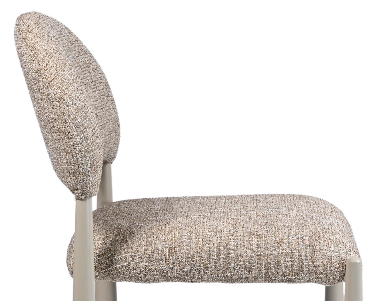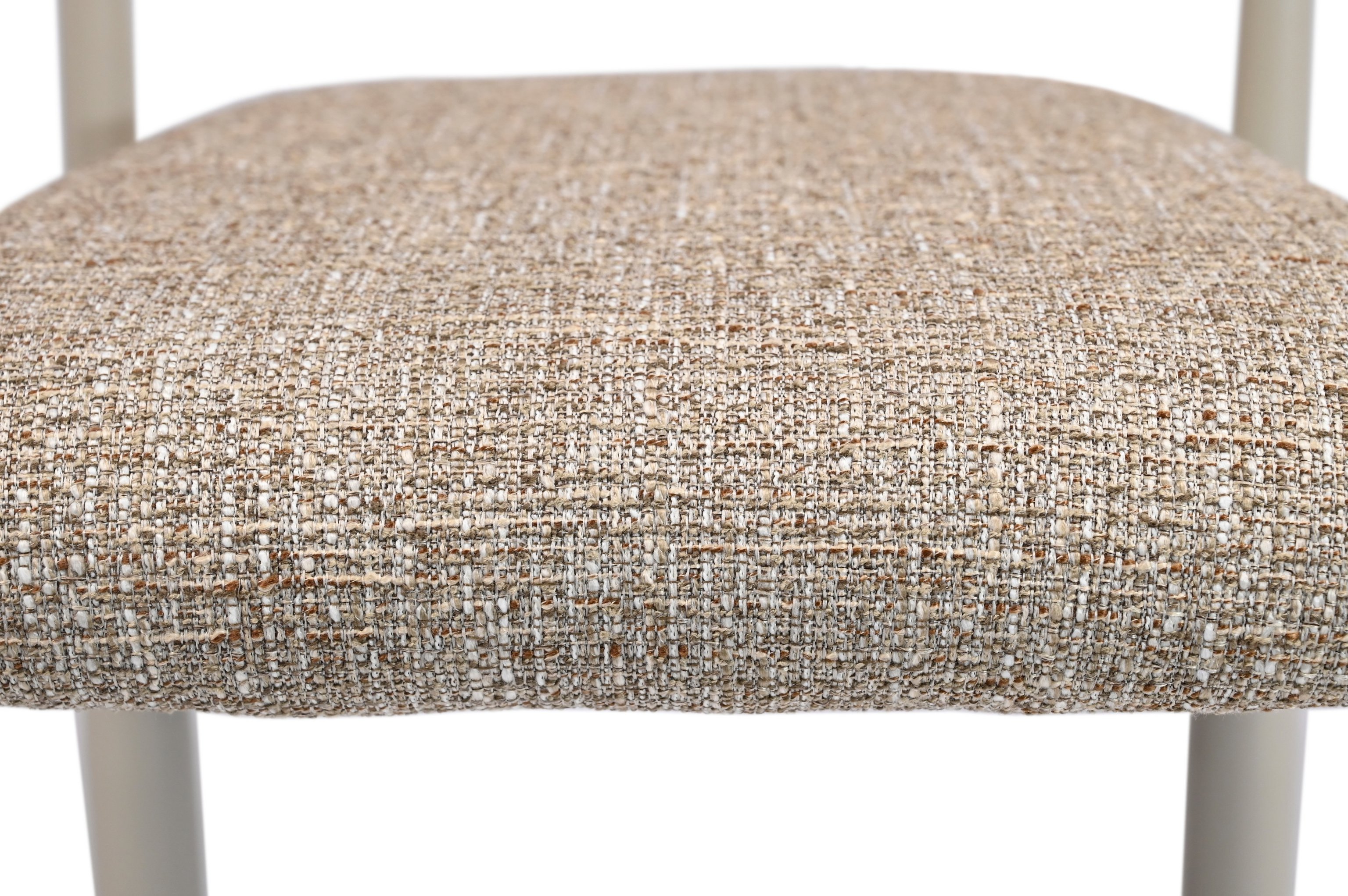 М’яка фактурна оббивка у теплому відтінку «мигдаль» створює затишну атмосферу, а кремові металеві ніжки додають легкості та елегантності.