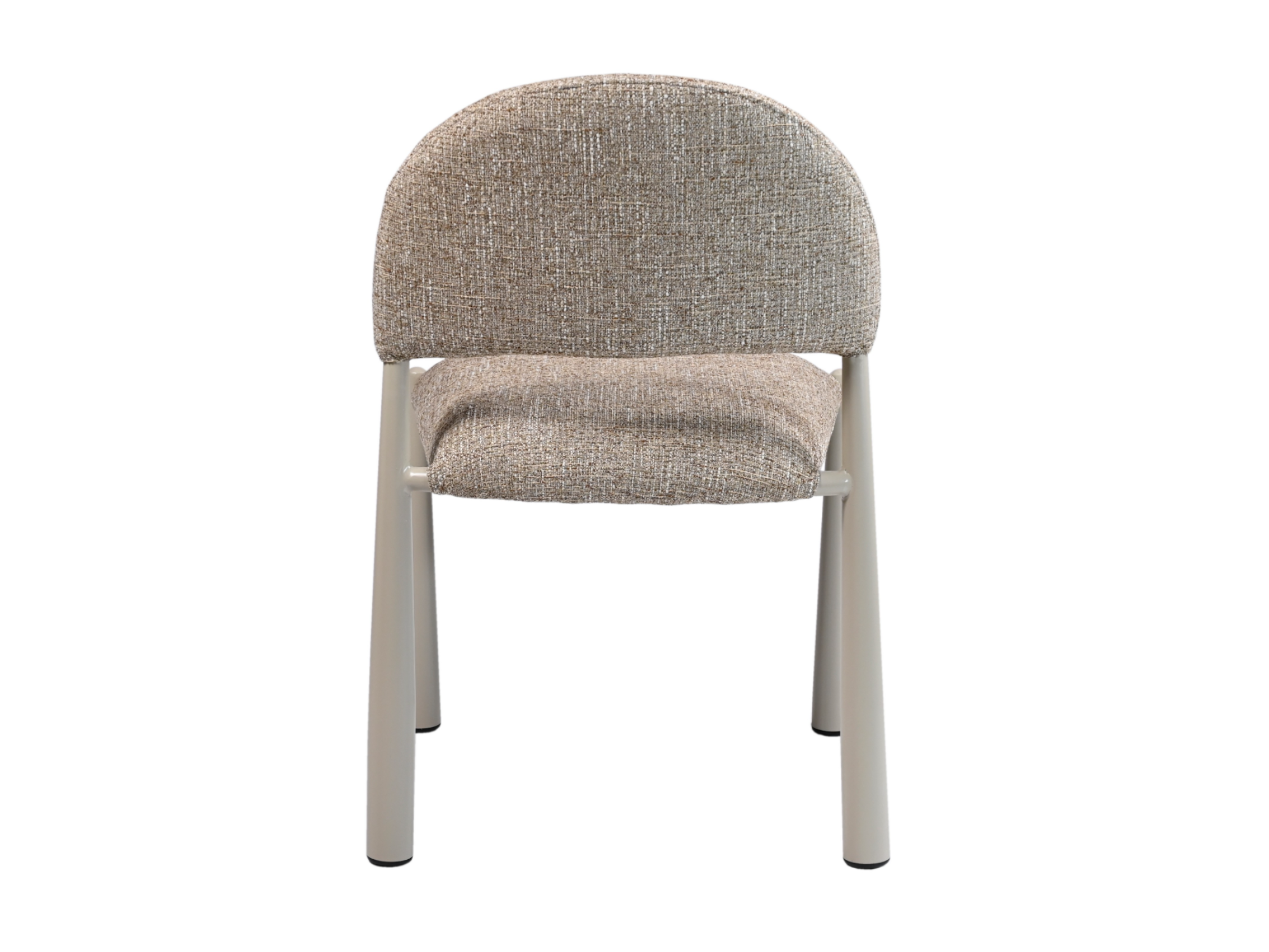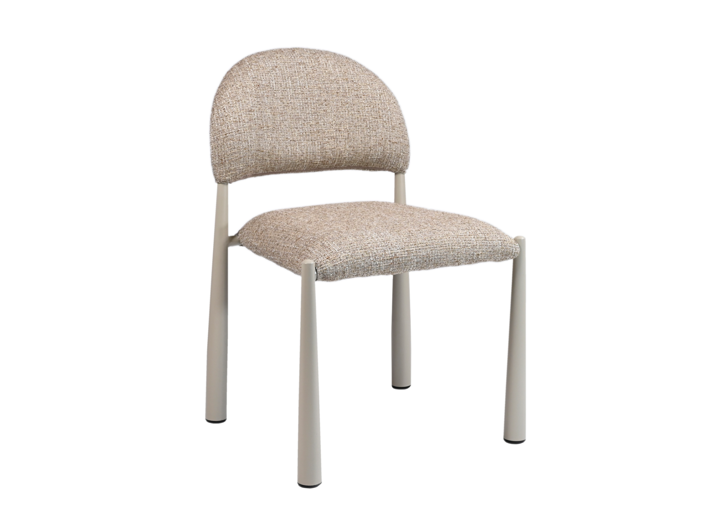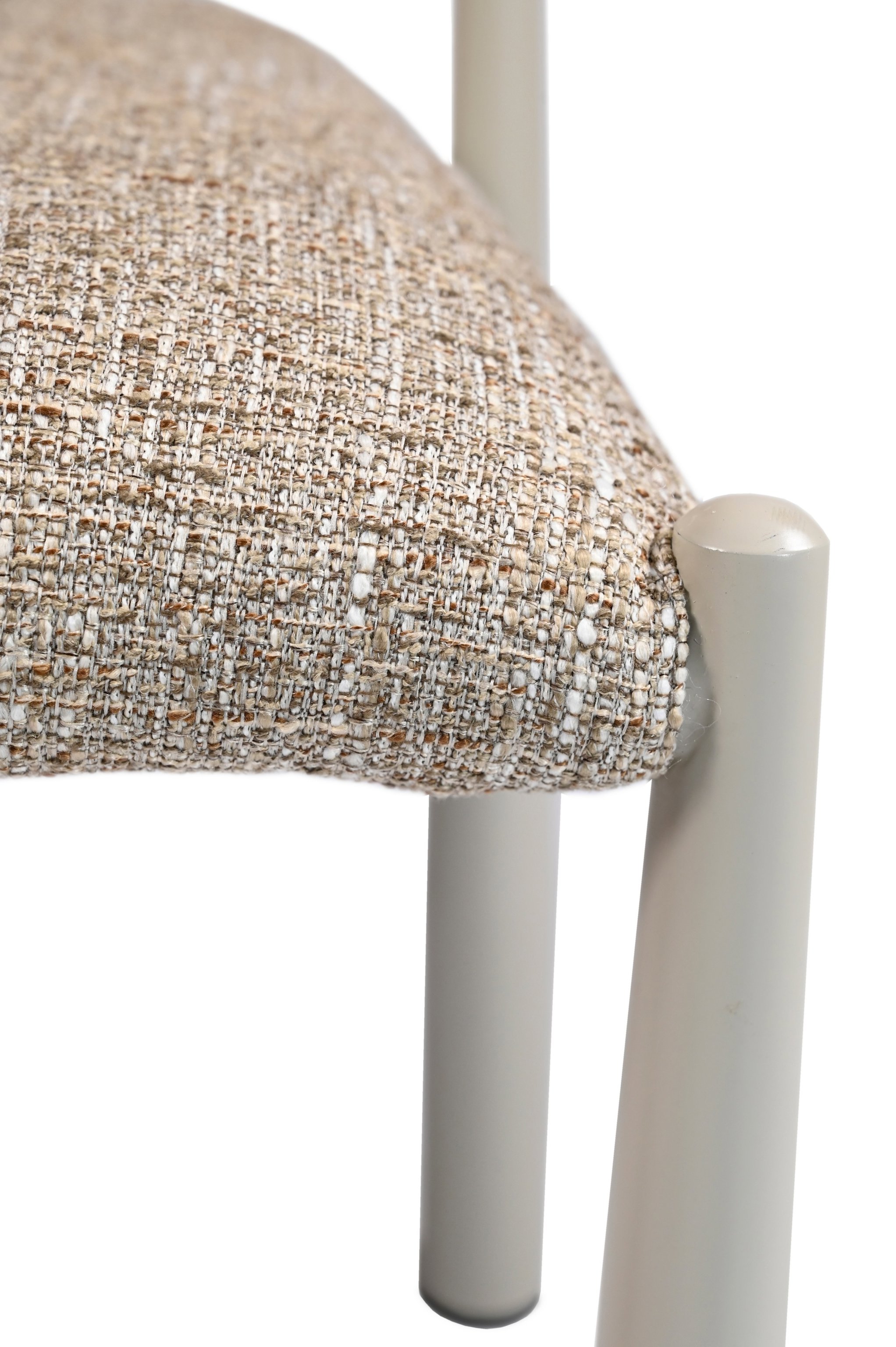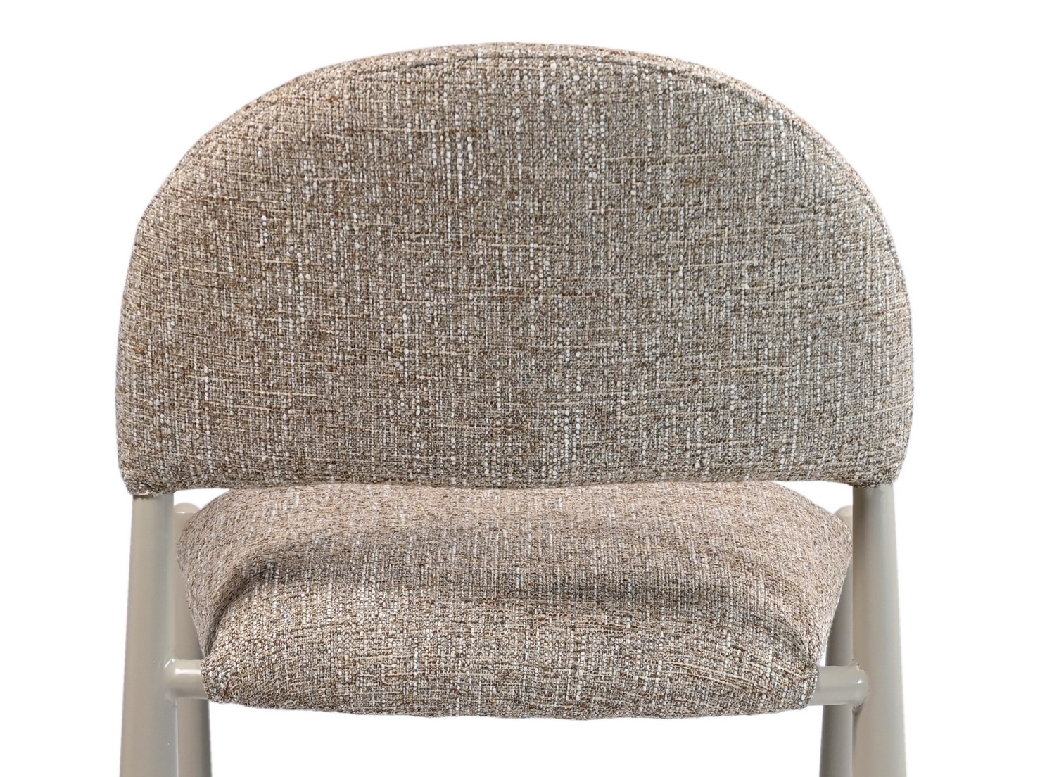 М’яка фактурна оббивка у теплому відтінку «мигдаль» створює затишну атмосферу, а кремові металеві ніжки додають легкості та елегантності.