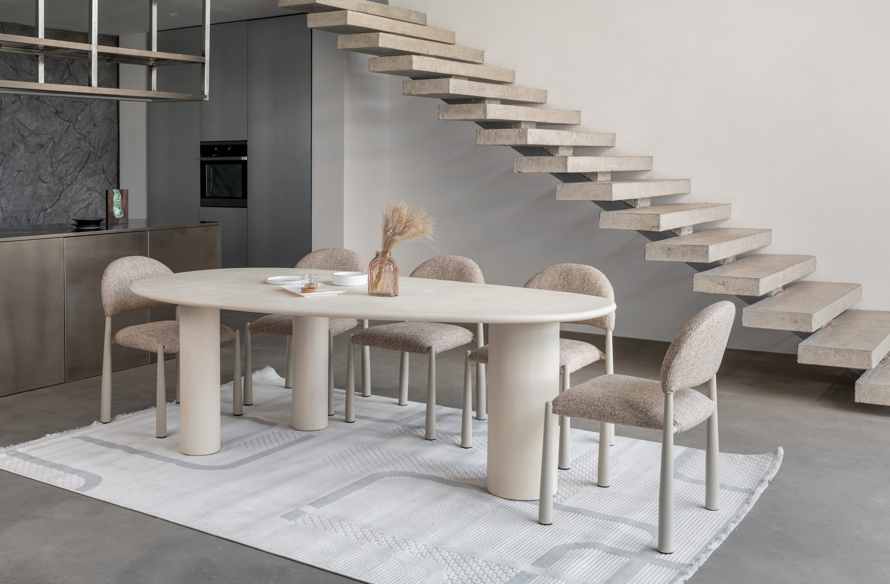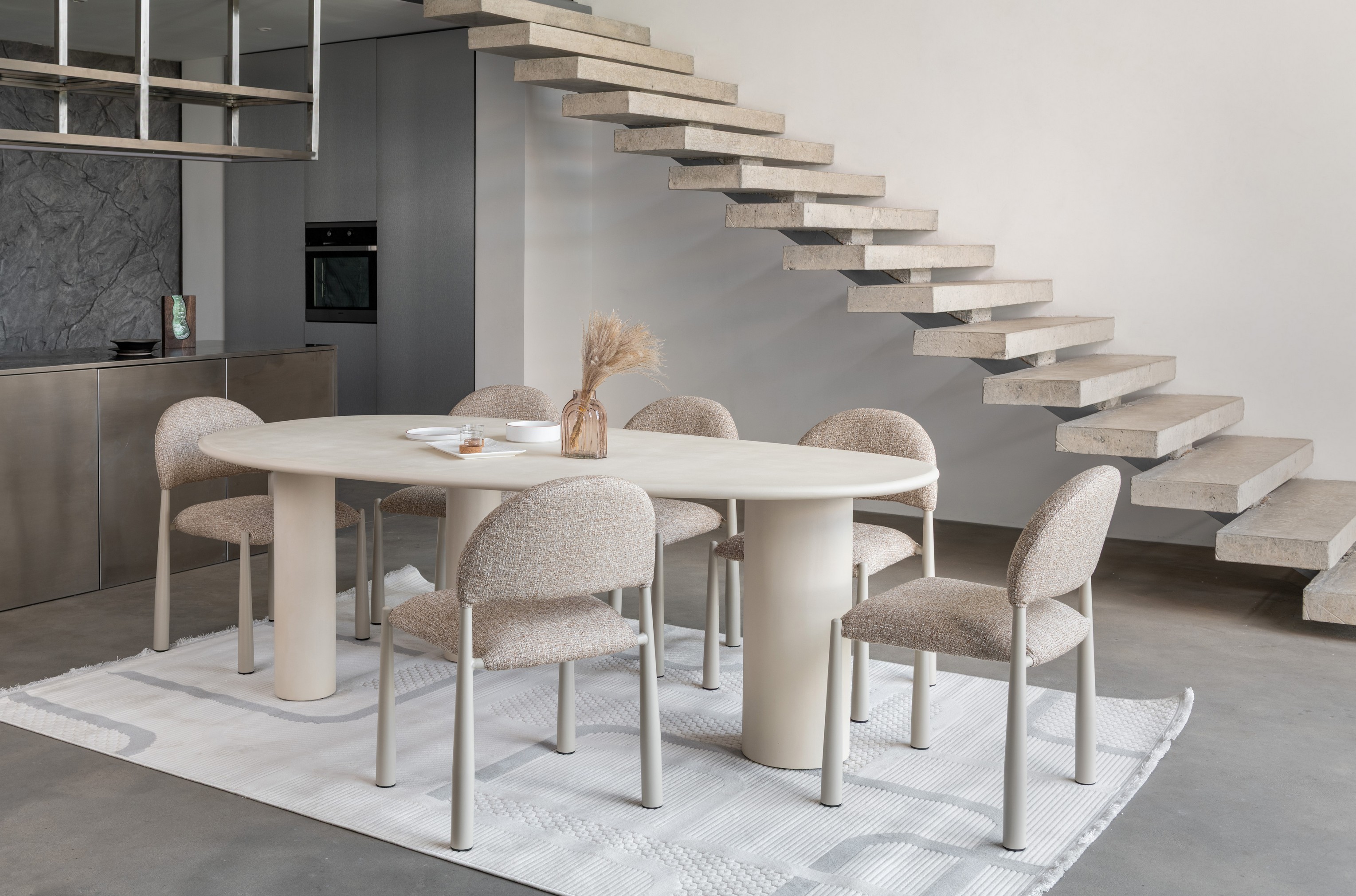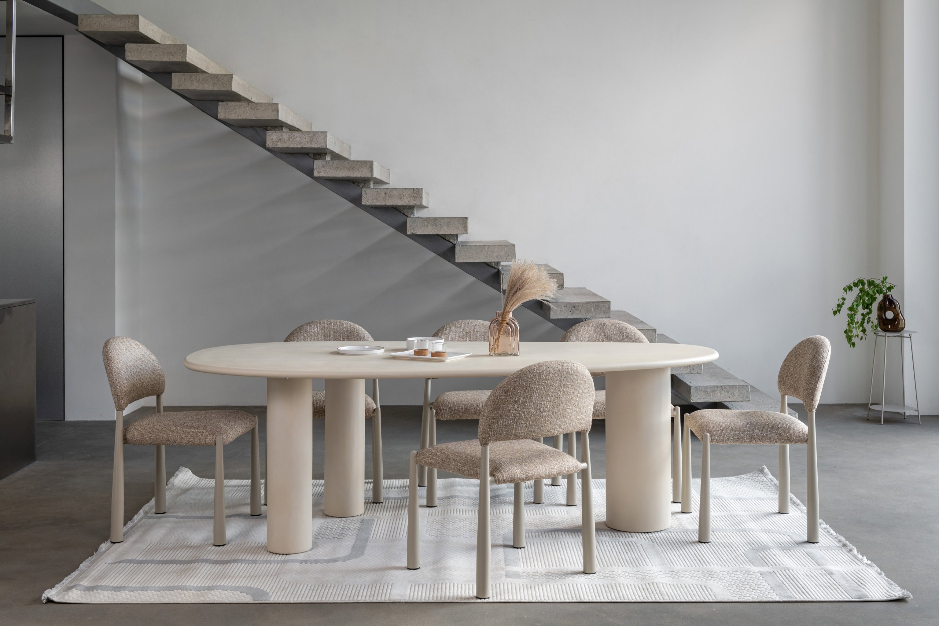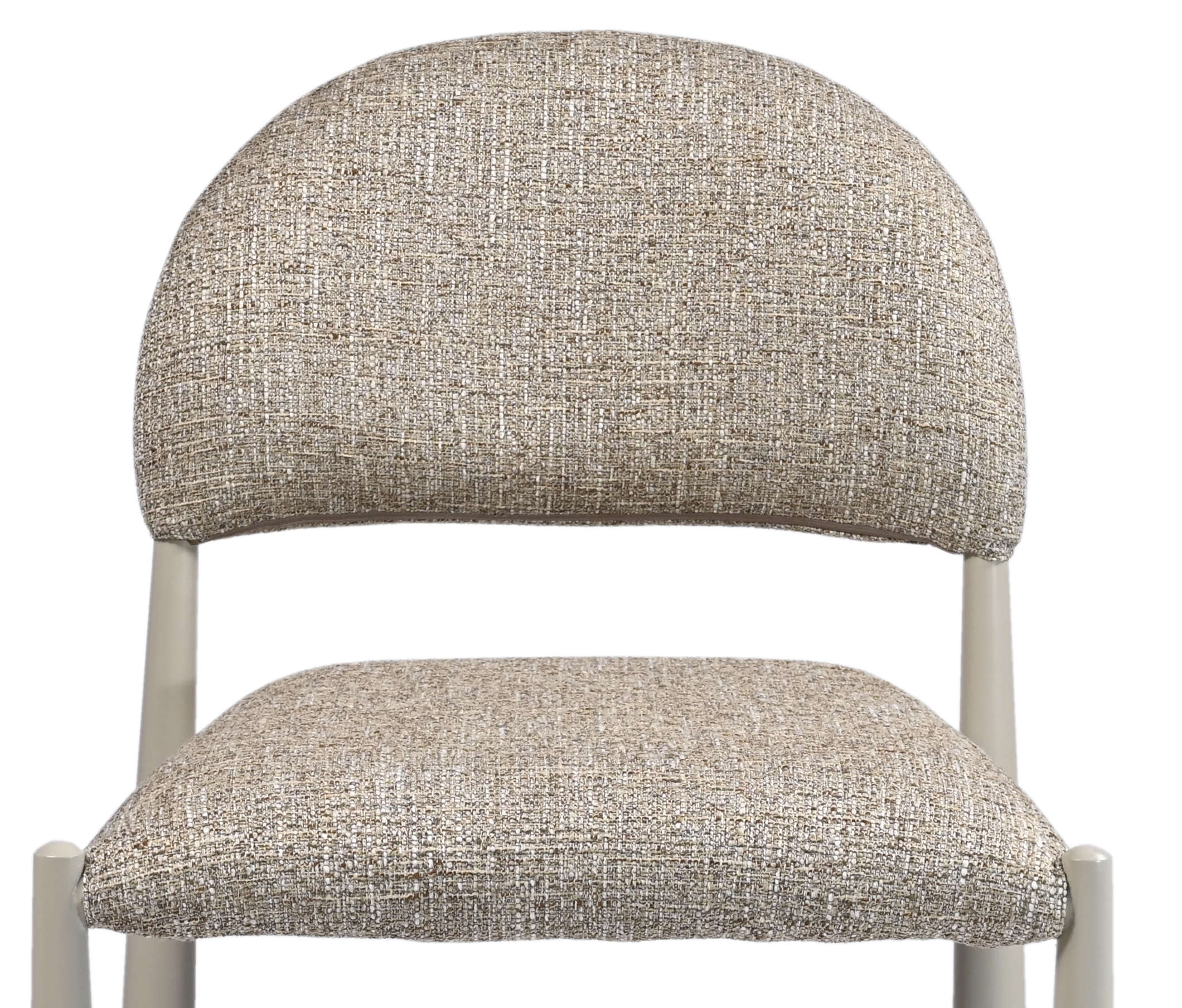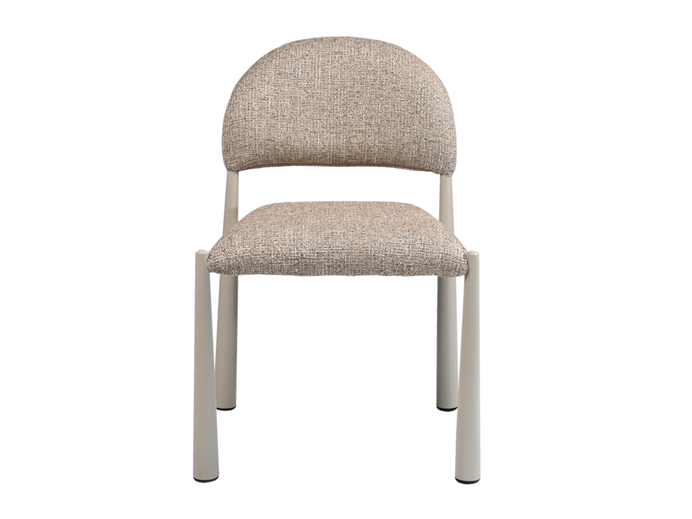 М’яка фактурна оббивка у теплому відтінку «мигдаль» створює затишну атмосферу, а кремові металеві ніжки додають легкості та елегантності.