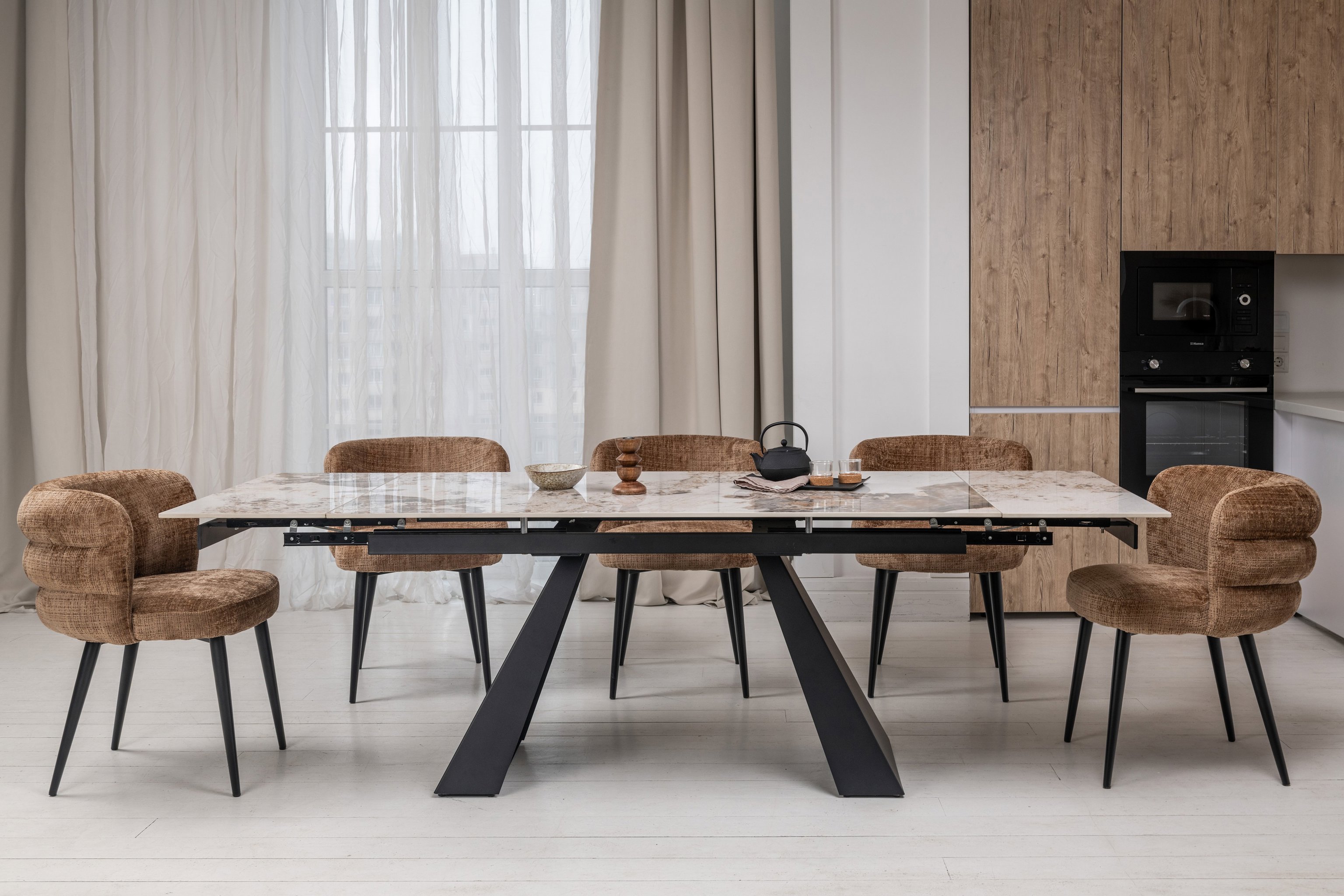 Фактурна поверхня твида бедфорд-корд не тільки візуально приваблива, але й приємна на дотик. Стілець з такою оббивкою подарує відчуття тепла та затишку, роблячи ваше перебування за ним комфортним.