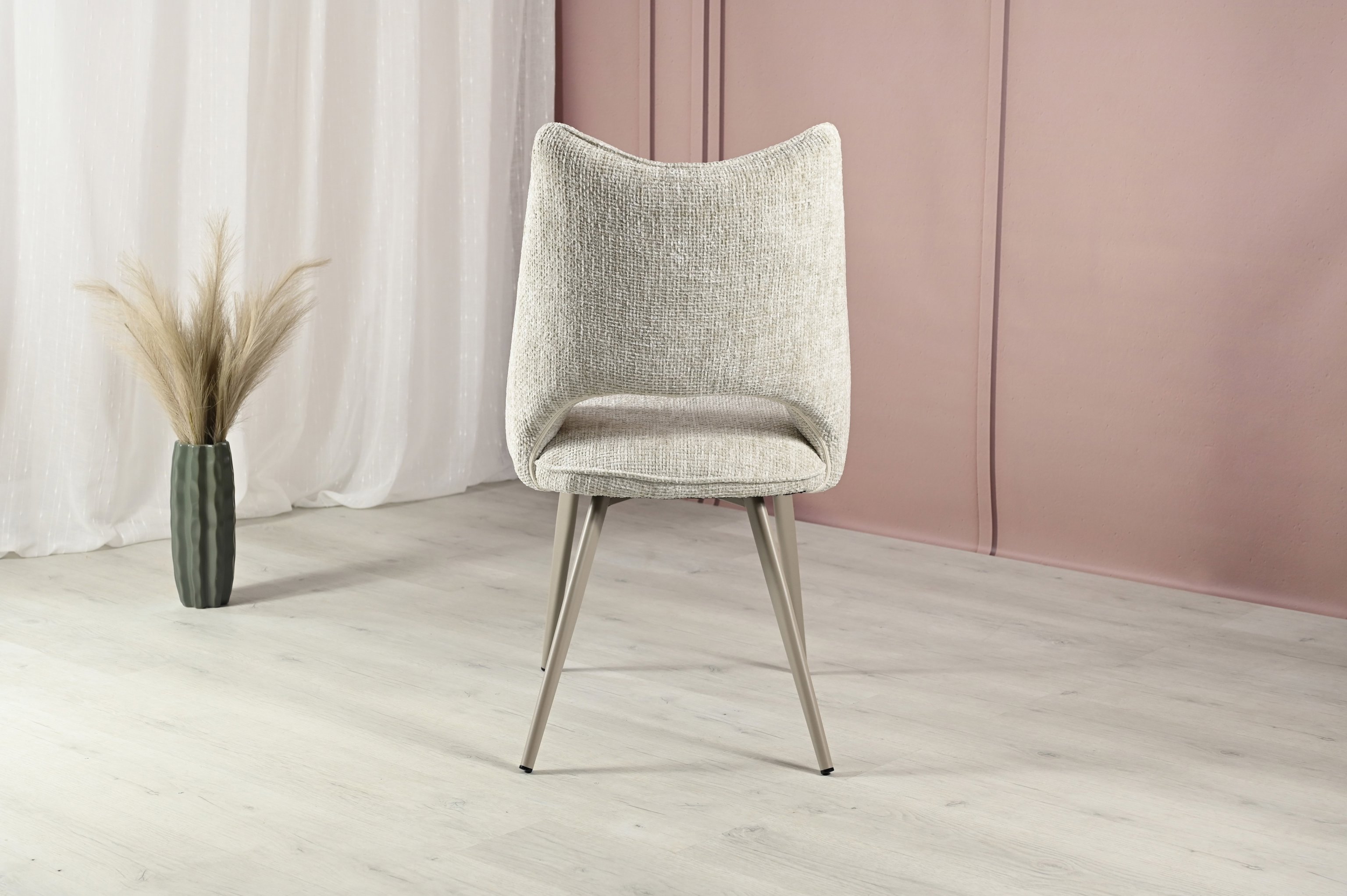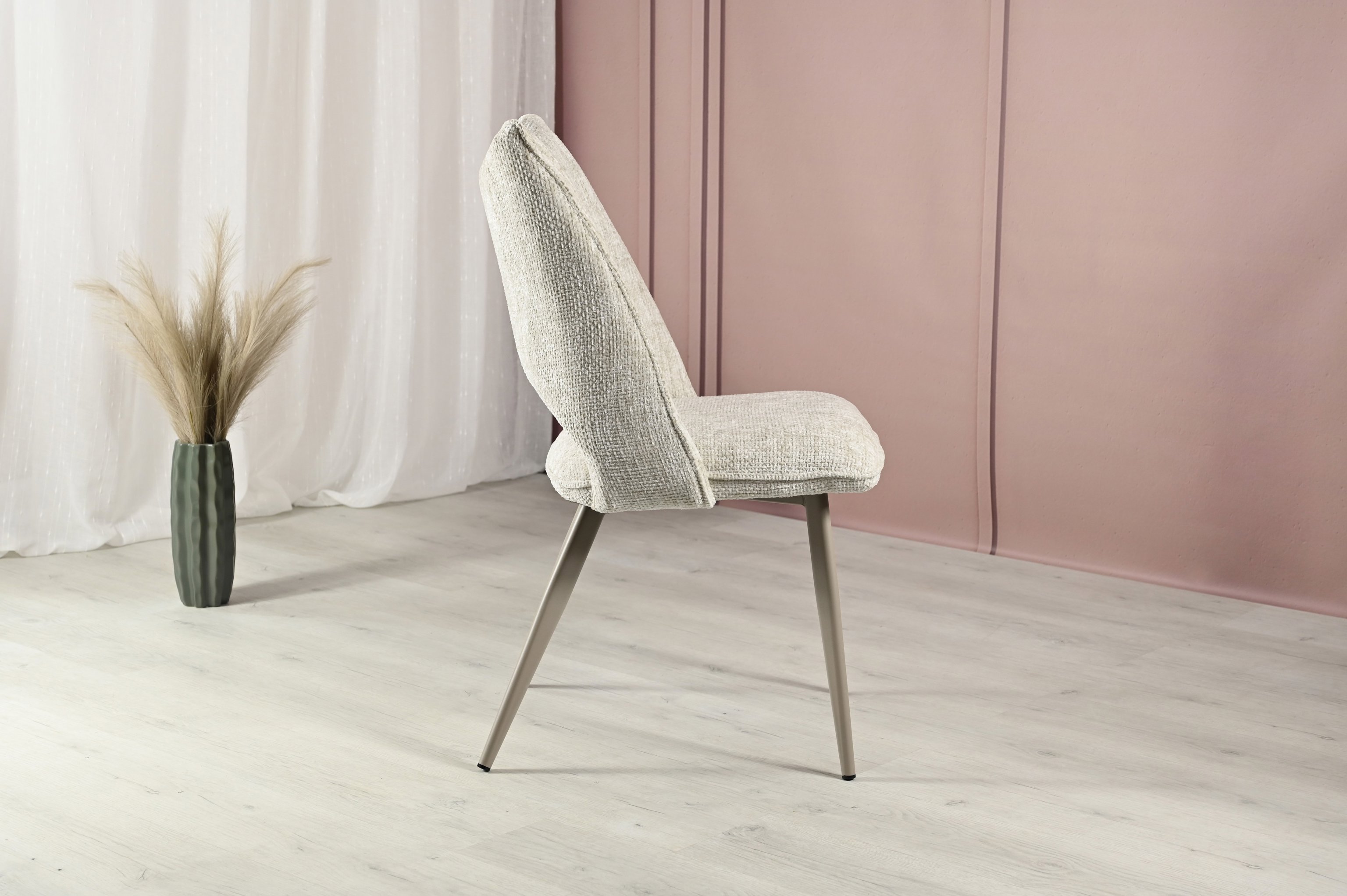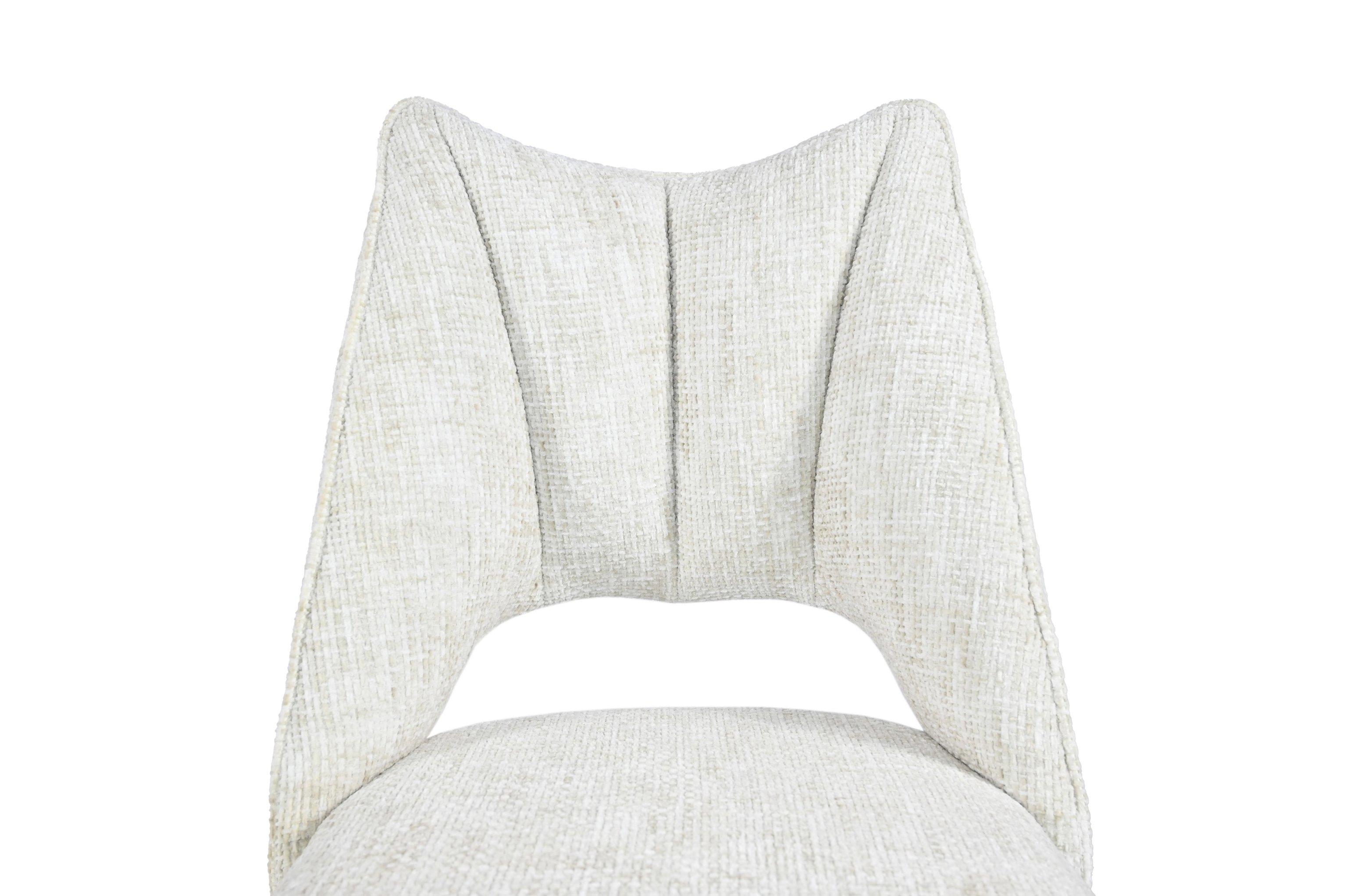 Оббивка з твида шамбрей в кольорі «тофу» додає меблям елегантності та сучасності. Цей стілець може стати центральним елементом вашого інтер'єру, підкреслюючи його стиль і створюючи враження вишуканості.