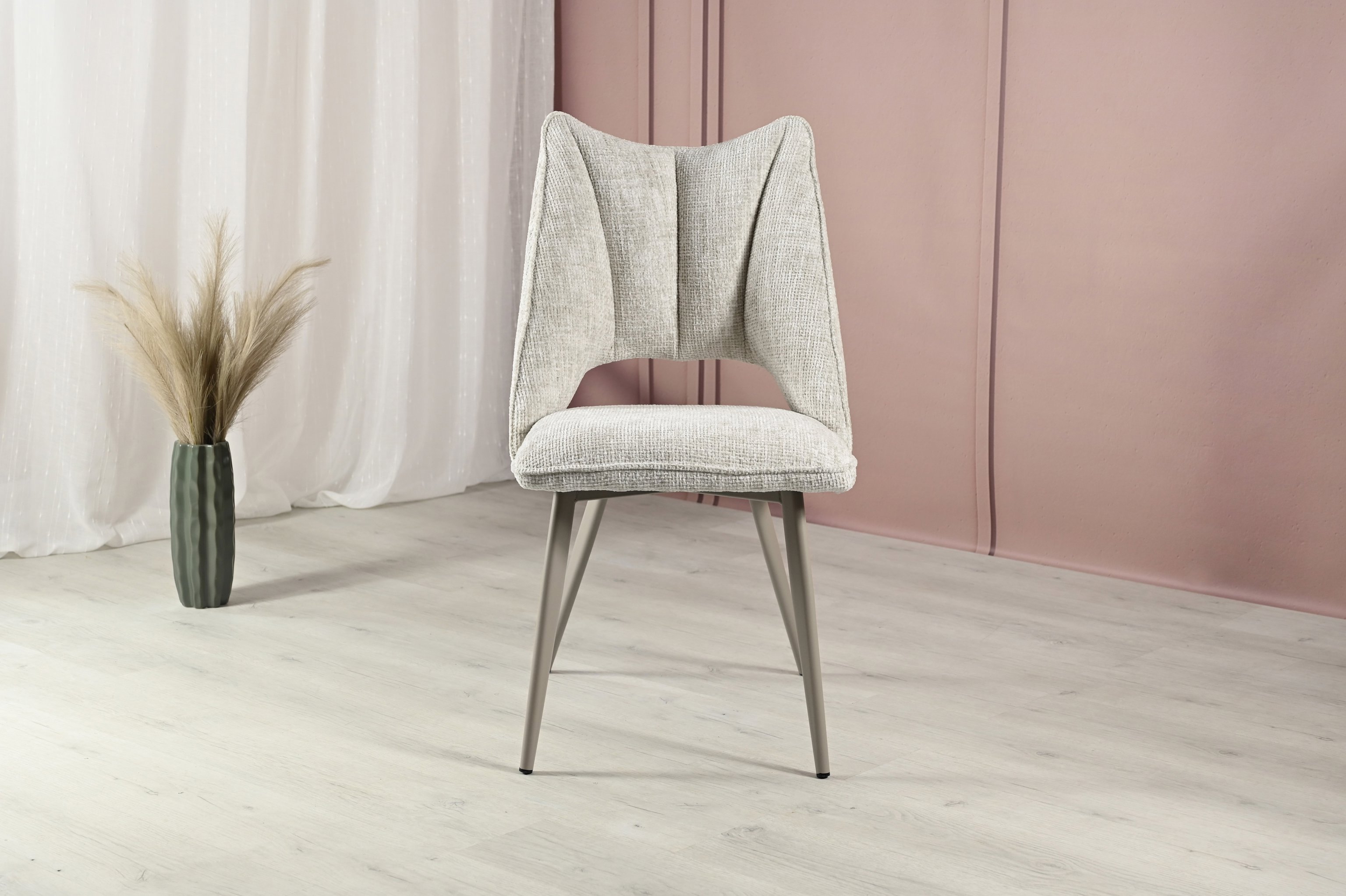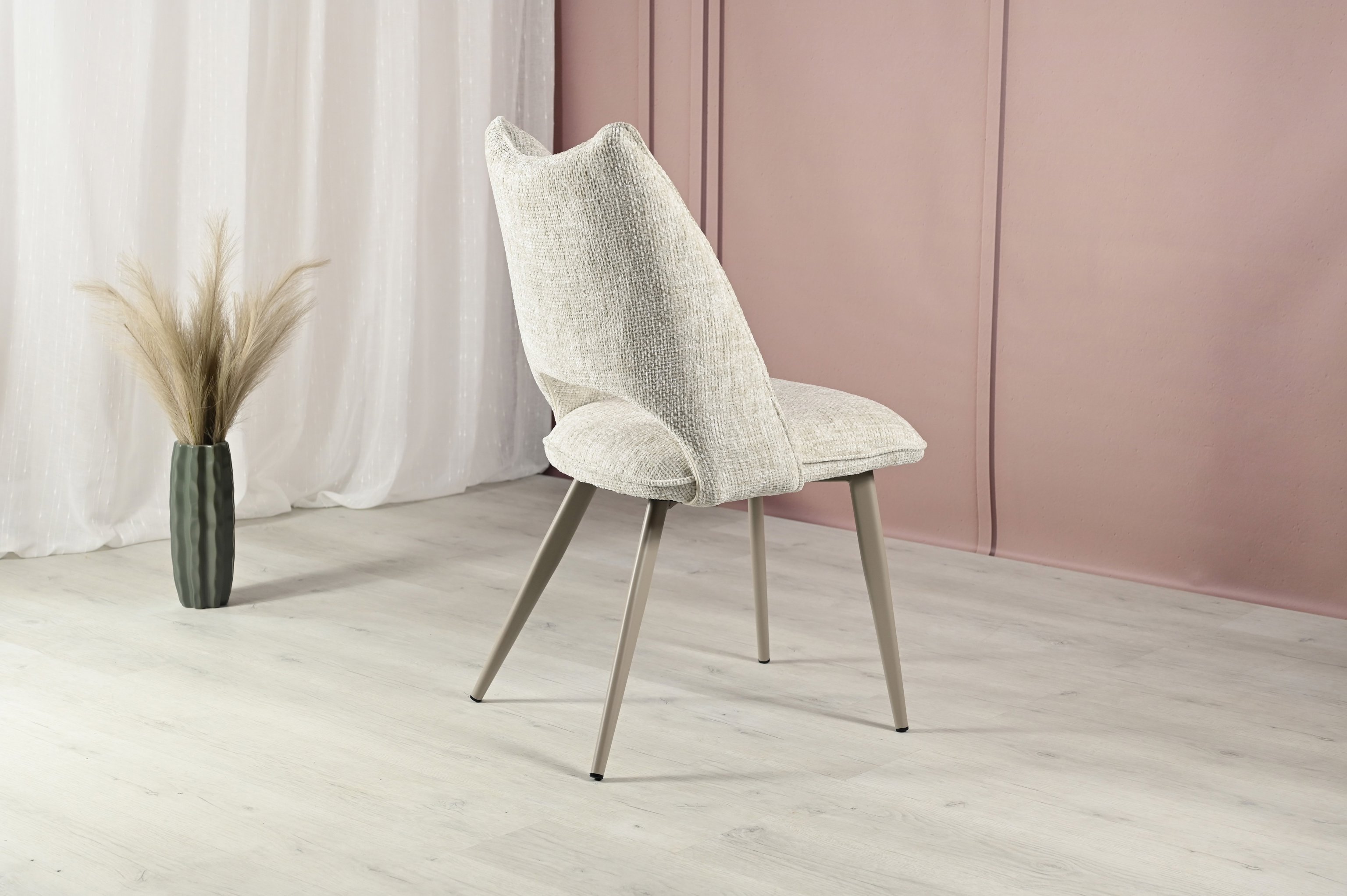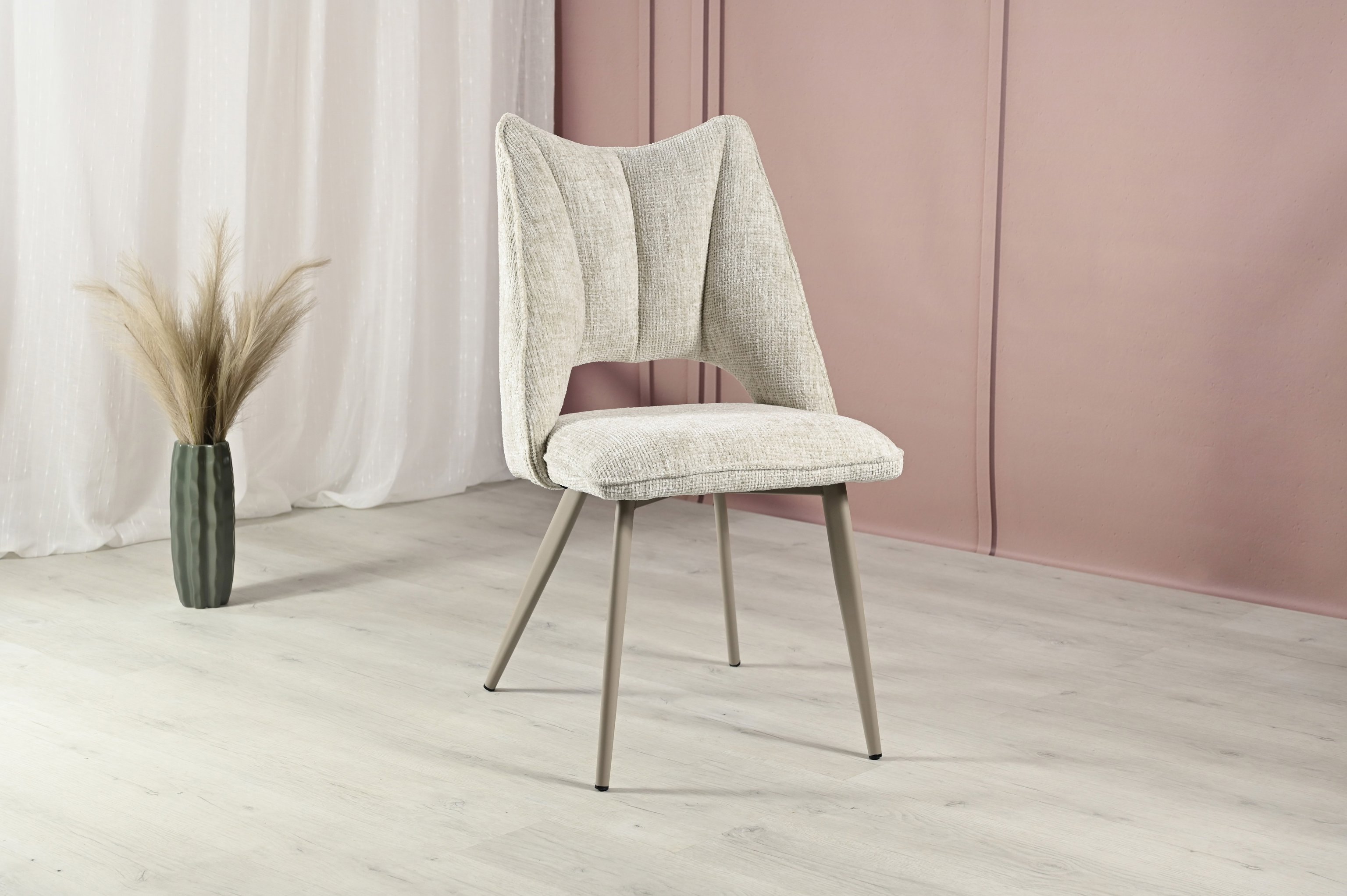 Оббивка з твида шамбрей в кольорі «тофу» додає меблям елегантності та сучасності. Цей стілець може стати центральним елементом вашого інтер'єру, підкреслюючи його стиль і створюючи враження вишуканості.
