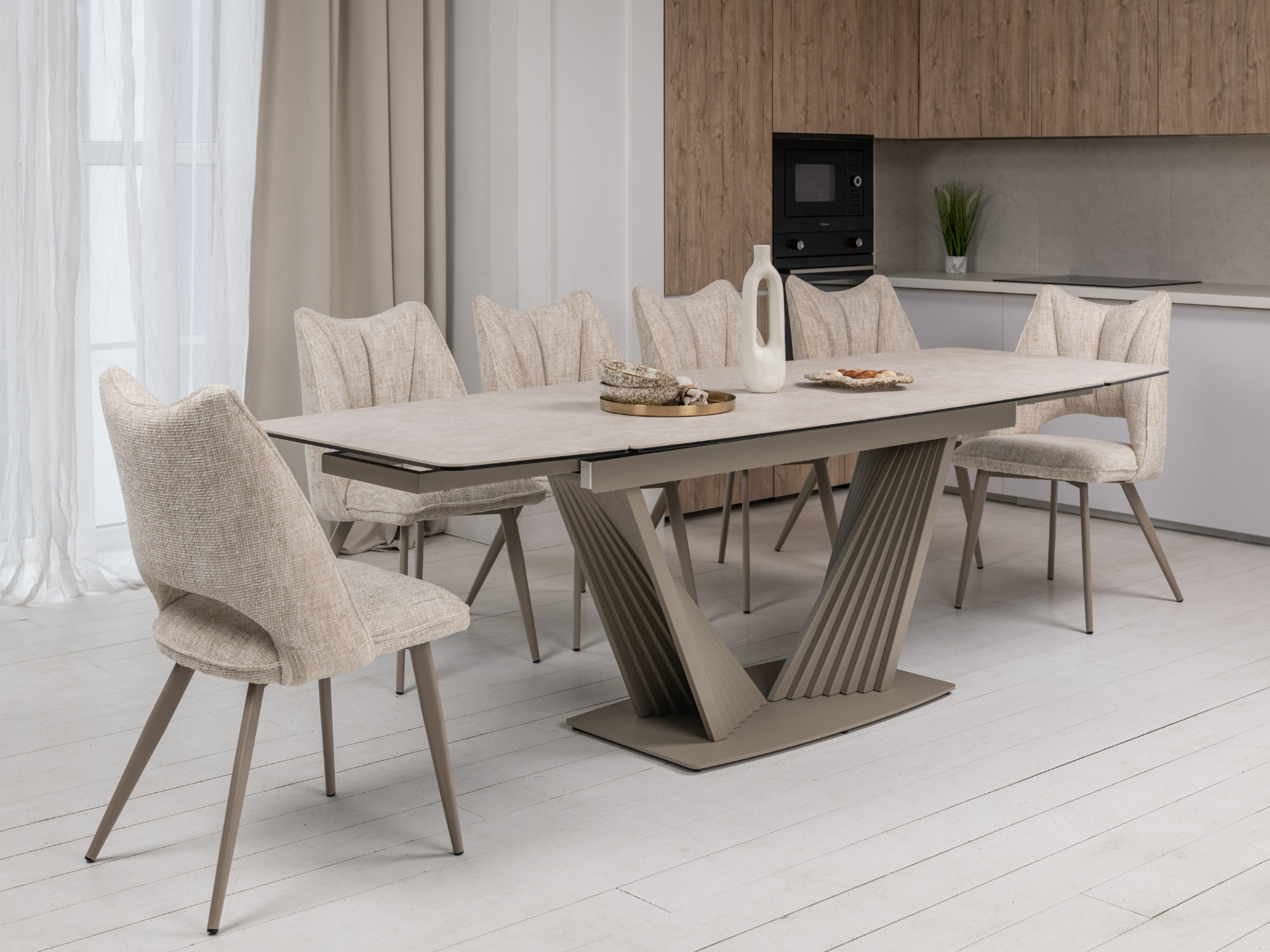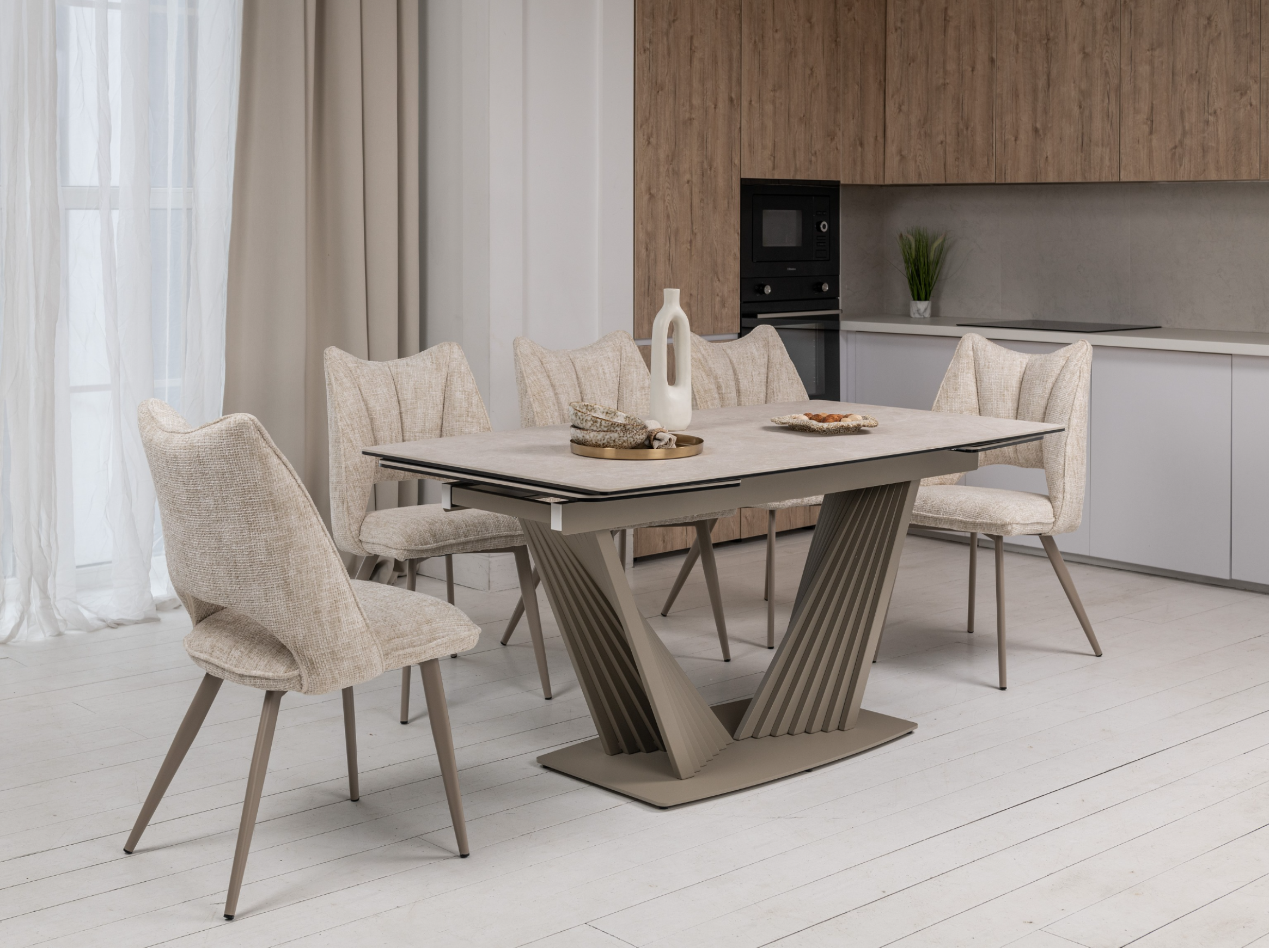 Колір «тофу» має м'який, нейтральний відтінок, який легко вписується в різні стилі декору. Він додає атмосферу затишку та спокою, що робить приміщення більш комфортним.