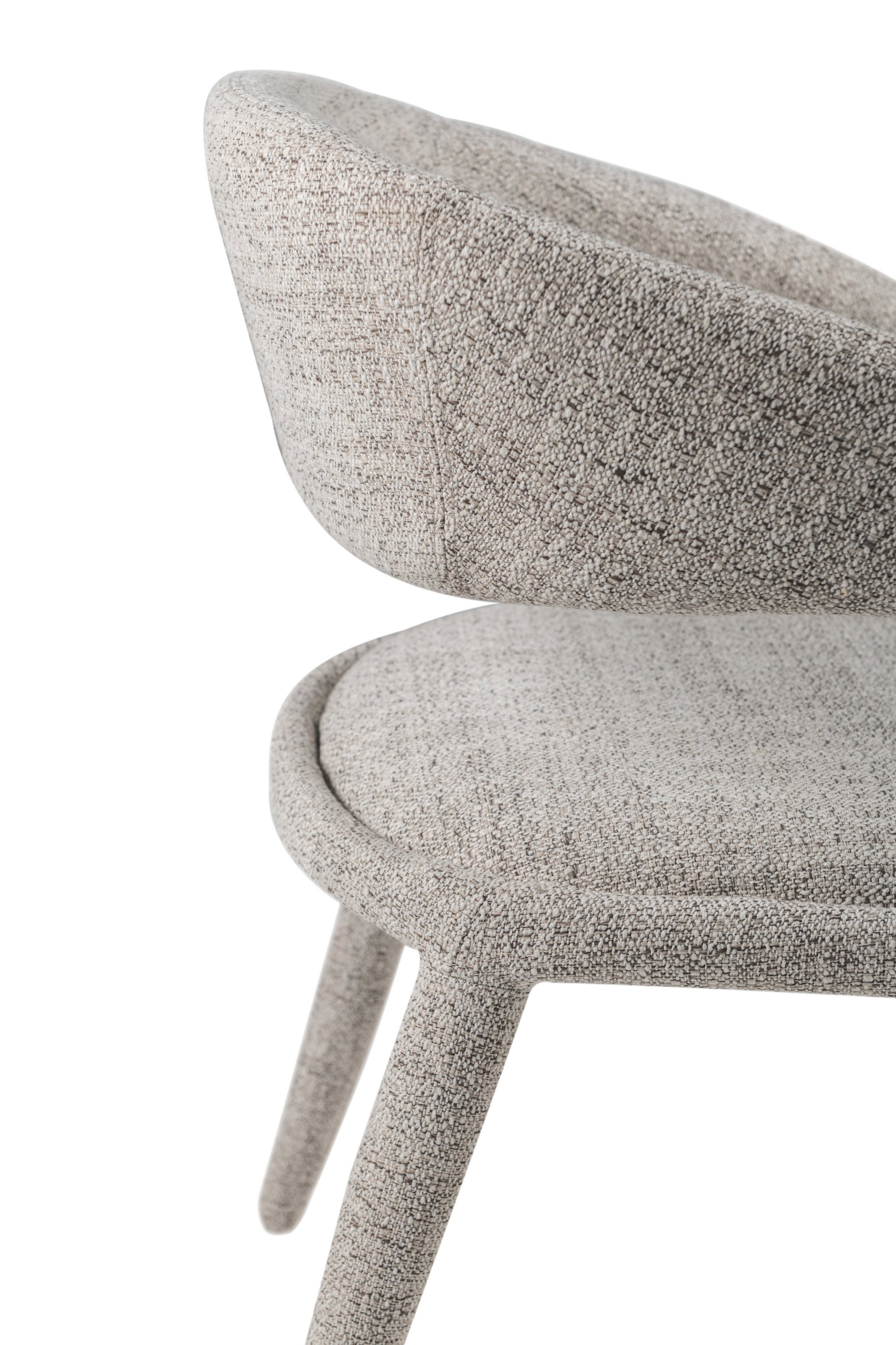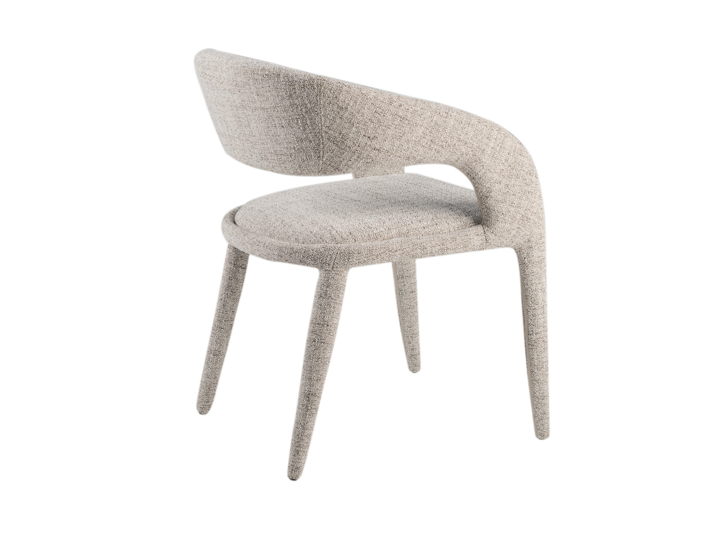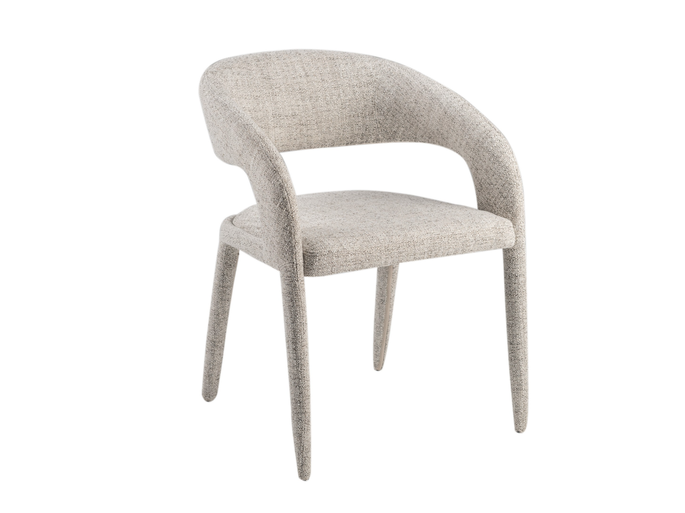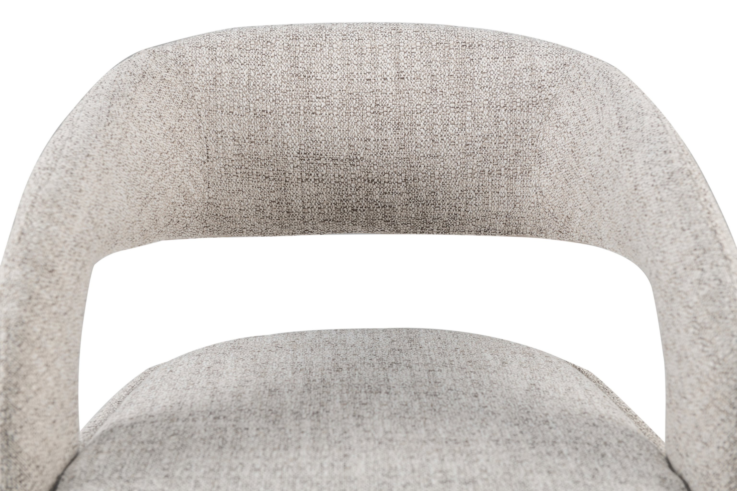 Оббивка стільця виконана з фактурної тканини кольору білий пісок. Цей відтінок має ніжний, світлий тон, що додає меблям легкості та універсальності. Фактурна тканина вирізняється приємною на дотик поверхнею, стійкістю до зносу та здатністю створювати затишну атмосферу.