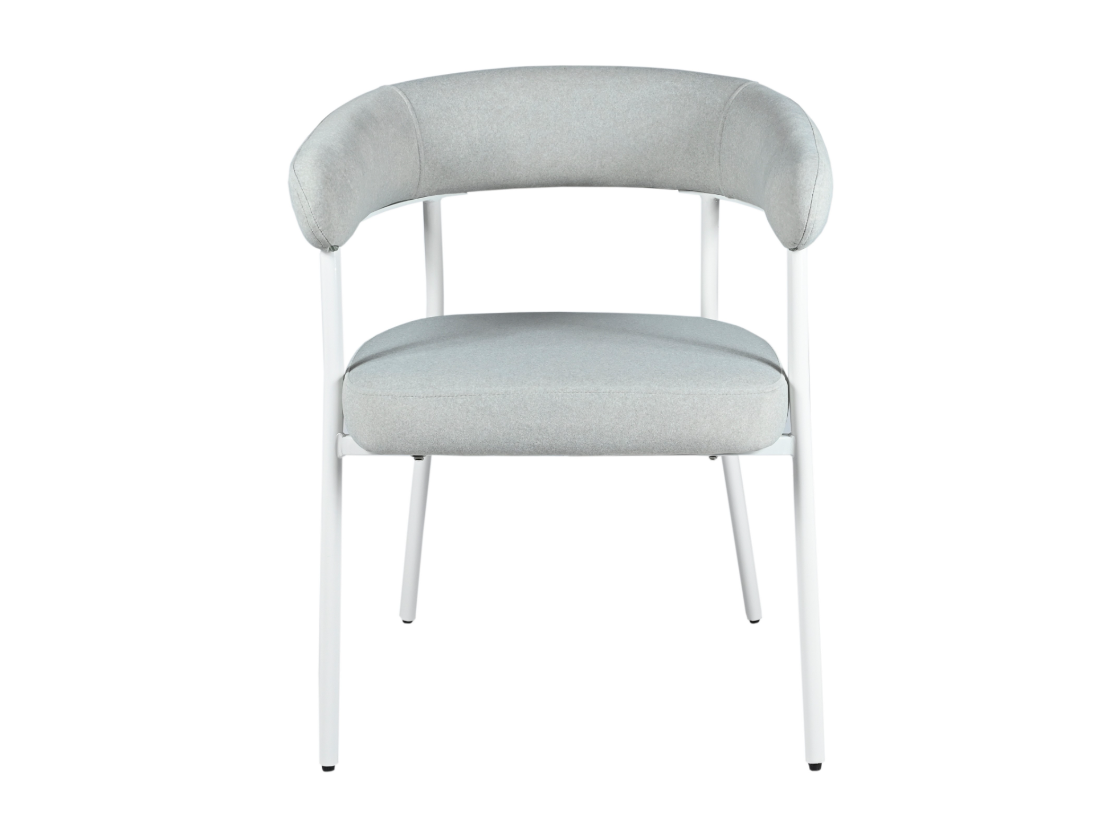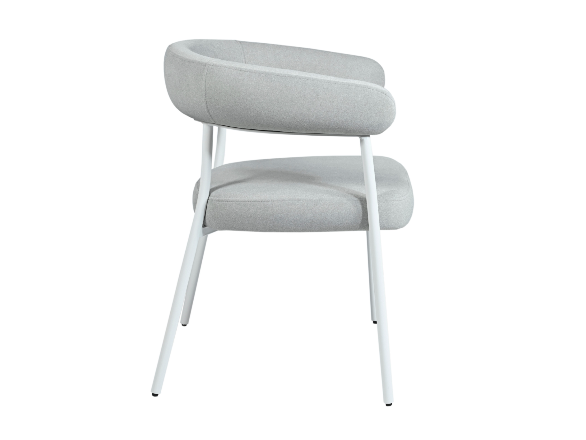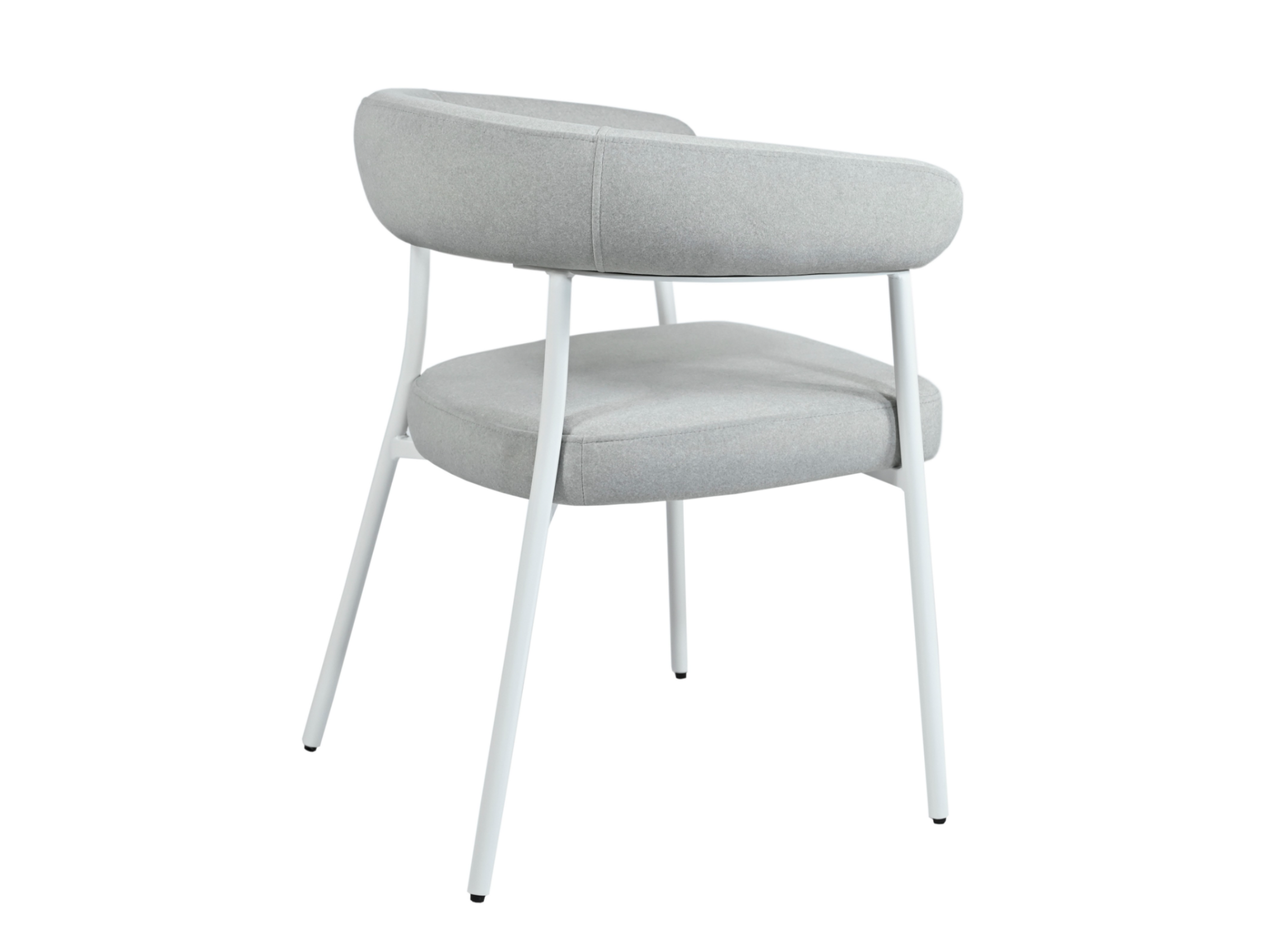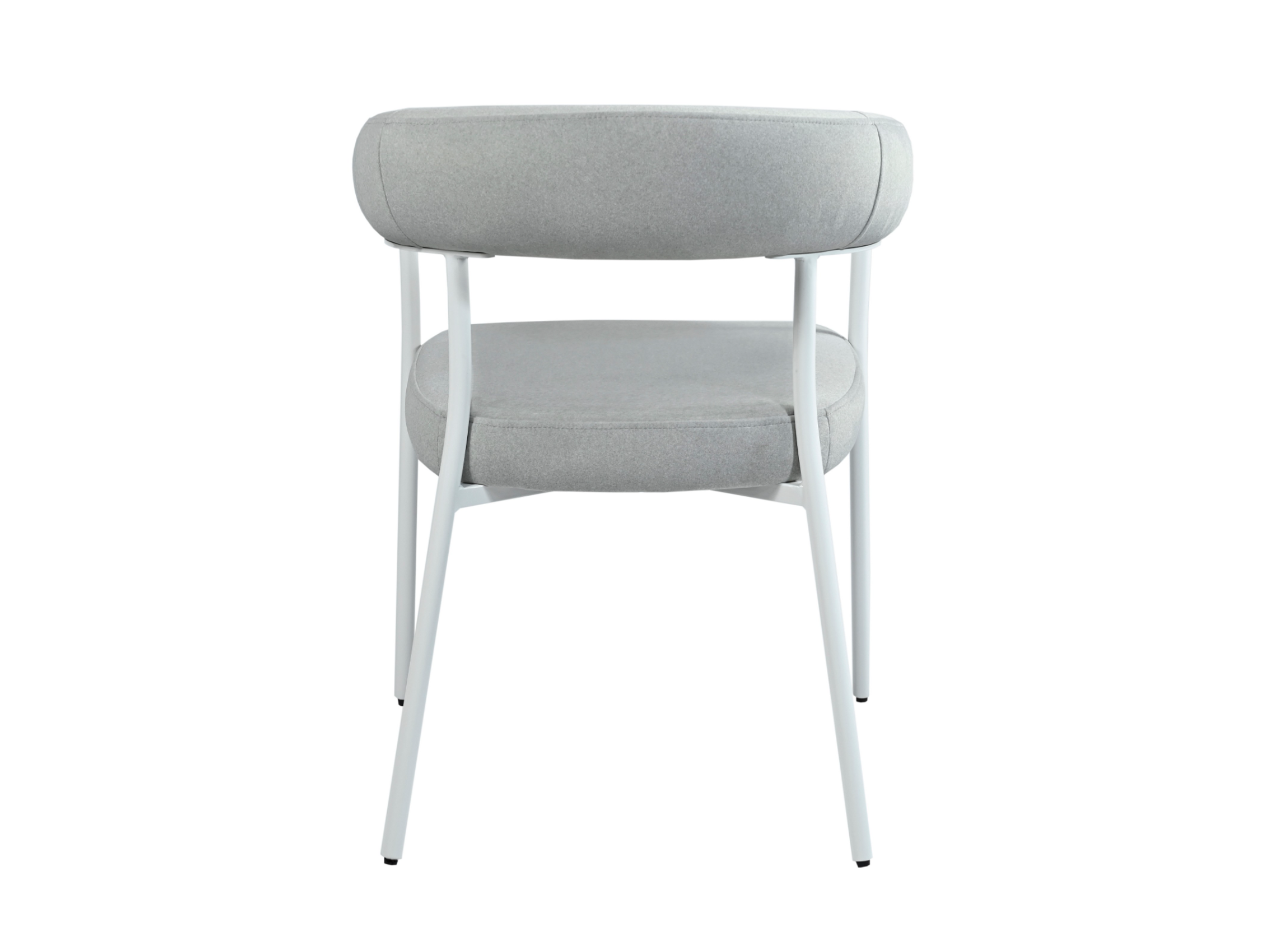Стілець має міцну металеву основу, пофарбовану в білий колір, що створює свіжий і легкий акцент в інтер’єрі. Його стриманий силует ідеально пасує як до сучасного, так і до скандинавського або мінімалістичного стилю.